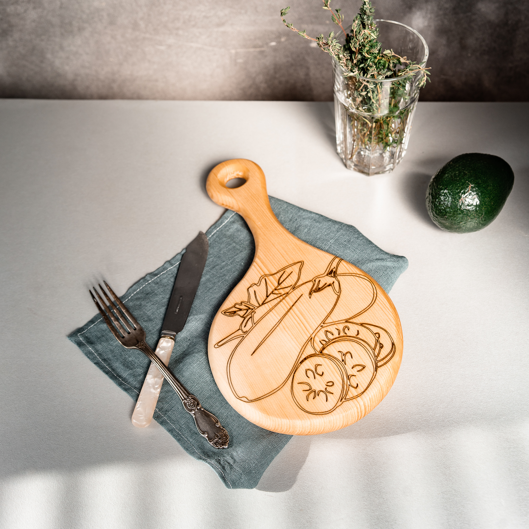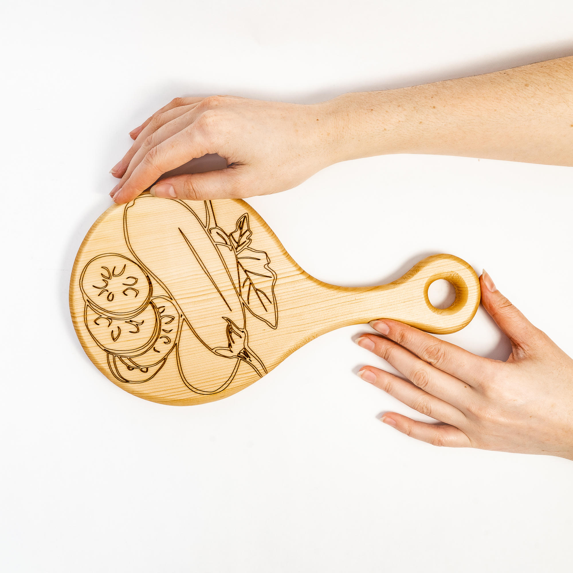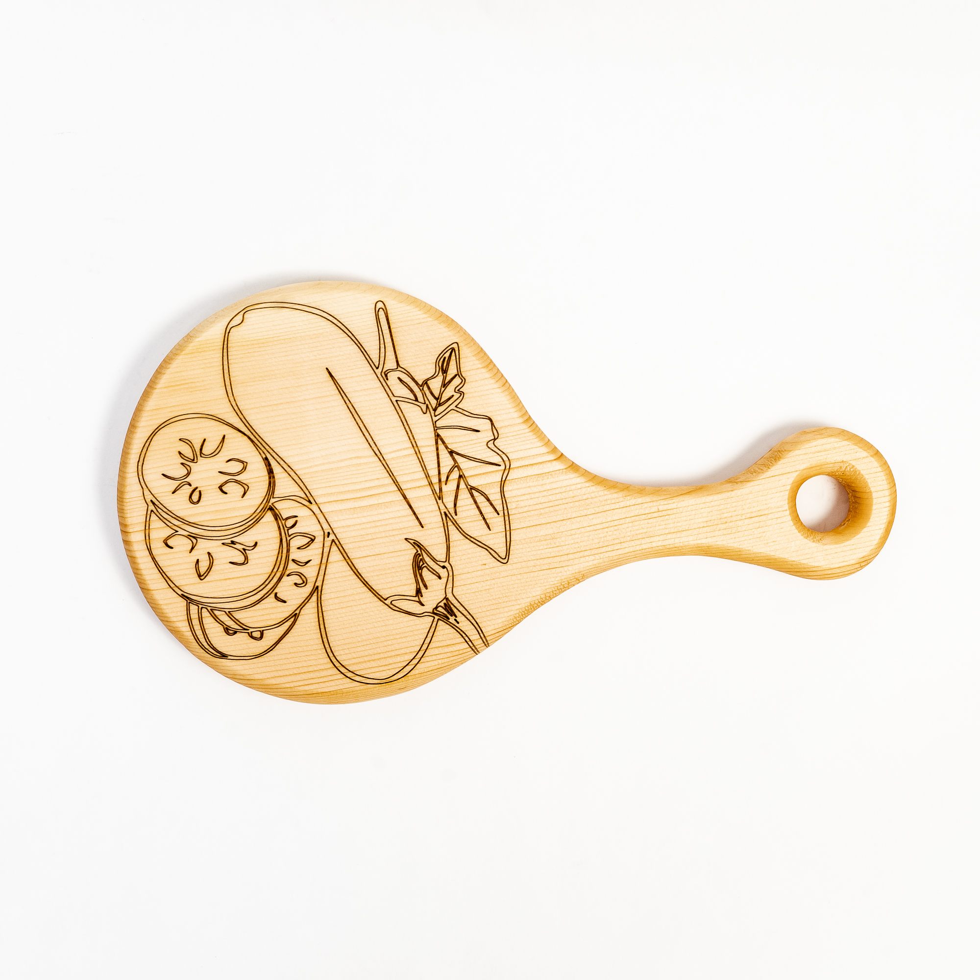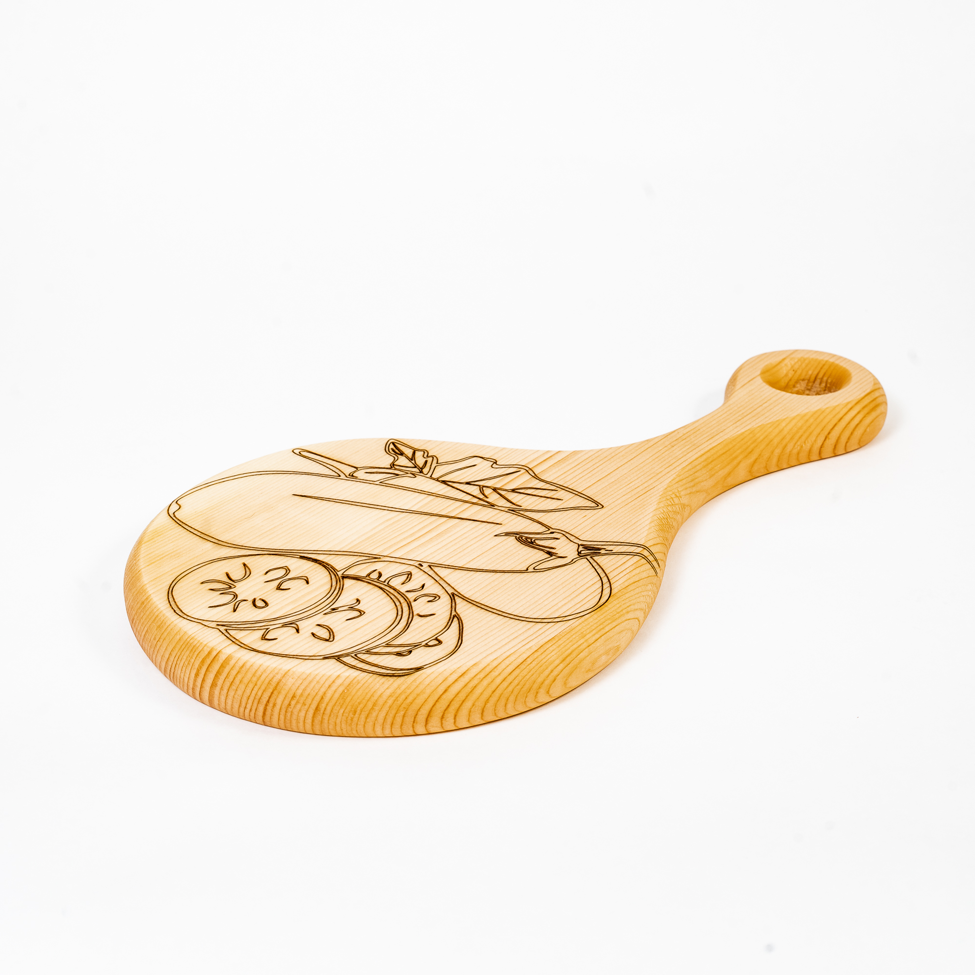 Деревянная разделочная доска из цельного куска древесины сибирского кедра для овощей с гравировкой.