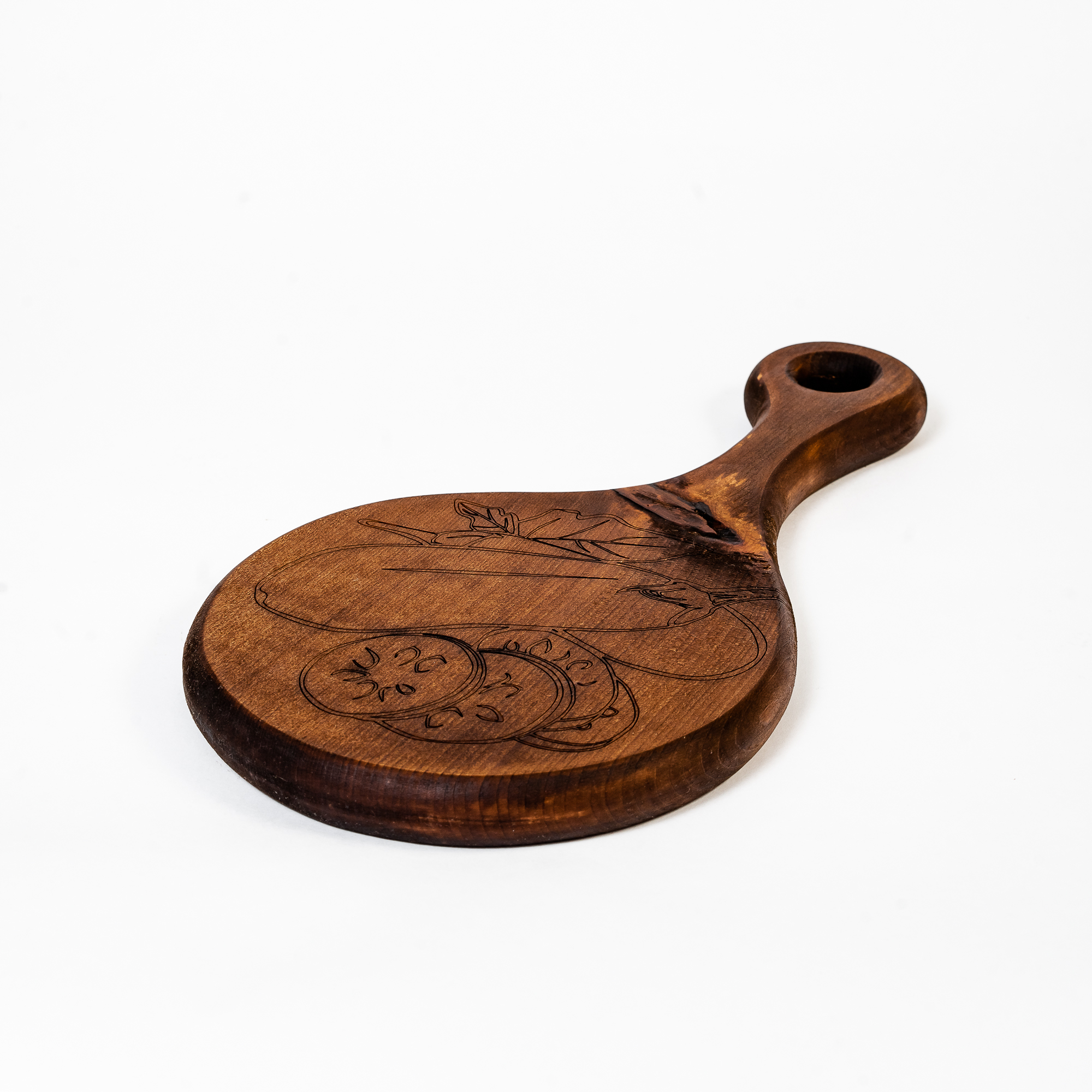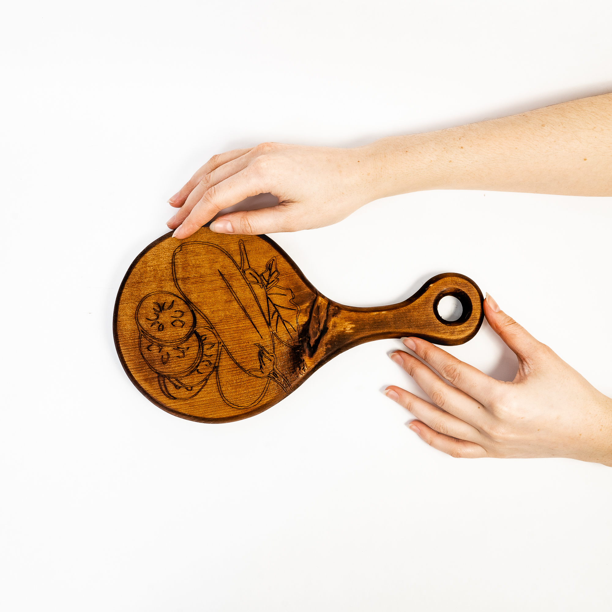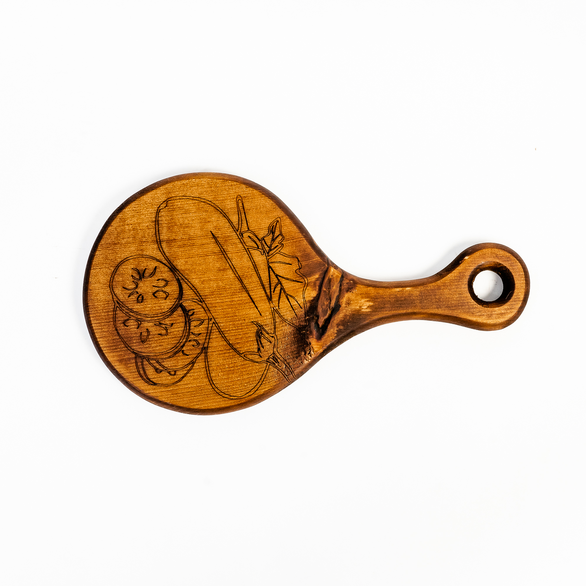 Деревянная разделочная доска из цельного куска древесины сибирского кедра для овощей с гравировкой.