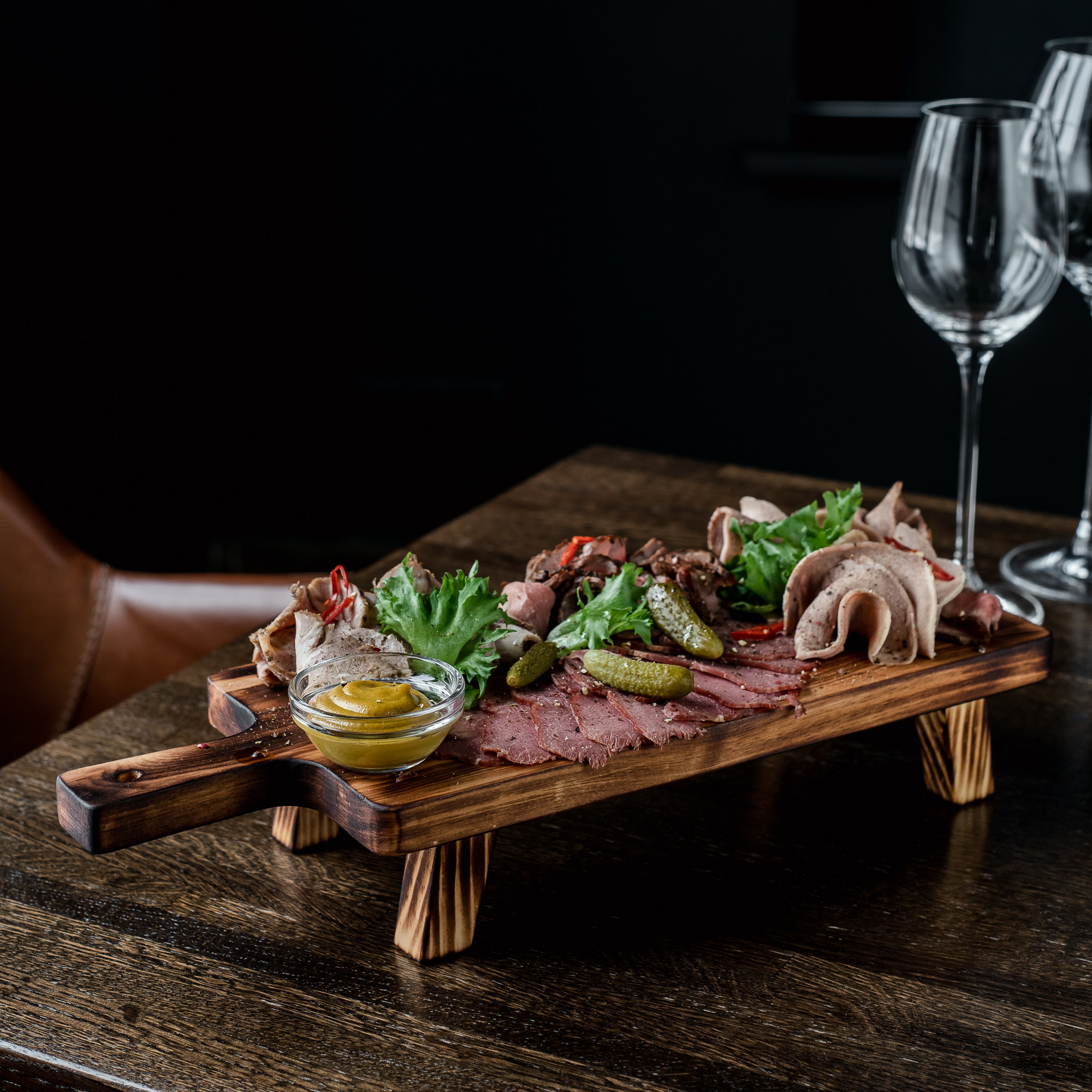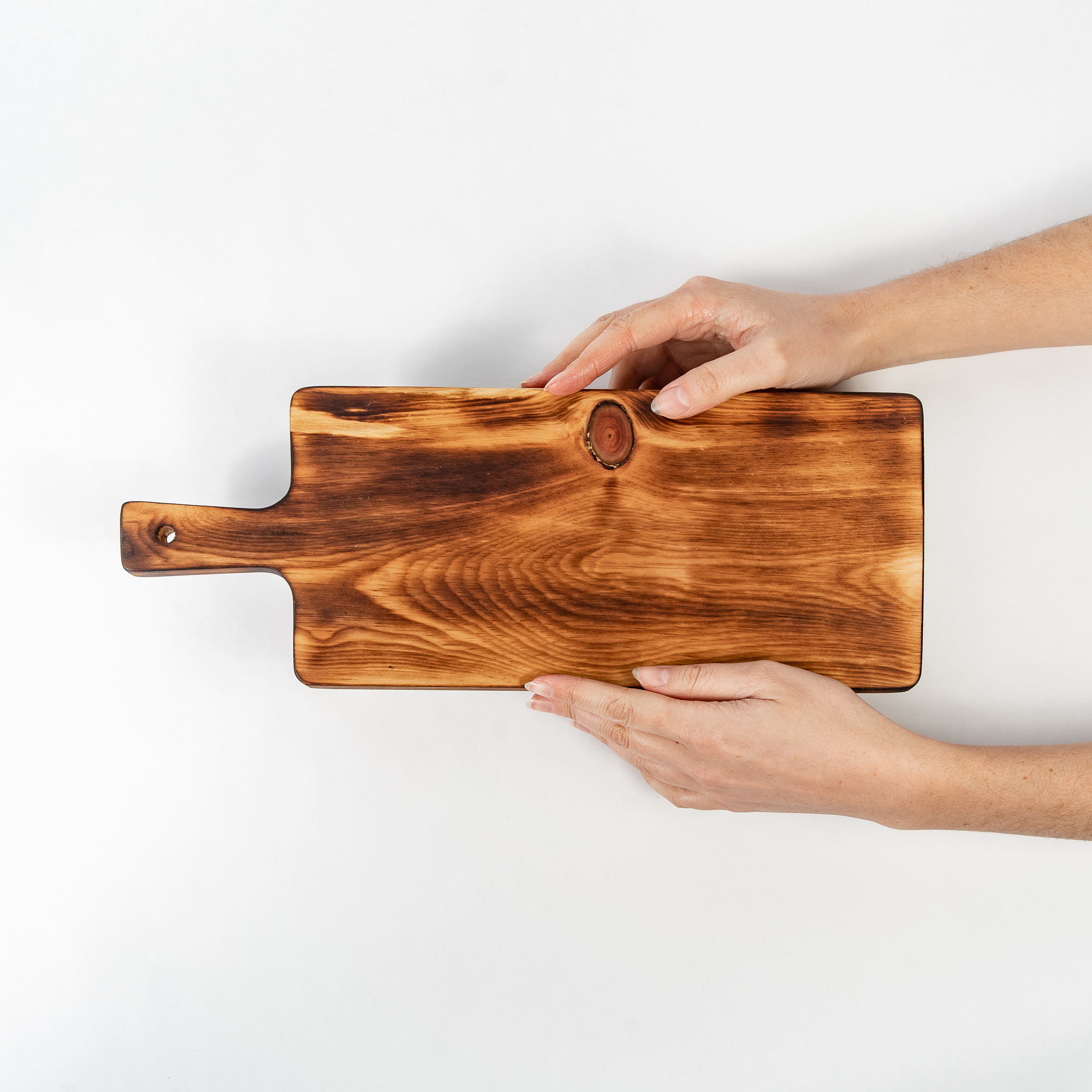 Деревянная сервировочная доска для подачи блюд и закусок из древесины кедра.