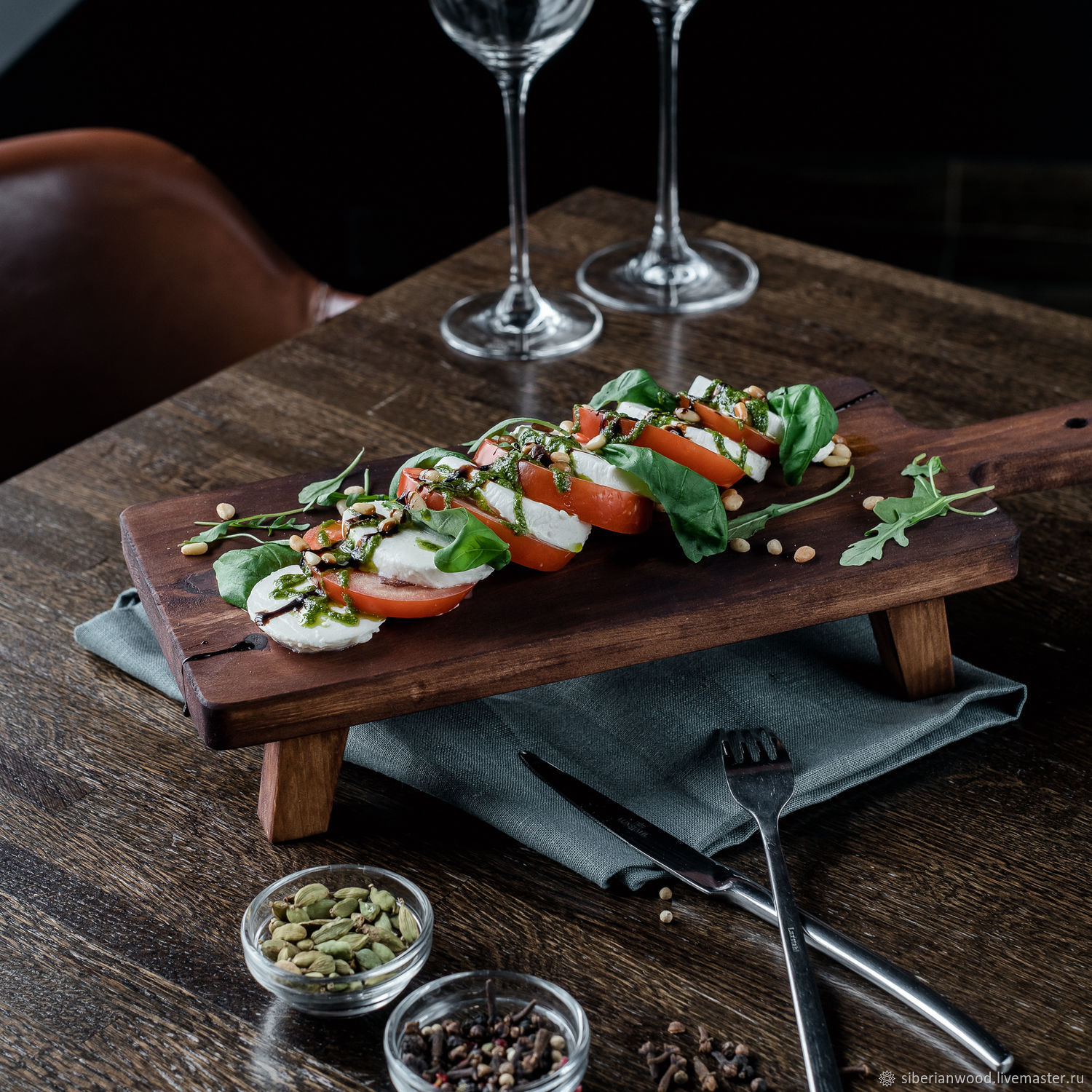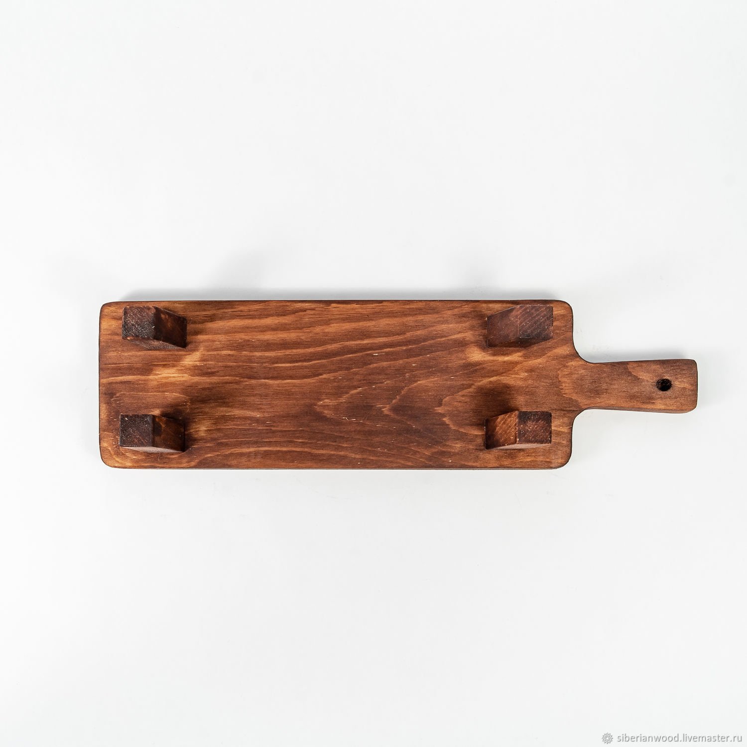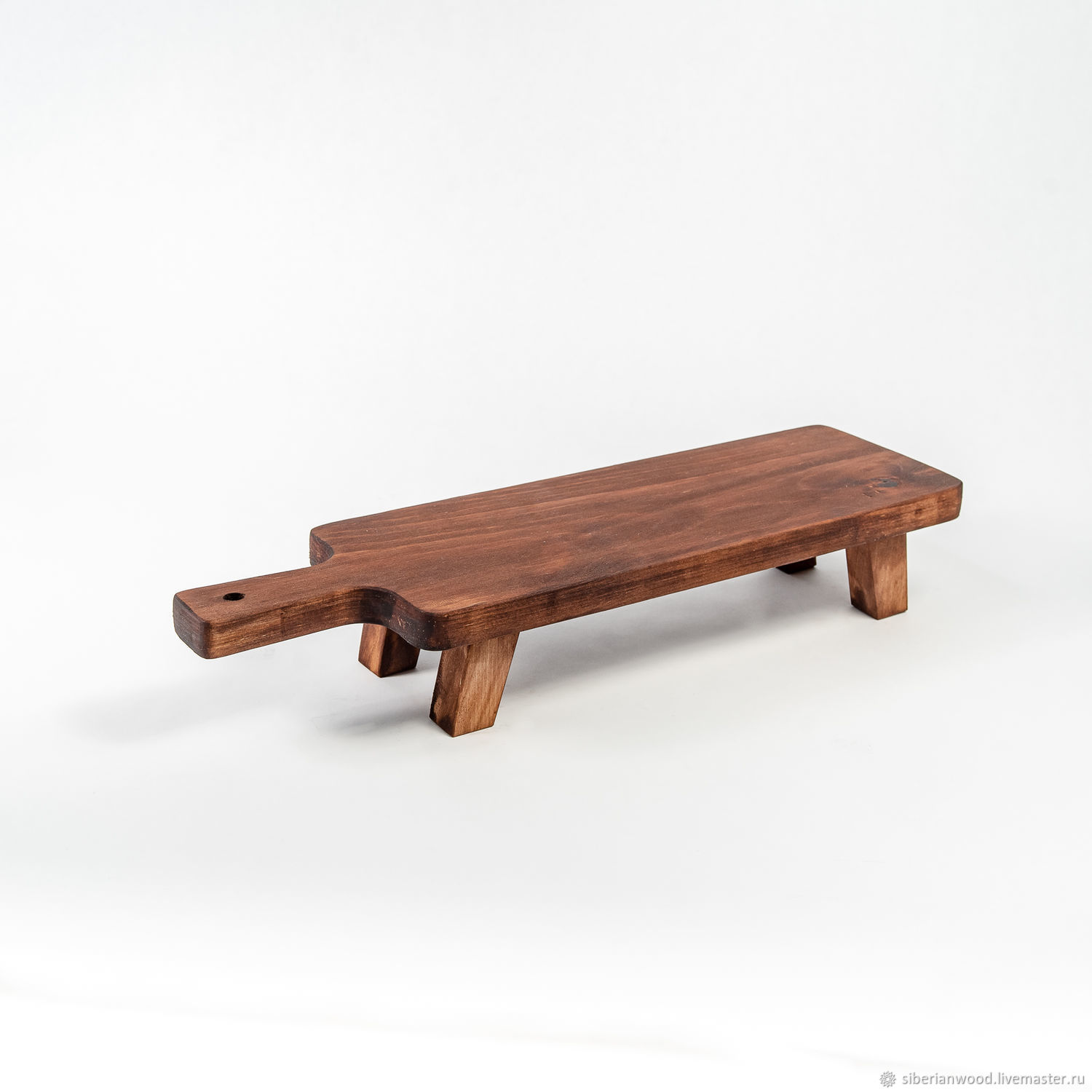 Обработана специальным составом на основе растительного масла, кедровой смолы и пчелиного воска, благодаря чему дольше сохраняет свой первоначальный вид, не утратит гигиеничность и прослужит длительное время. Можно использовать для подачи стейка, шашлыка, сыра, суши, роллов или бургеров. А также подобные сервировочные доски можно использовать для десертов.
