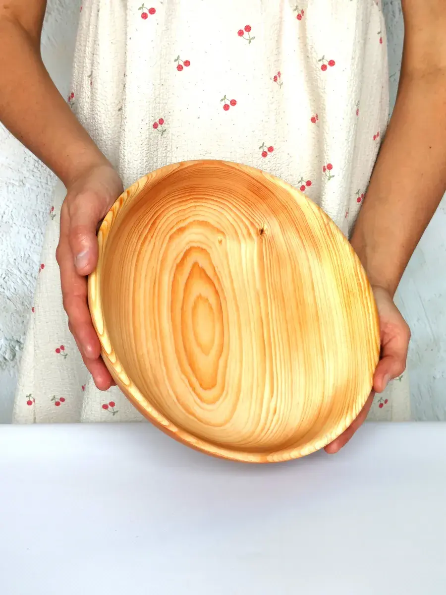 Популярность посуды из кедра объясняется как красотой древесины, так и ее лечебными качествами. Тарелки и миски удобны для приема пищи и для ее хранения. Люди, пользующиеся такими тарелками, могут подтвердить, что еда сохраняет свежесть намного дольше: она не прокиснет и не покроется плесенью. Древесина кедра придаст пище особый аромат и вкус. И что немаловажно, кедр обладает дезинфицирующим свойством, и продукты в такой тарелке становятся полезней, насыщаясь фитонцидами кедра.