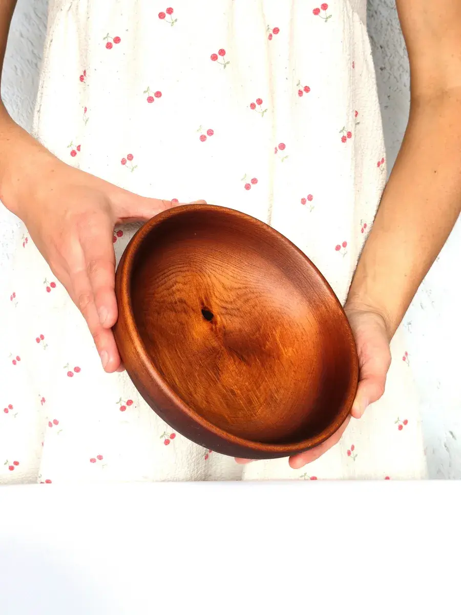 Тарелка из цельного массива сибирского кедра, ручной работы в натуральном цвете! Пропитана нашим составом на основе растительного масла, кедровой смолы и пчелиного воска. Перед использованием обязательно промыть теплой проточной водой, чтоб смыть остаткипокрытия. Изделие может стать чуть светлее. Популярность посуды из кедра объясняется как красотой древесины, так и ее лечебными качествами. Тарелки и миски удобны для приема пищи и для ее хранения. Люди, пользующиеся такими тарелками, могут подтвердить, что еда сохраняет свежесть намного дольше: она не прокиснет и не покроется плесенью. Древесина кедра придаст пище особый аромат и вкус.