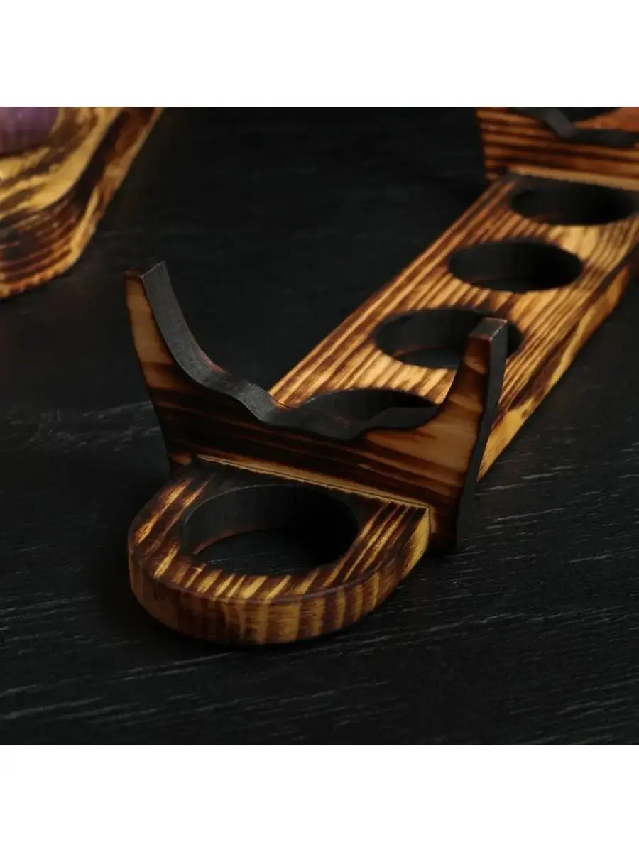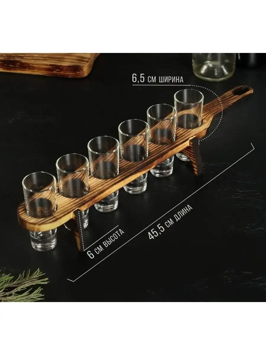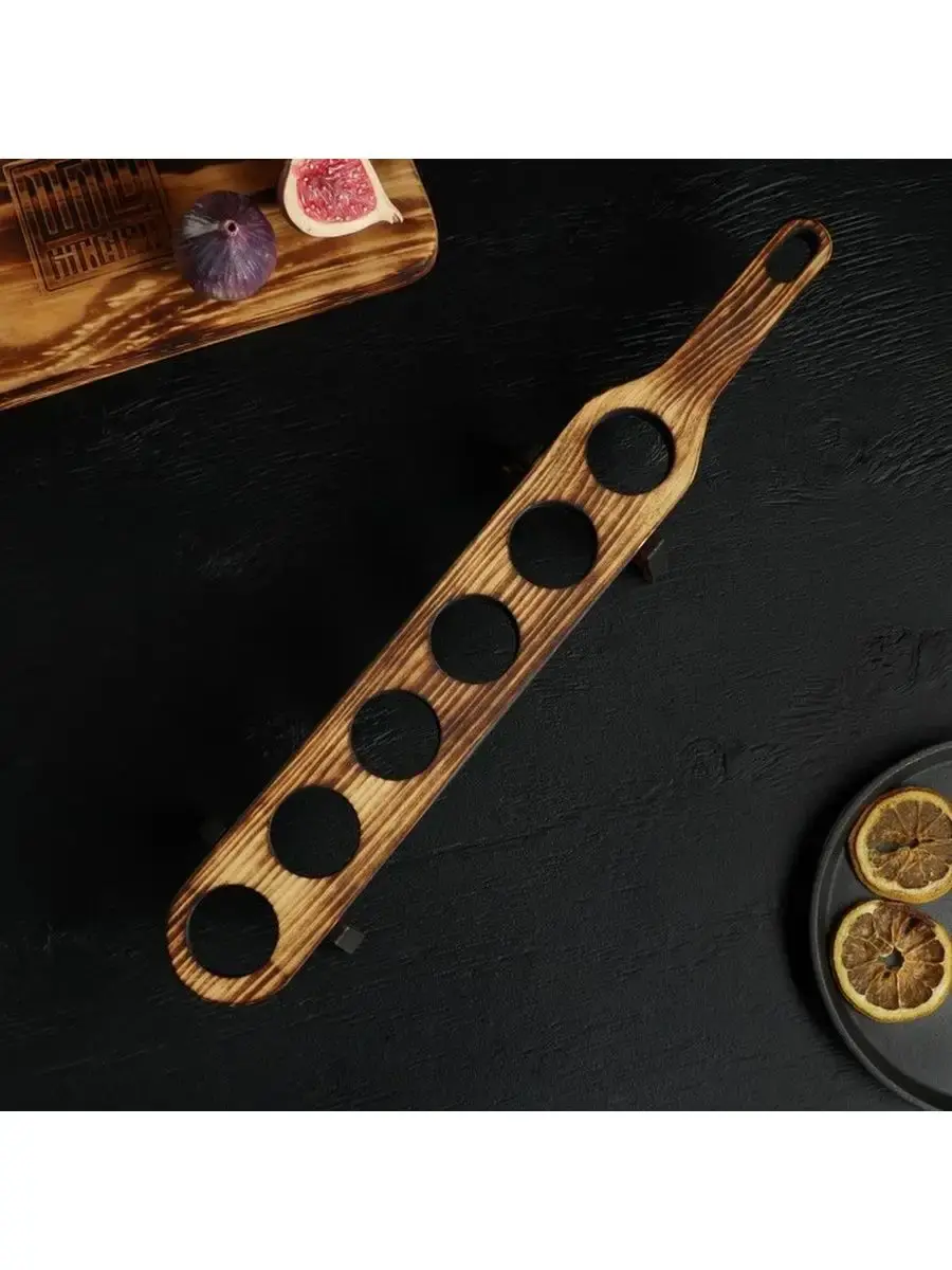 Деревянная шотница в обжиге для подачи 6 стопок.