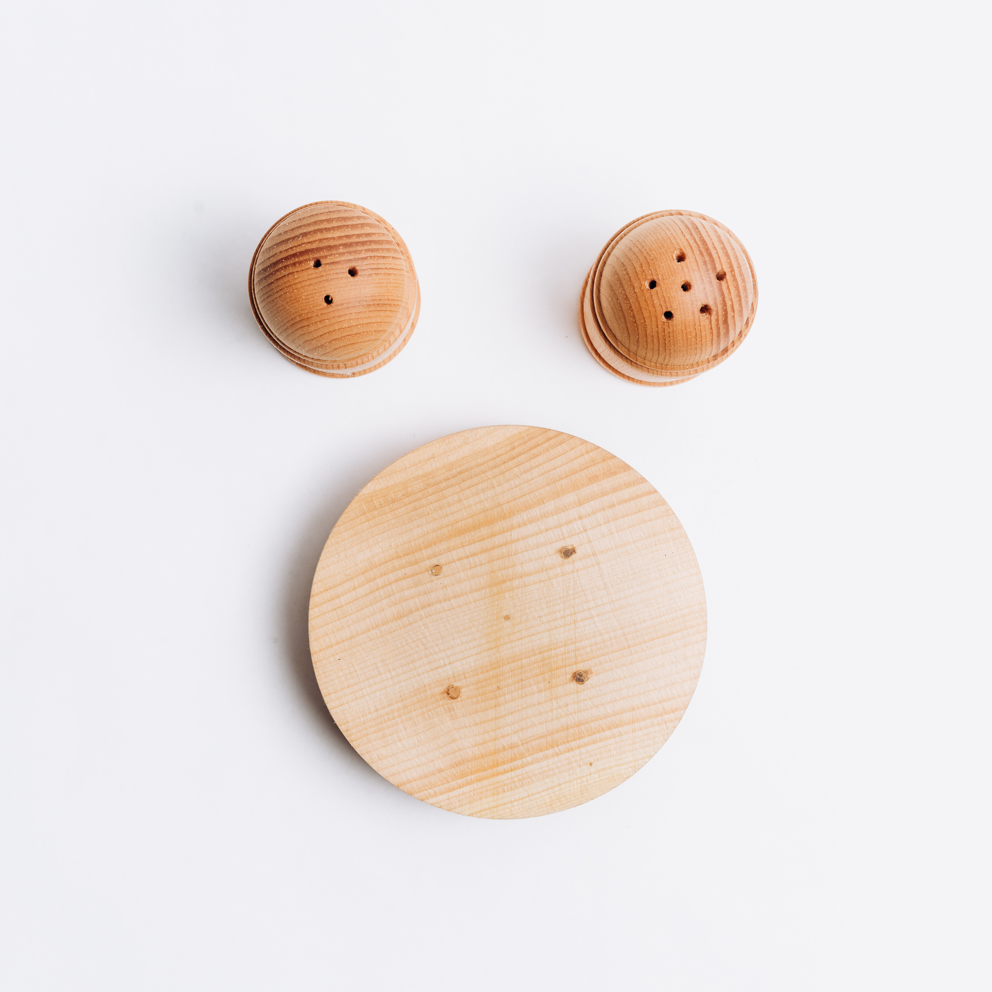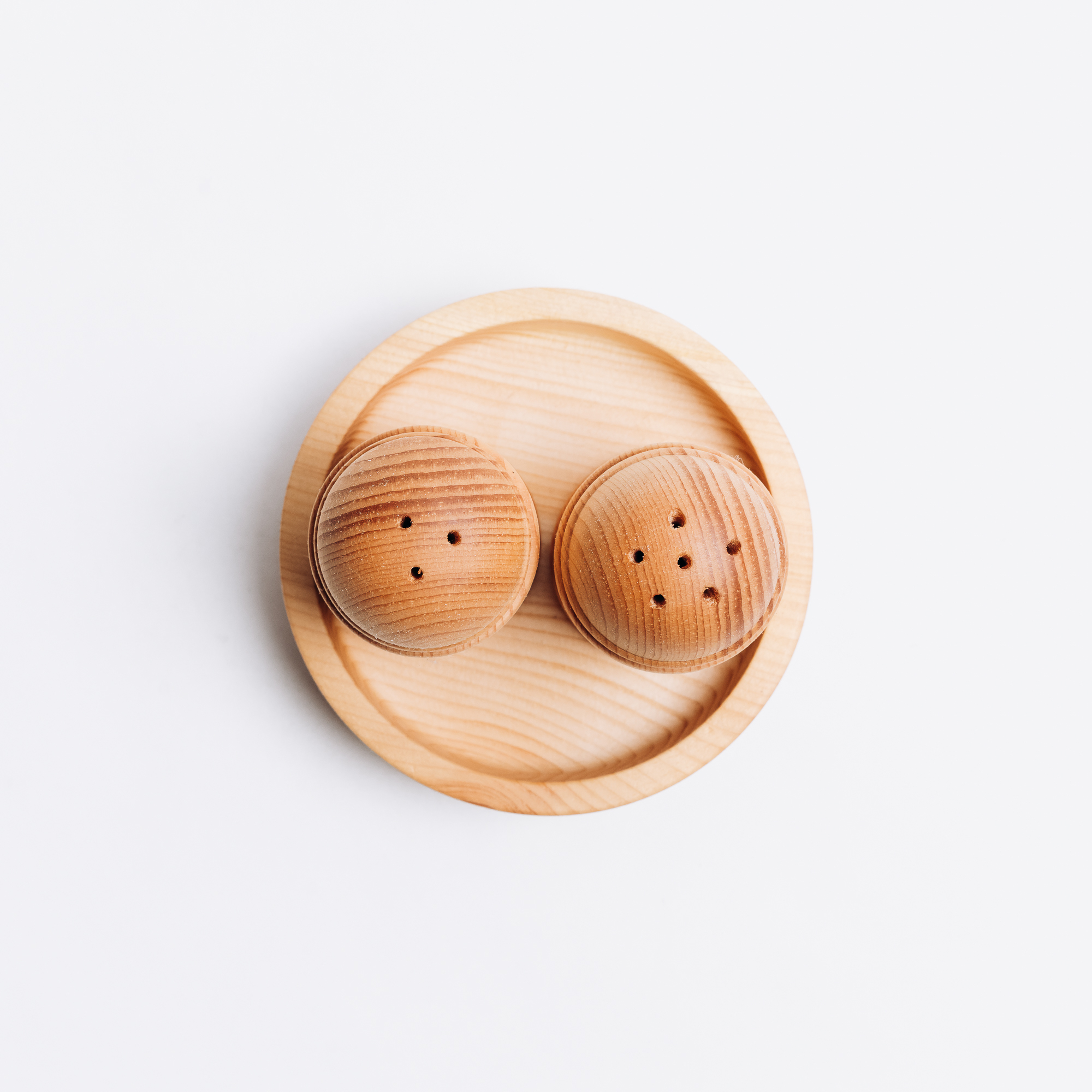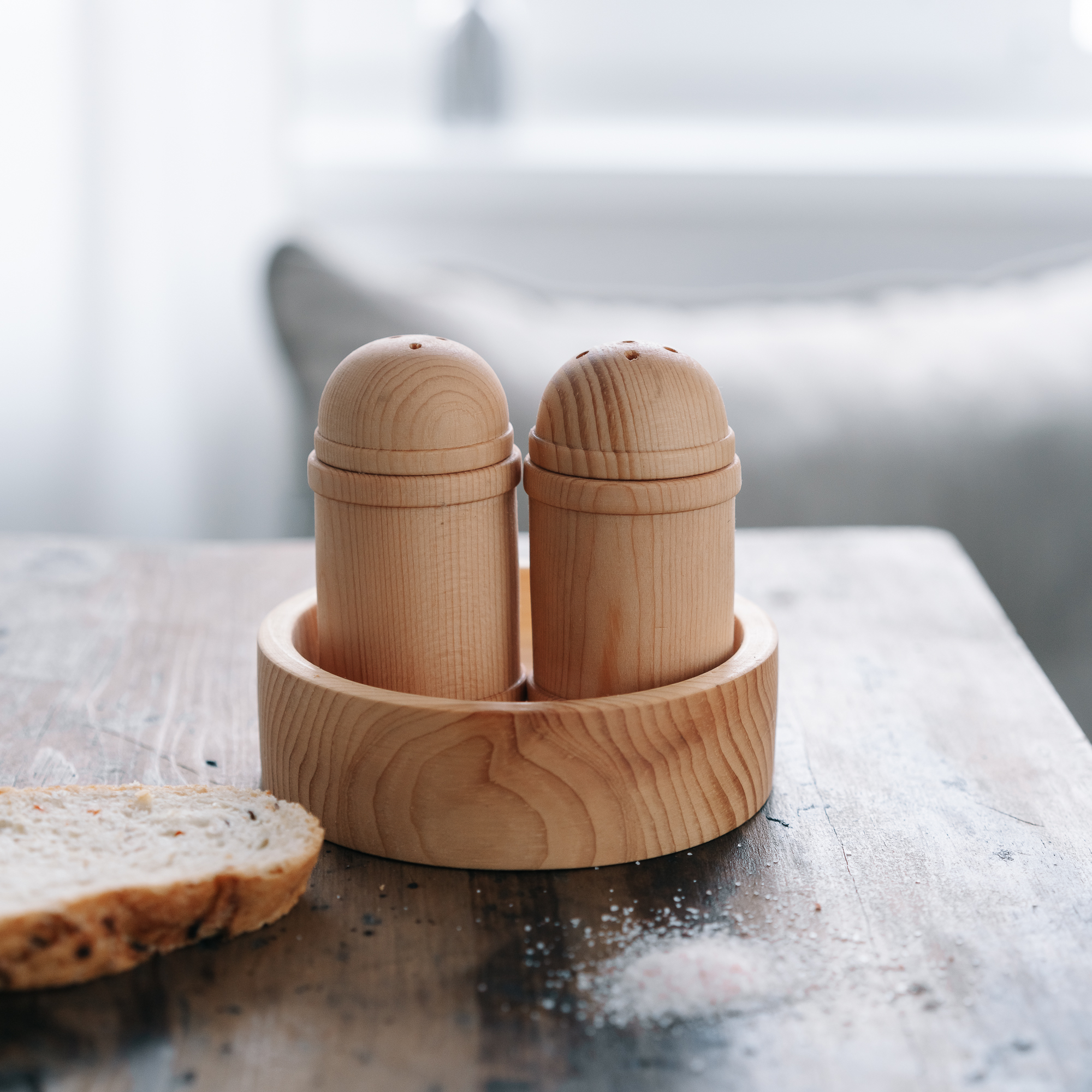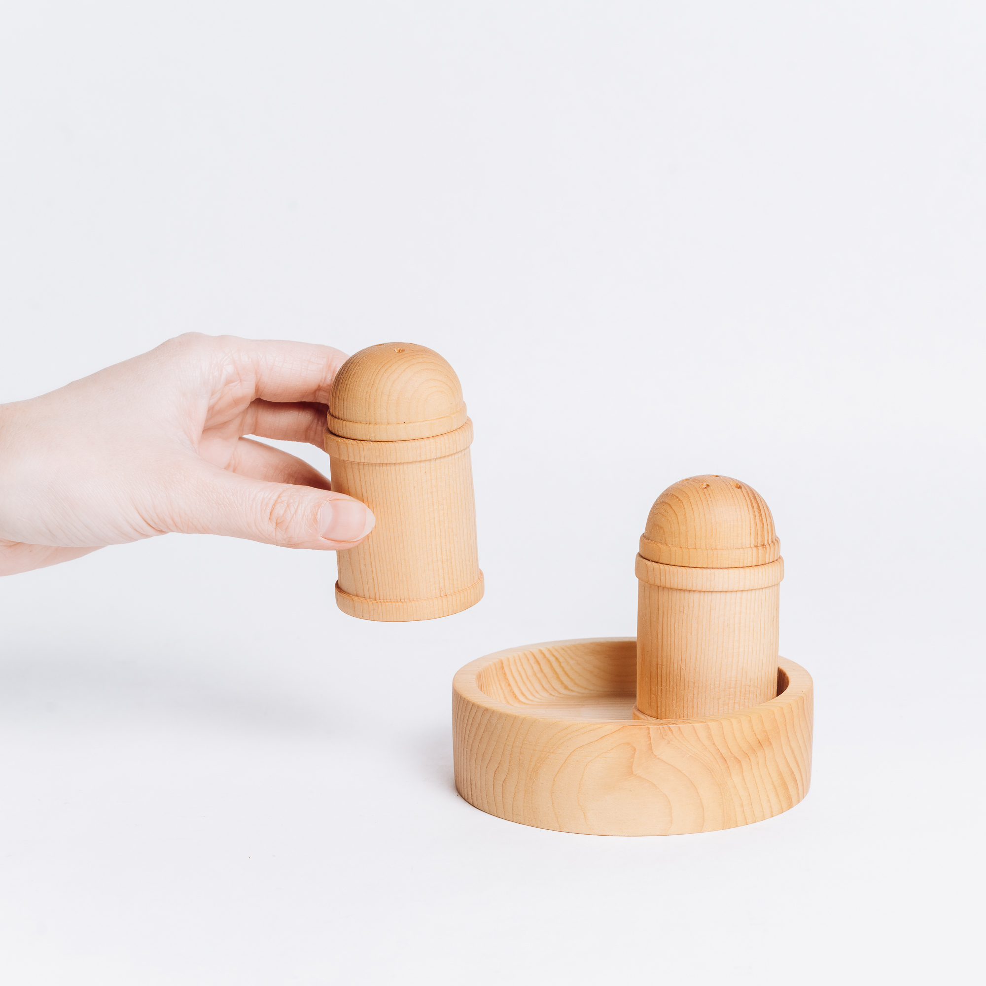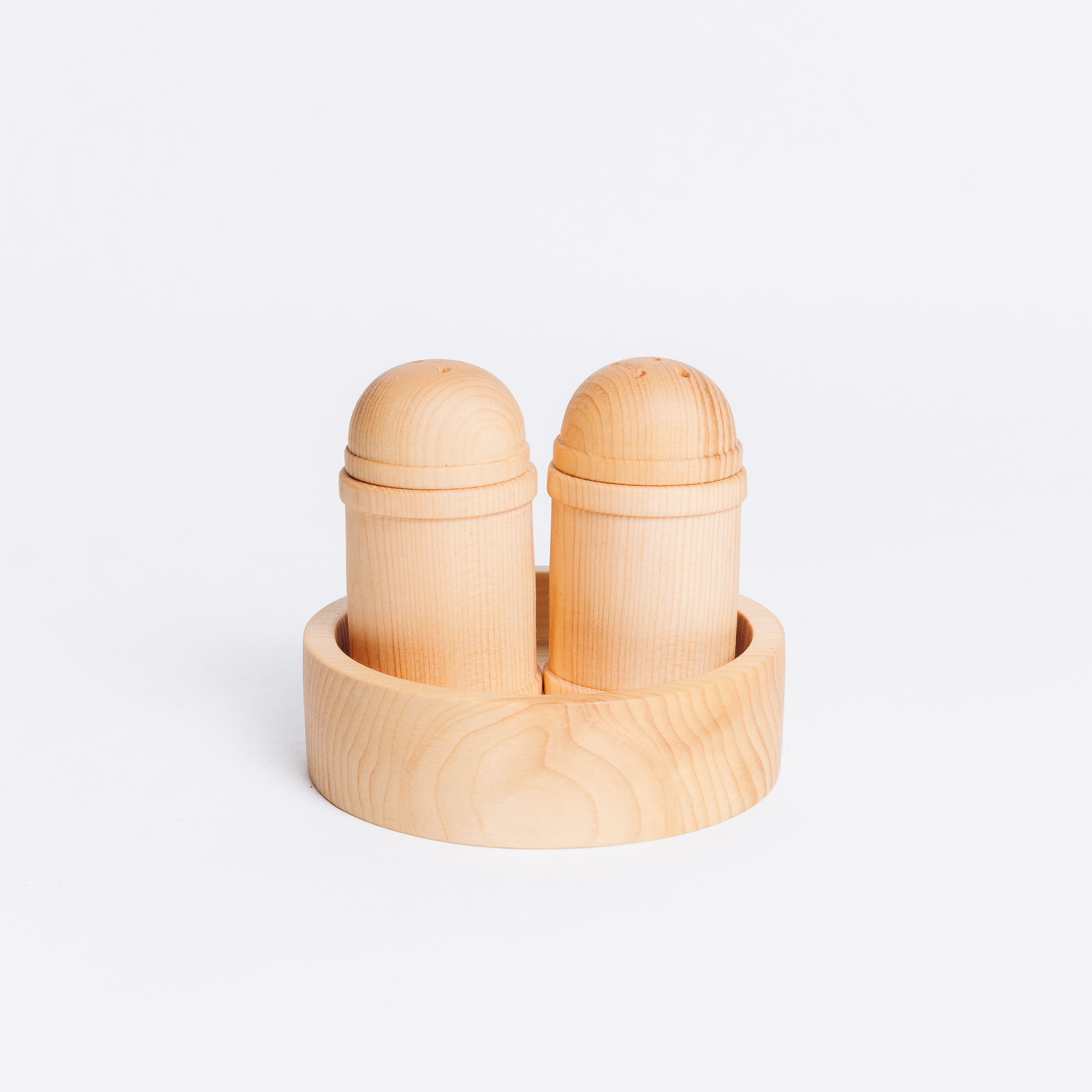 Деревянная солонка и перечница с подставкой из сибирского кедра.