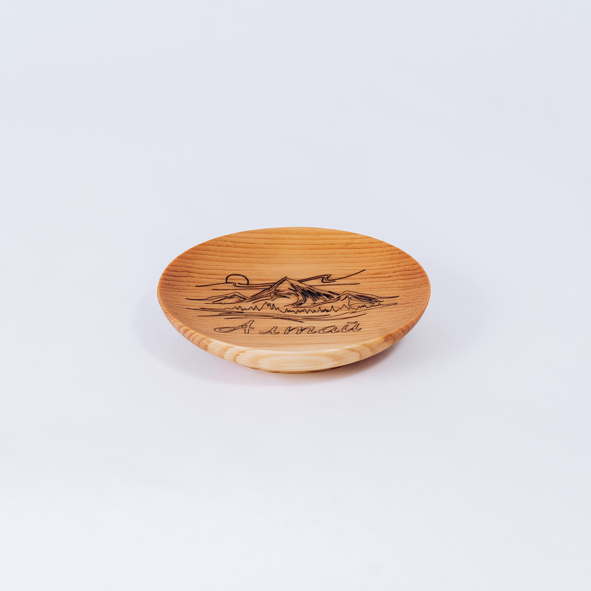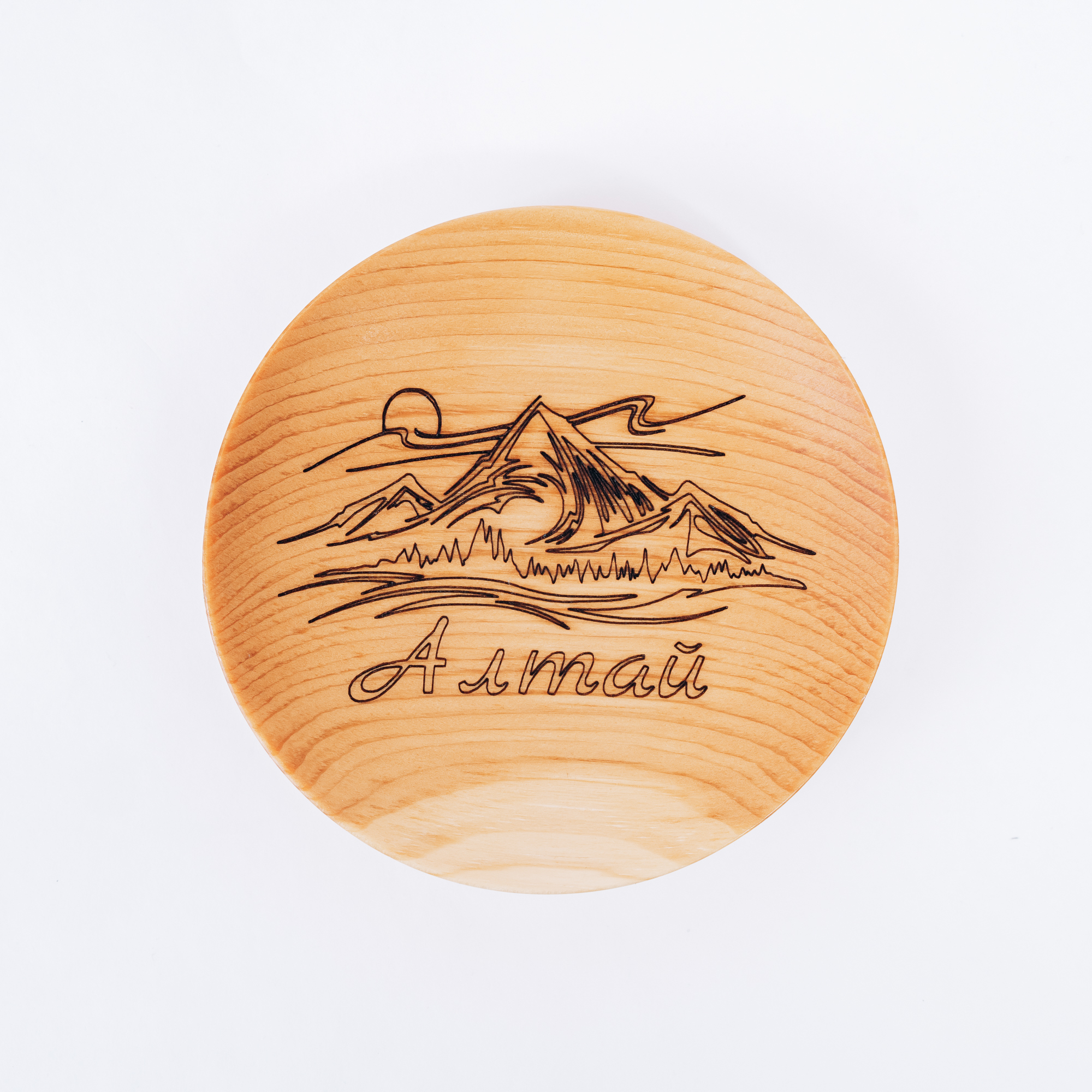 Деревянная тарелка с гравировкой серии "Алтай" из натурального дерева сибирский кедр.