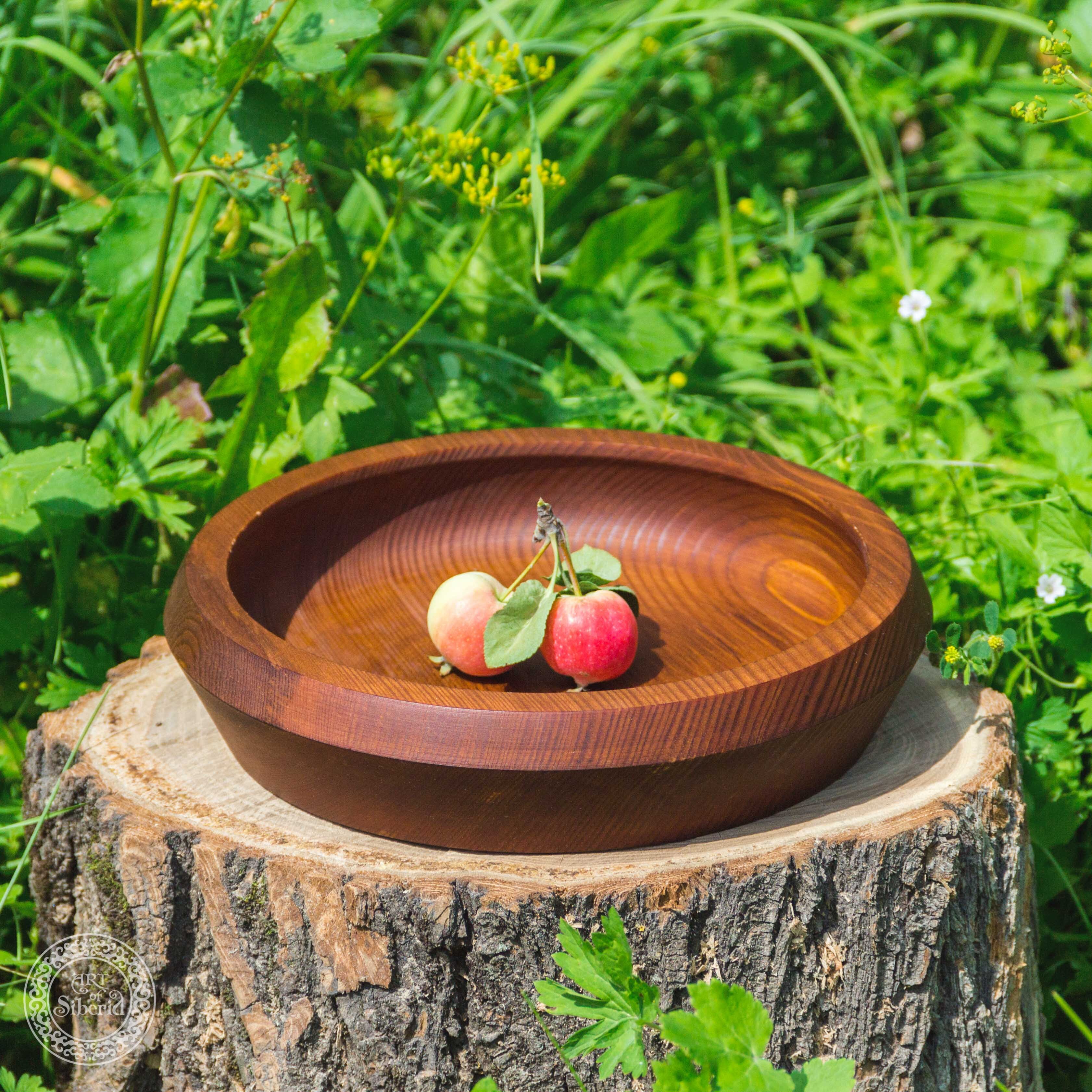 Популярность посуды из кедра объясняется как красотой древесины, так и ее лечебными качествами. Тарелки и миски удобны для приема пищи и для ее хранения. Люди, пользующиеся такими тарелками, могут подтвердить, что еда сохраняет свежесть намного дольше: она не прокиснет и не покроется плесенью. Древесина кедра придаст пище особый аромат и вкус. И что немаловажно, кедр обладает дезинфицирующим свойством, и продукты в такой тарелке становятся полезней, насыщаясь фитонцидами кедра.