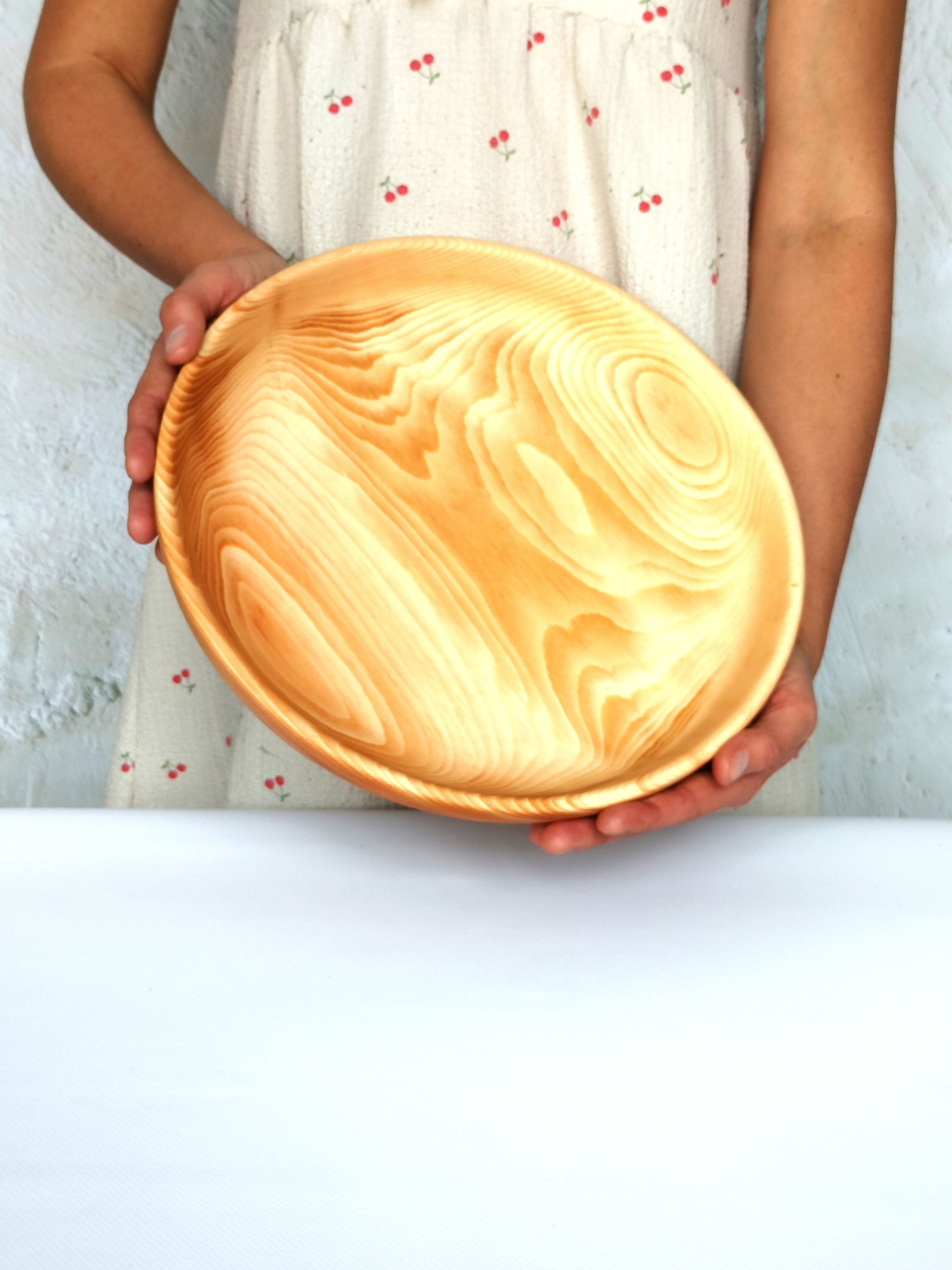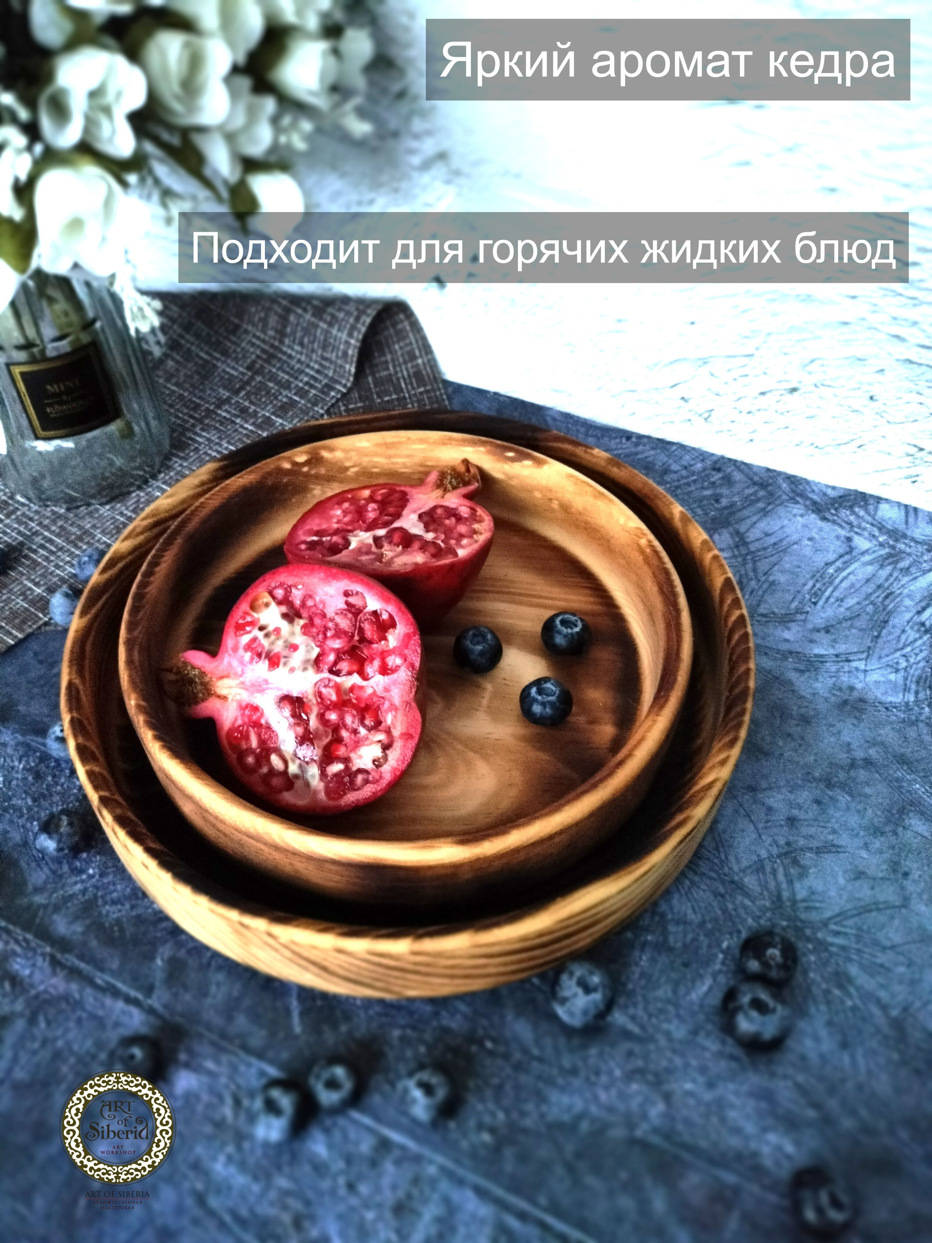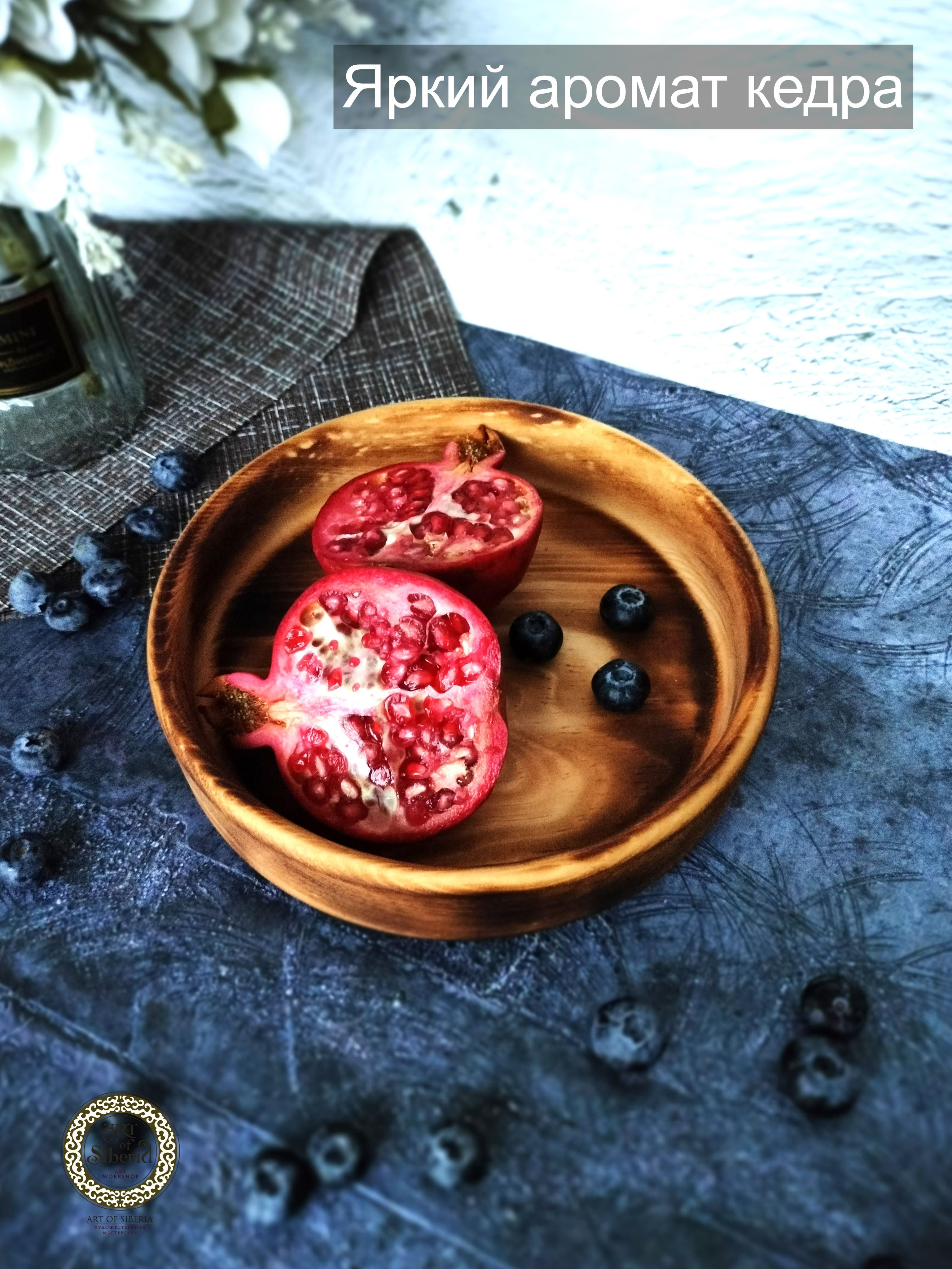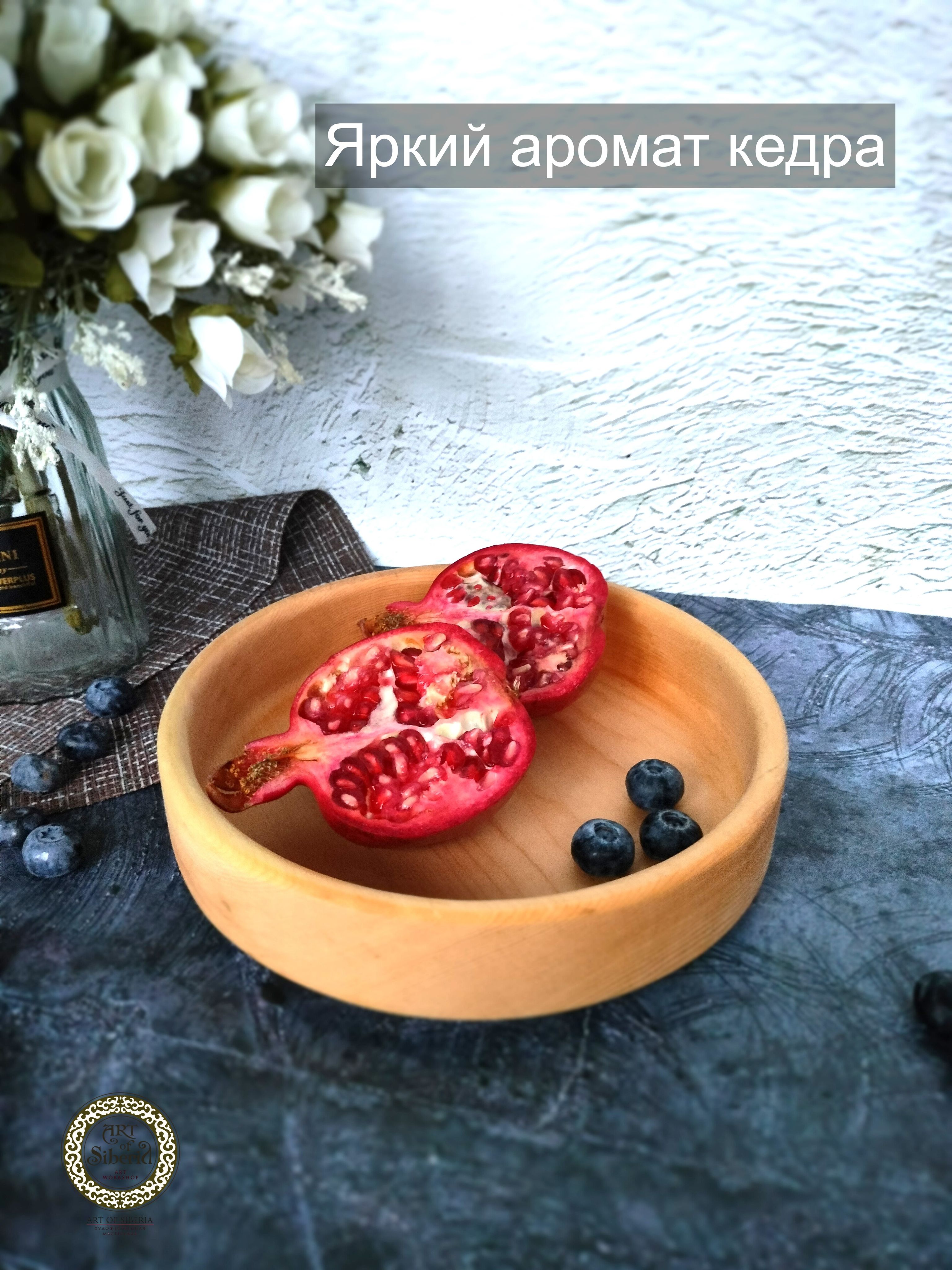 Популярность посуды из кедра объясняется как красотой древесины, так и ее лечебными качествами. Тарелки и миски удобны для приема пищи и для ее хранения. Люди, пользующиеся такими тарелками, могут подтвердить, что еда сохраняет свежесть намного дольше: она не прокиснет и не покроется плесенью. Древесина кедра придаст пище особый аромат и вкус. И что немаловажно, кедр обладает дезинфицирующим свойством, и продукты в такой тарелке становятся полезней, насыщаясь фитонцидами кедра.