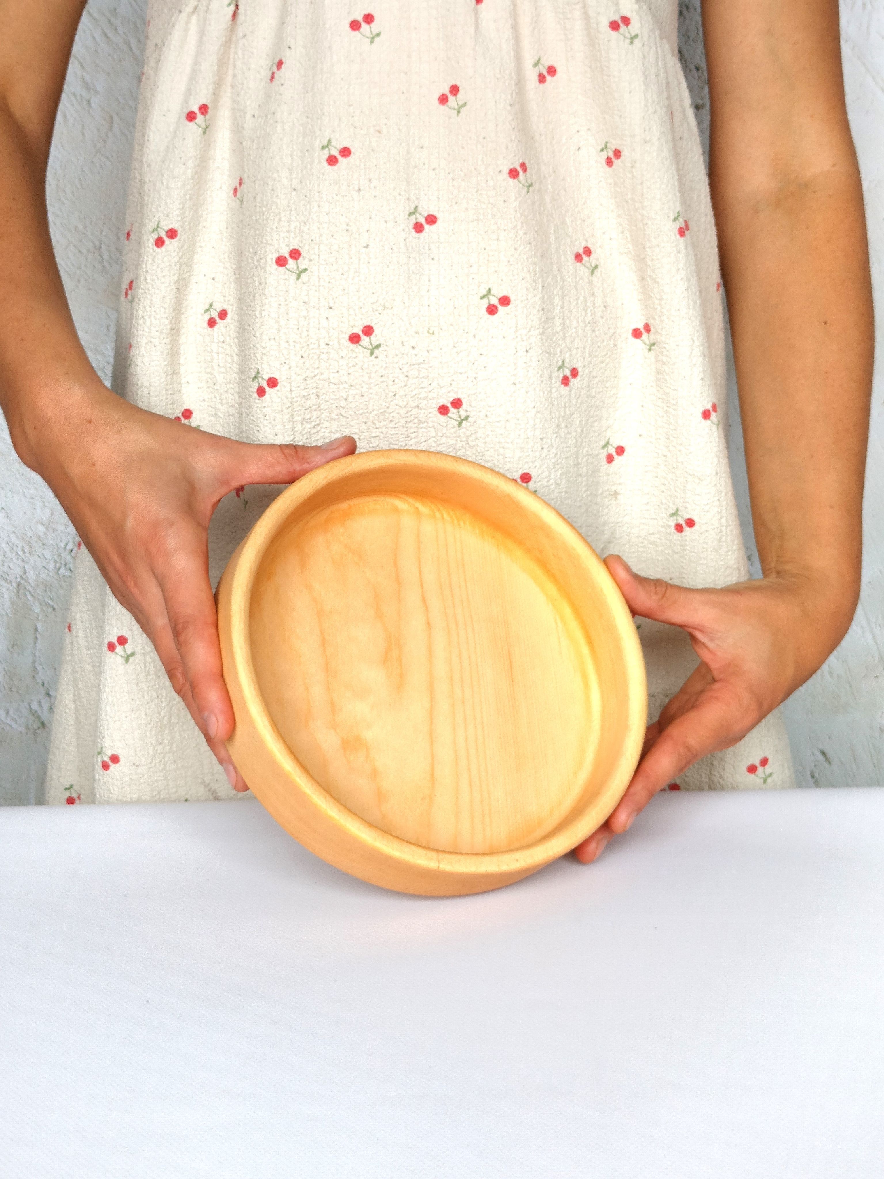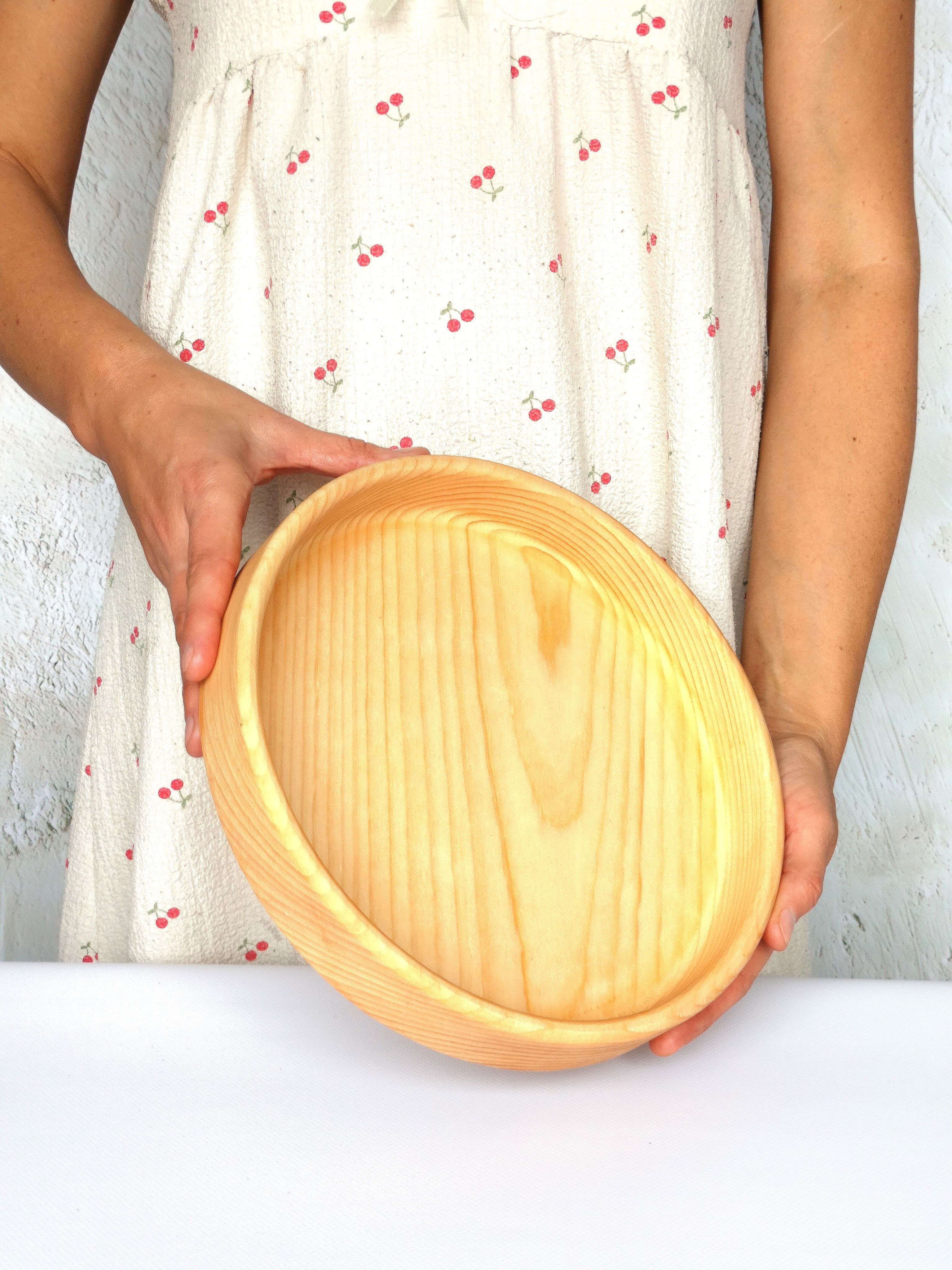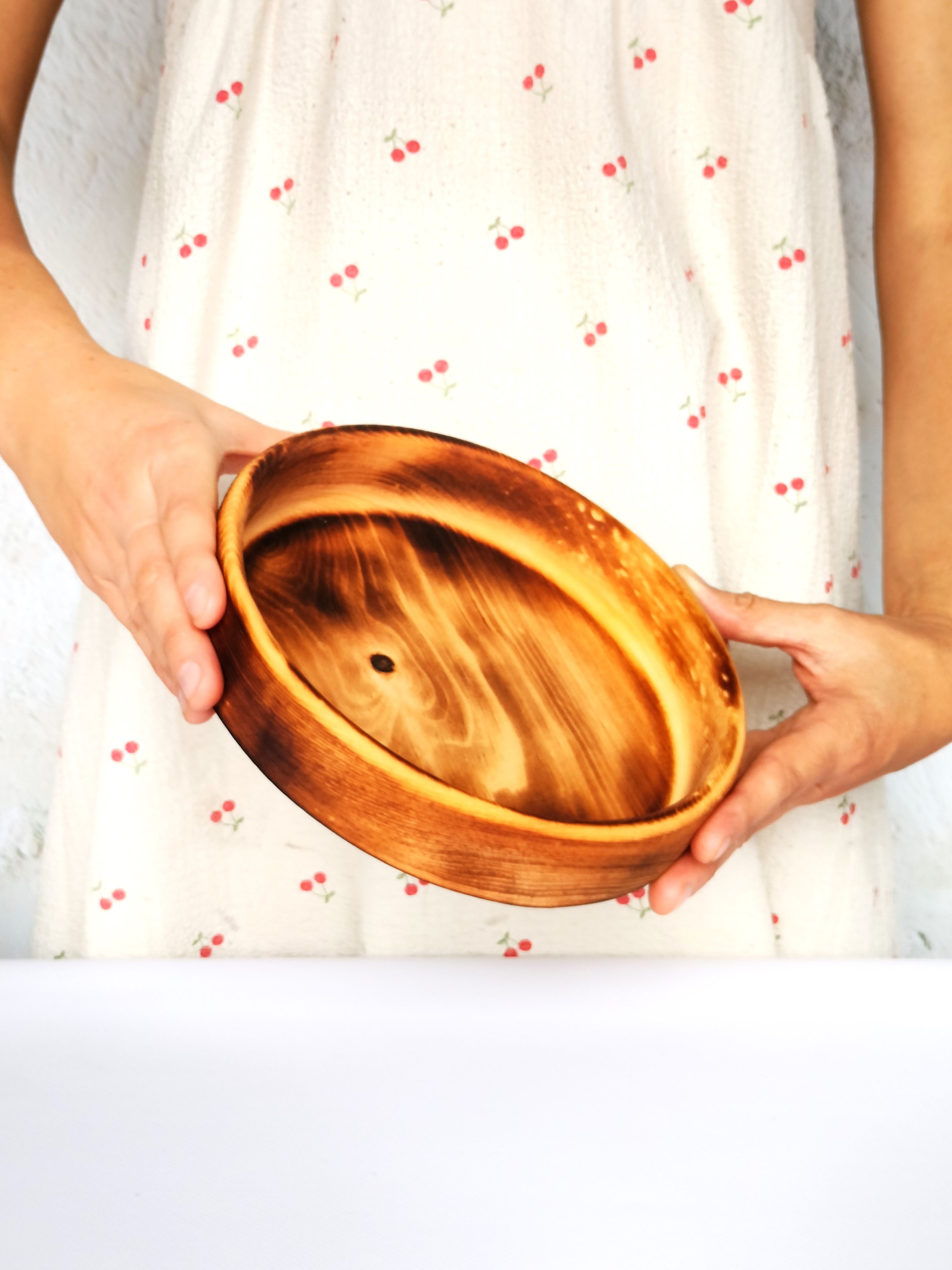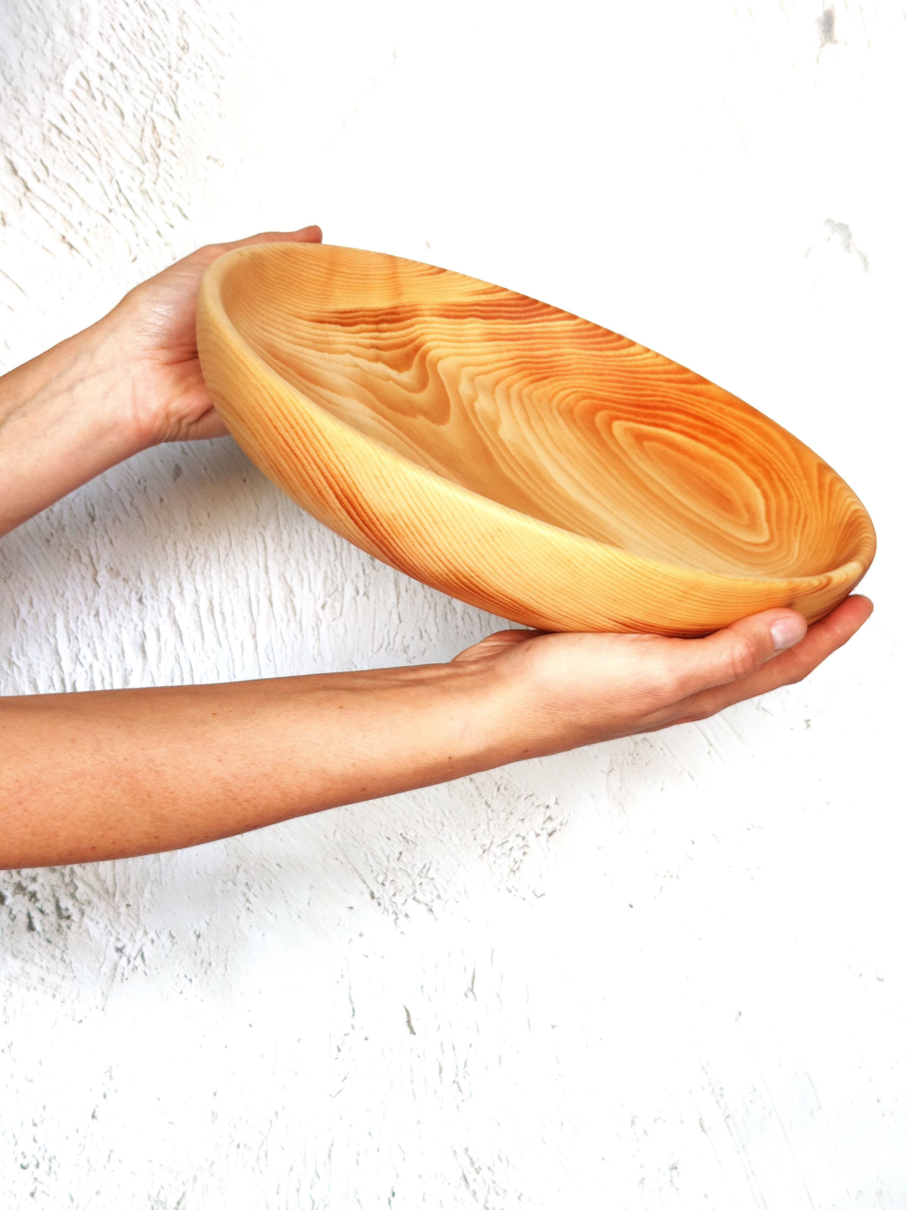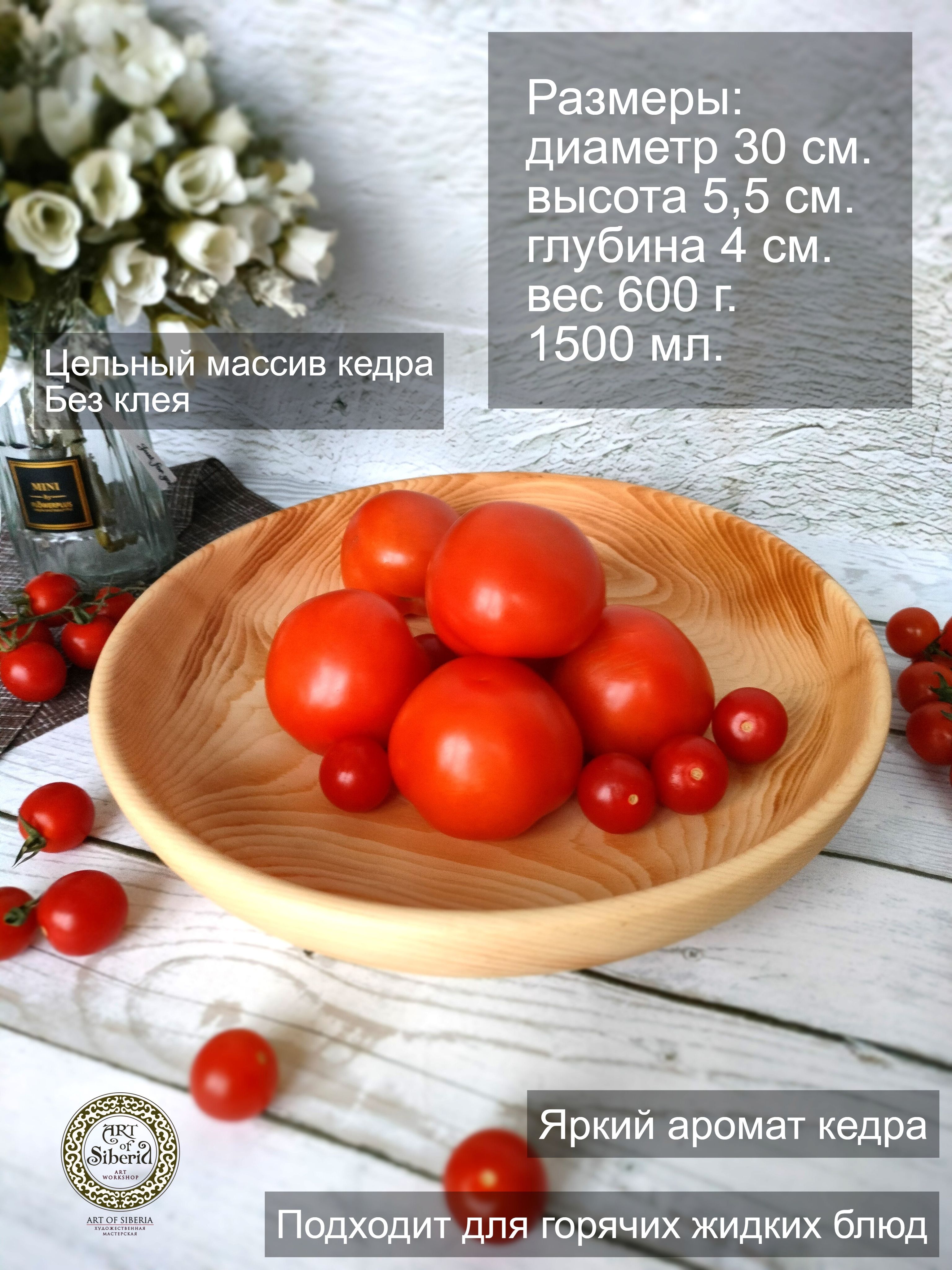 Популярность посуды из кедра объясняется как красотой древесины, так и ее лечебными качествами. Тарелки и миски удобны для приема пищи и для ее хранения. Люди, пользующиеся такими тарелками, могут подтвердить, что еда сохраняет свежесть намного дольше: она не прокиснет и не покроется плесенью. Древесина кедра придаст пище особый аромат и вкус. И что немаловажно, кедр обладает дезинфицирующим свойством, и продукты в такой тарелке становятся полезней, насыщаясь фитонцидами кедра.
