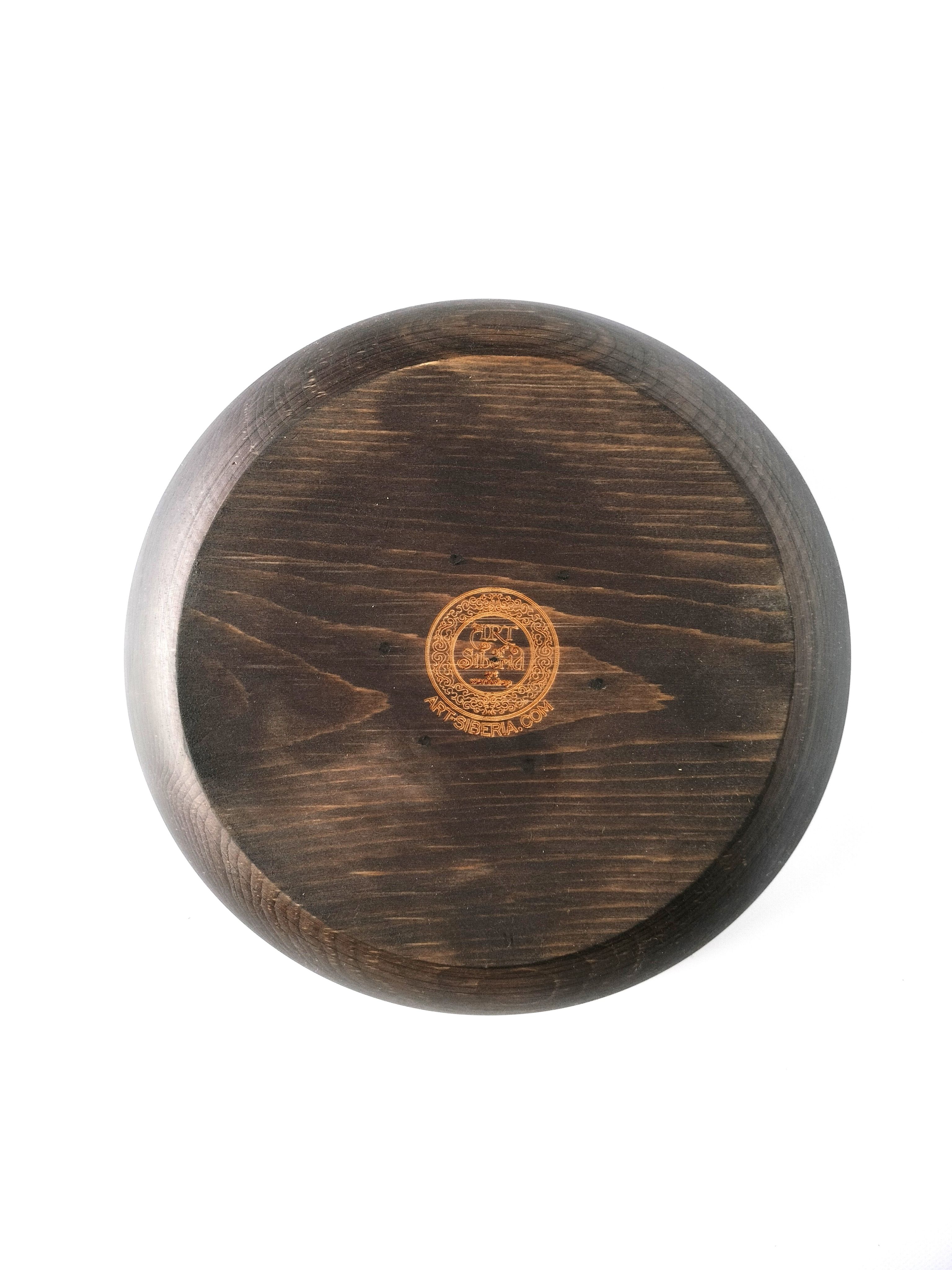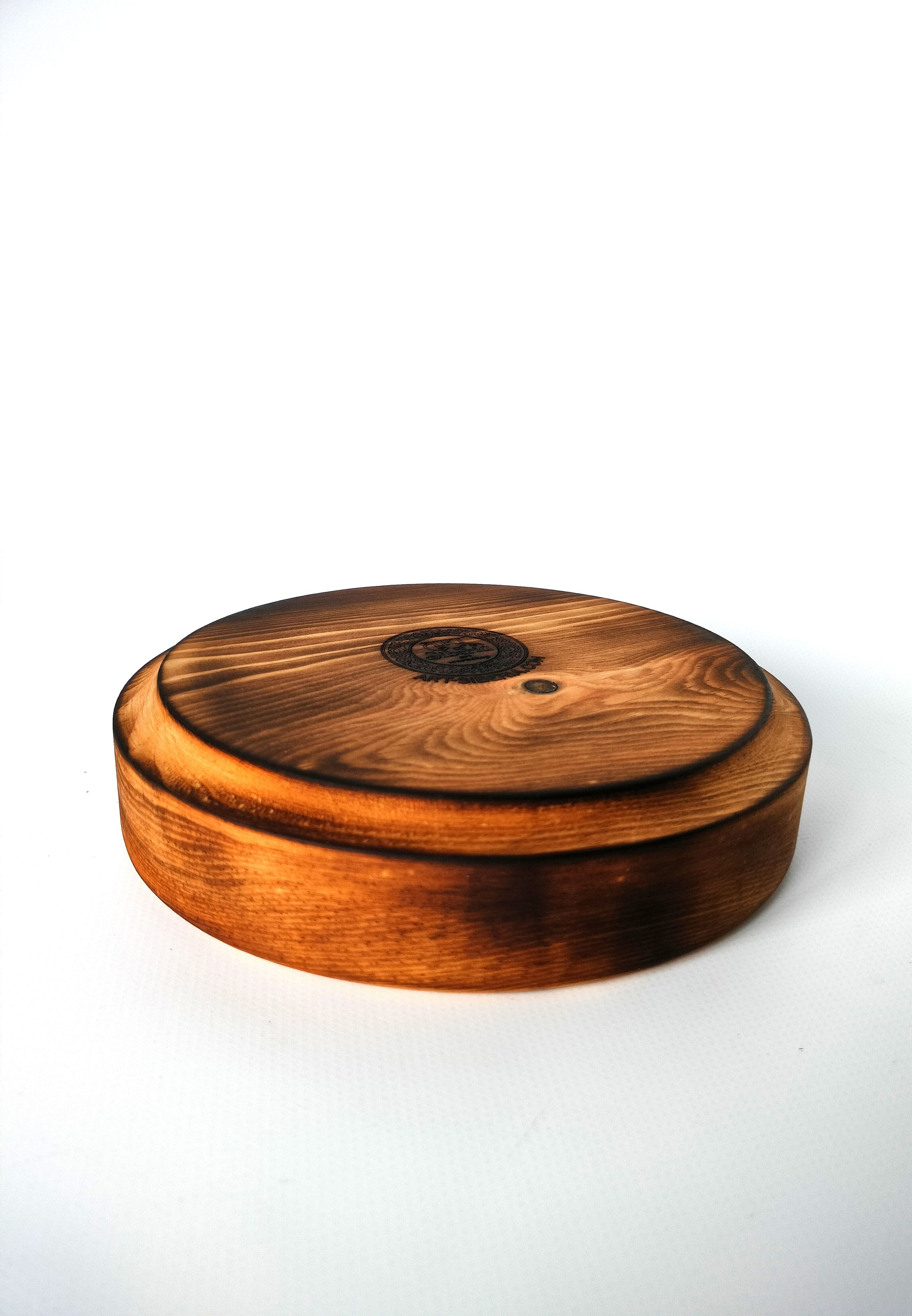 Вся посуда, которая контактирует с едой, водой, покрывается специальным составом из пчелиного воска, растительного масла и кедровой смолы. В первую очередь, это делается для безопасности людей, которые будут ей пользоваться, а также для сохранения самого деревянного изделия. Перед пропиткой состав подвергается длительной термообработке (кипятится), в результате в нём отсутствуют вредные вещества и микроорганизмы, оно бактерицидно. Данный состав, попав в толщу древесины, под воздействием кислорода из воздуха полимеризуется, закупоривает поры древесины, делая её водонепроницаемой. Масло создаёт на поверхности изделия прочную и красивую плёнку, воск придает глянец готовым изделиям, а смола - приятный древесный аромат. А в целом этот состав не забивает поры, и дерево продолжает «дышать».