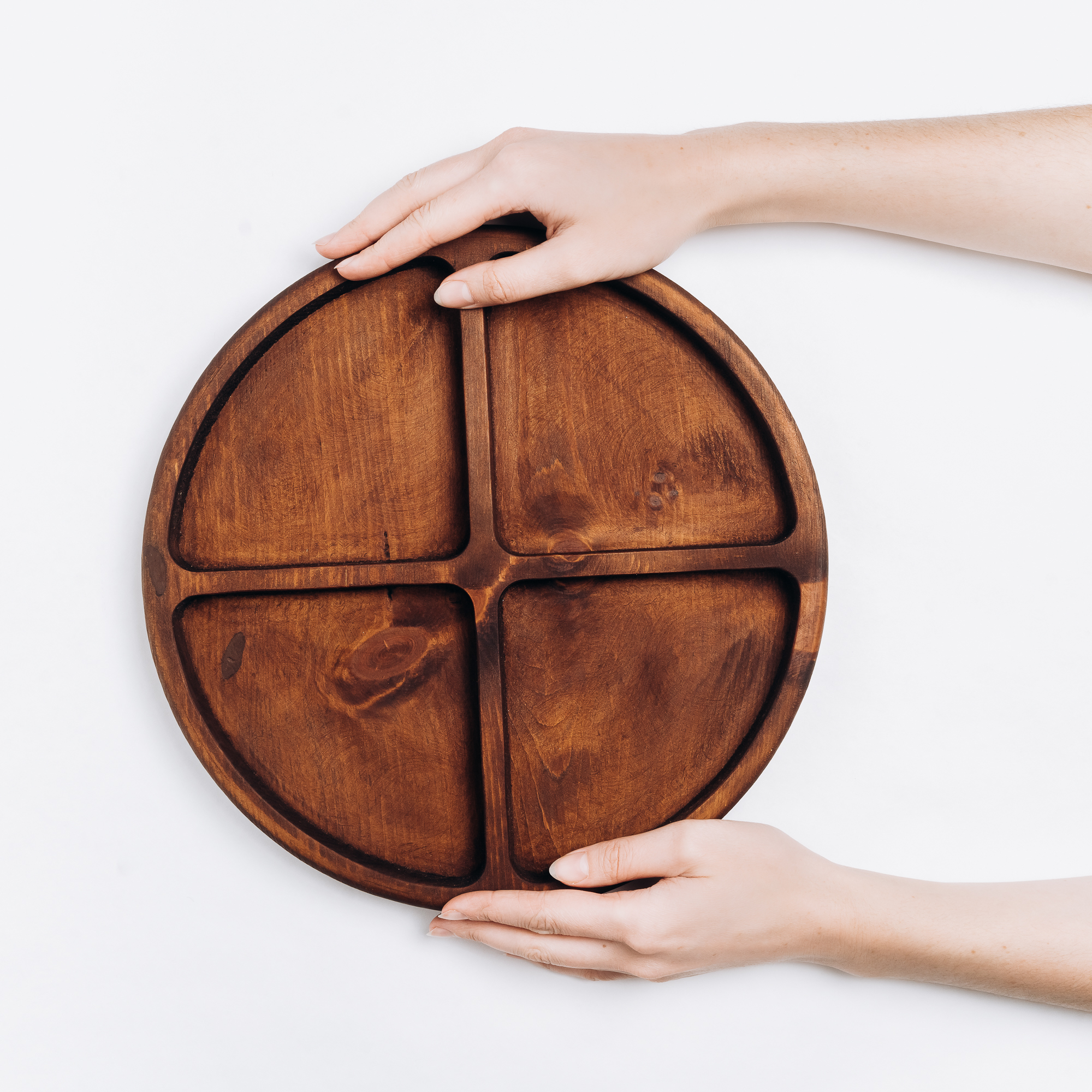 Деревянная тарелка с секциями (менажница) из кедра. Любителям натуральности придется по душе наша деревянная менажница, имеющая такие плюсы, как красивый узор древесины, не бьется, натуральна, долговечна и подходит для различных блюд. А антибактериальные свойства кедра привлекают ценителей чистоты. Подходит для любых видов закусок! Возможно наличие сучков. Пропитана нашим составом на основе растительного масла, кедровой смолы и пчелиного воска.