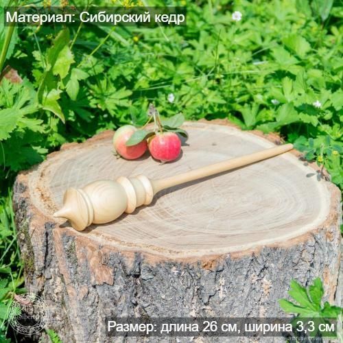 Деревянное опорное веретено для прядения из древесины кедра 300 мм. Art of Siberia.