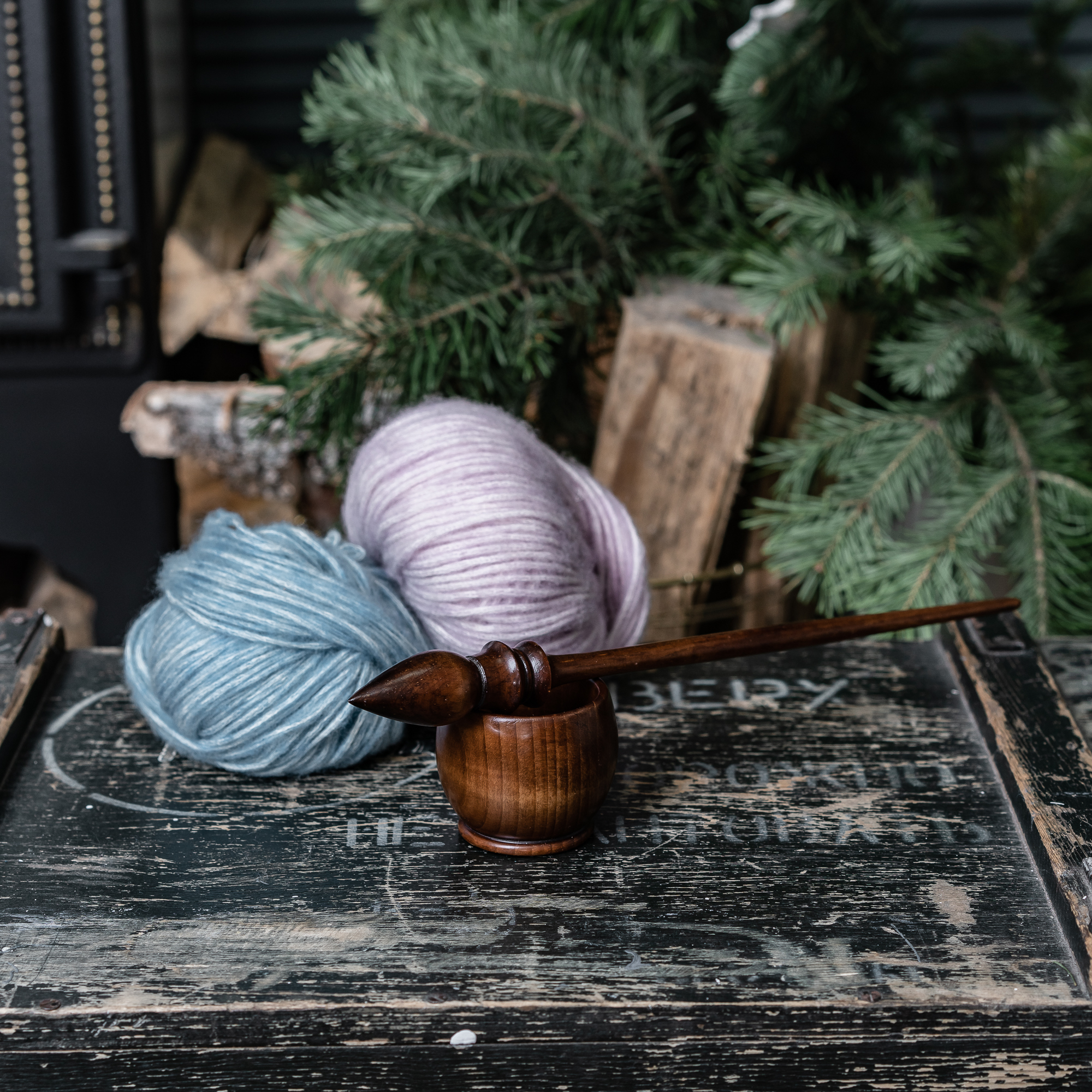 Классическое русское веретено из натурального Сибирского Кедра с удобным основанием!