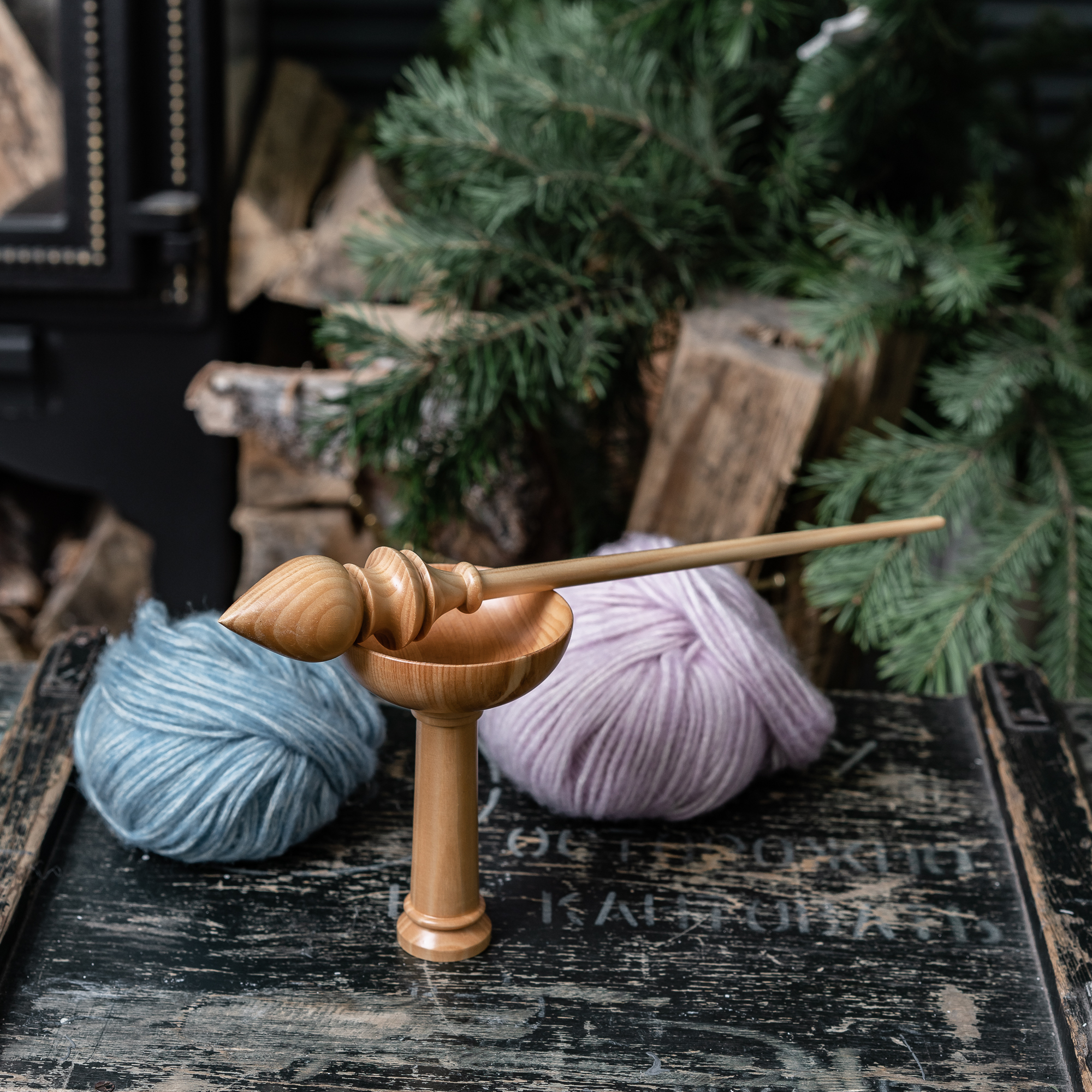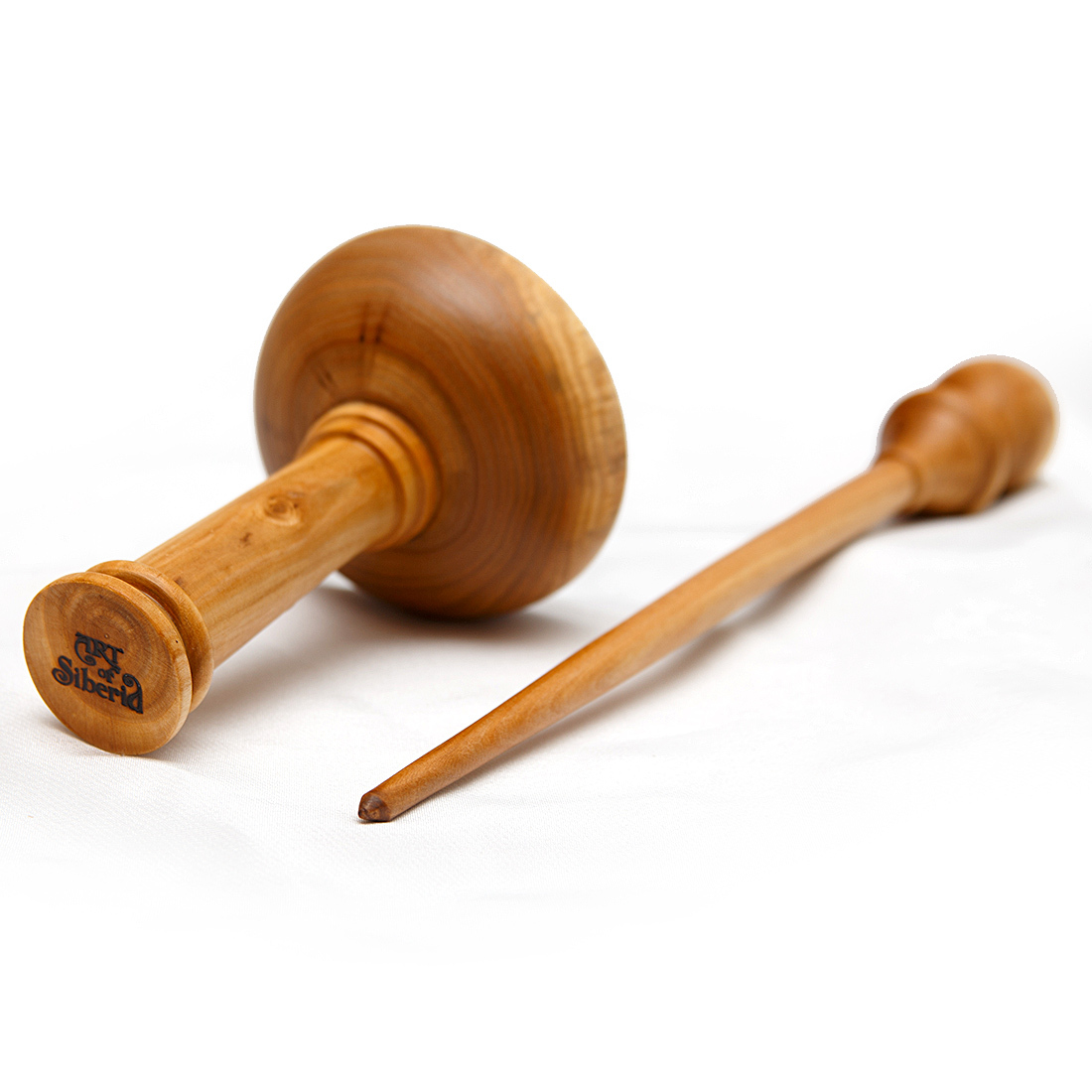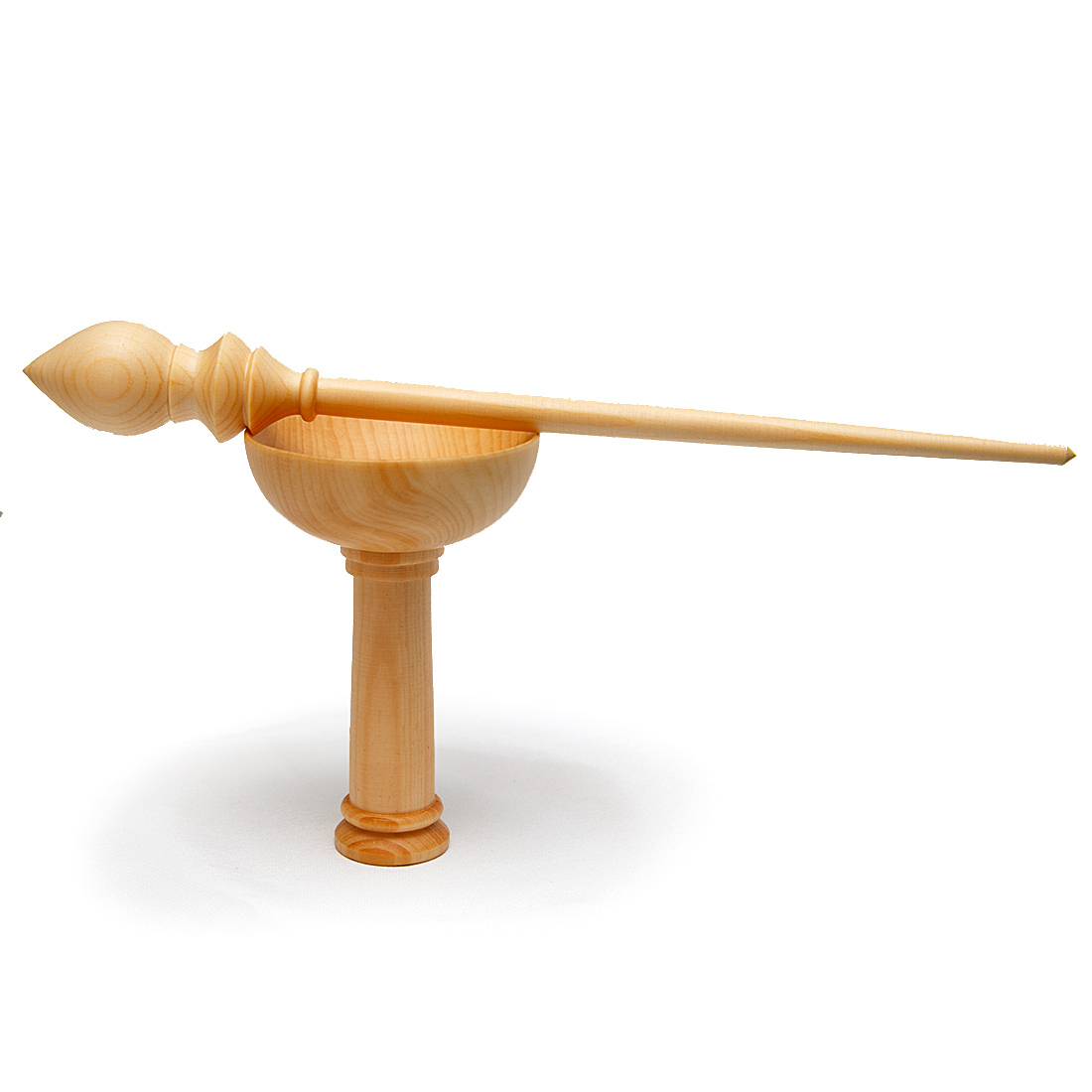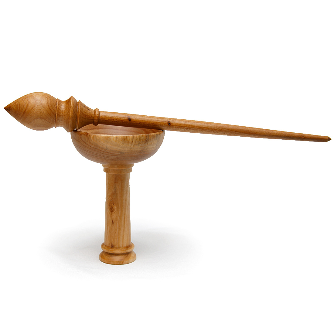 Деревянное веретено для прядения с основанием для ног из древесины вяза.