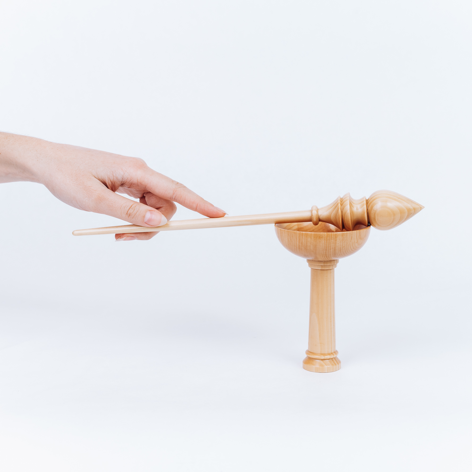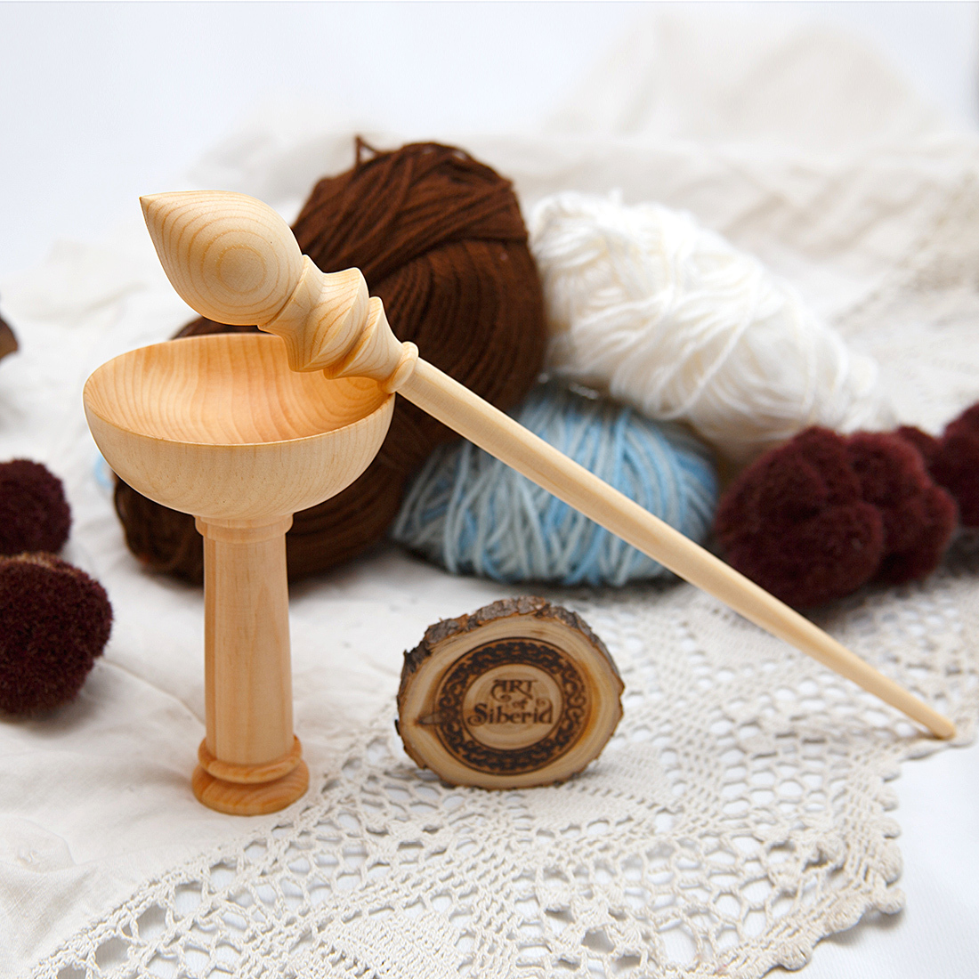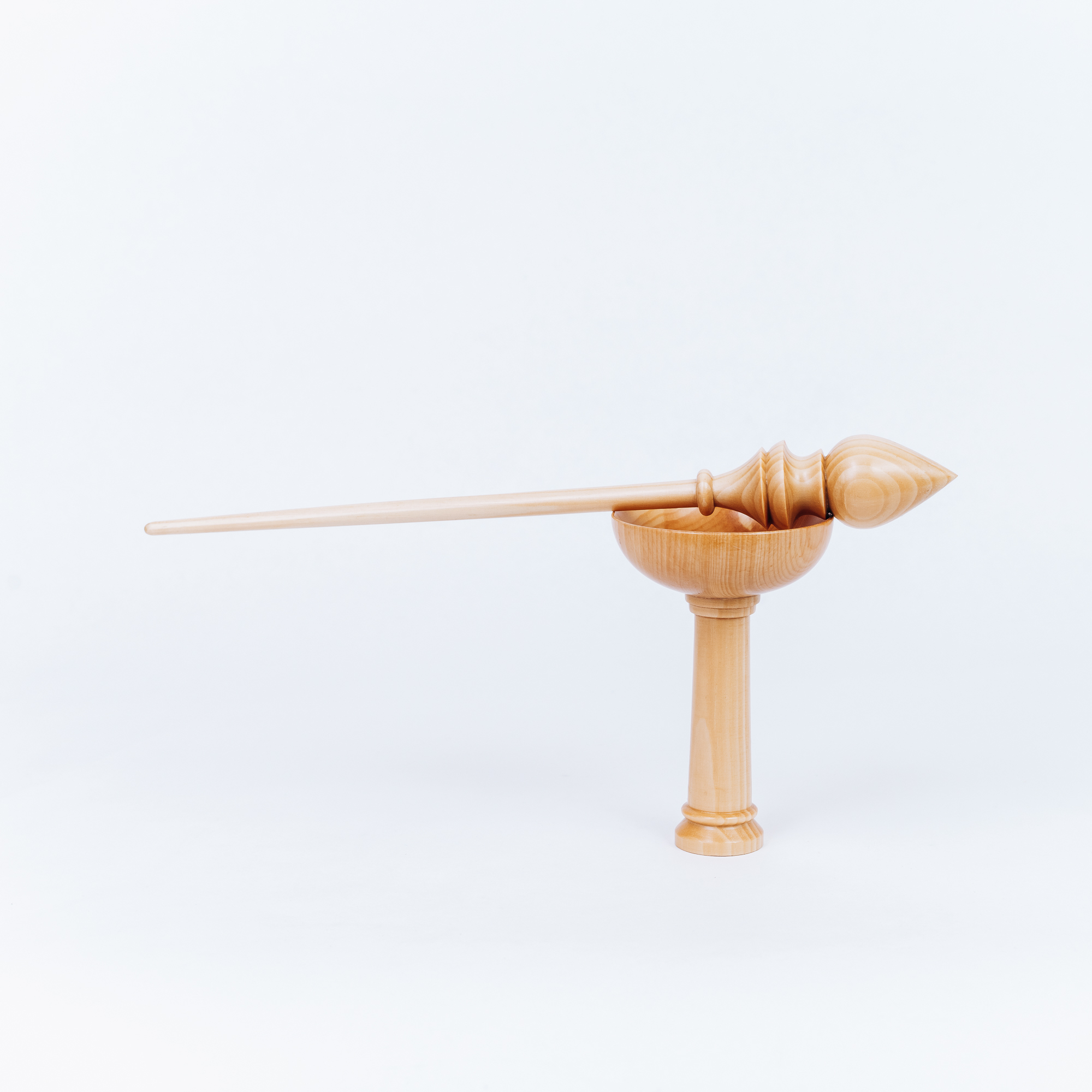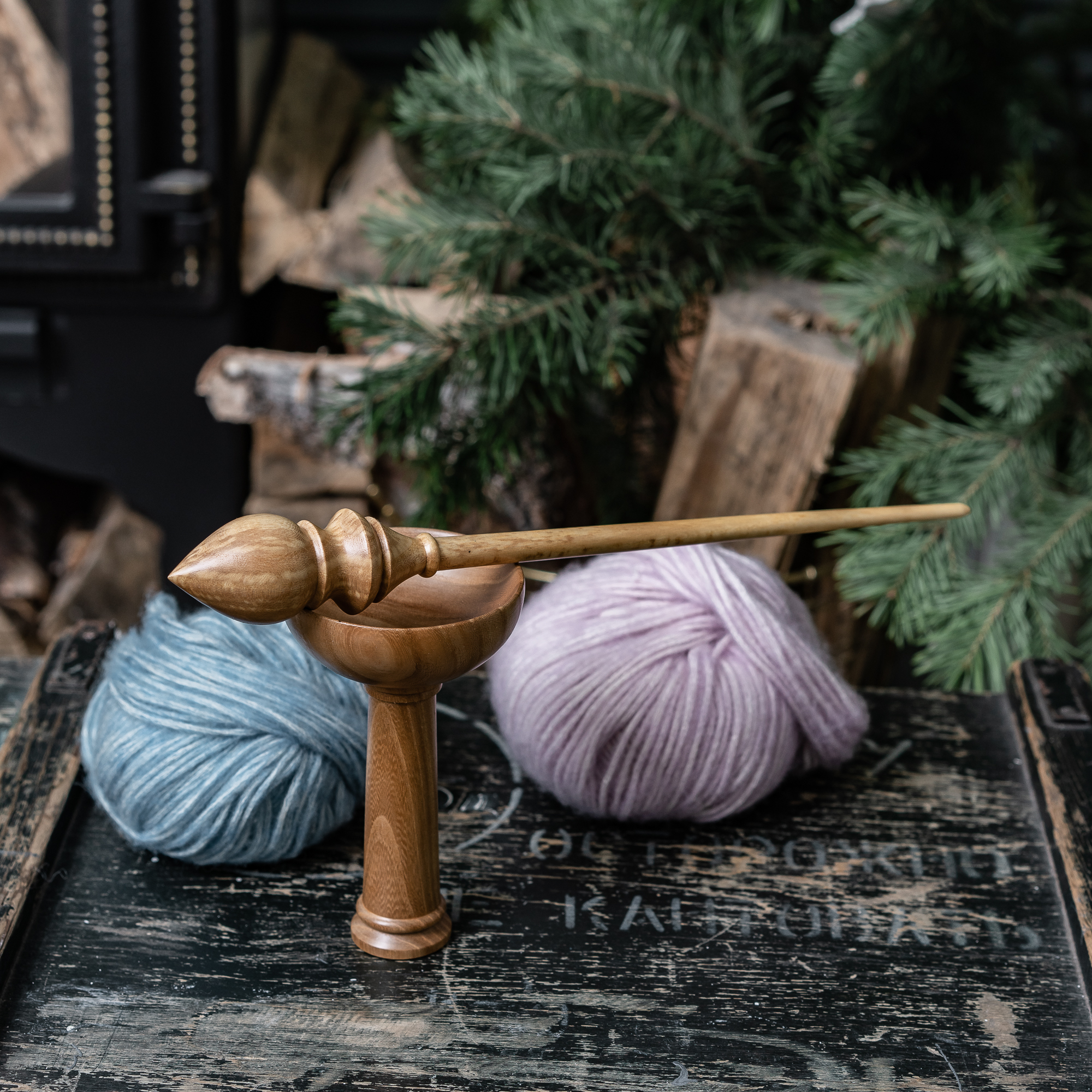 Деревянное веретено для прядения с основанием для ног из древесины вяза.