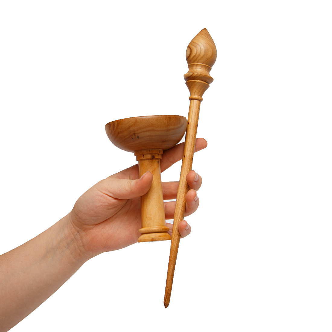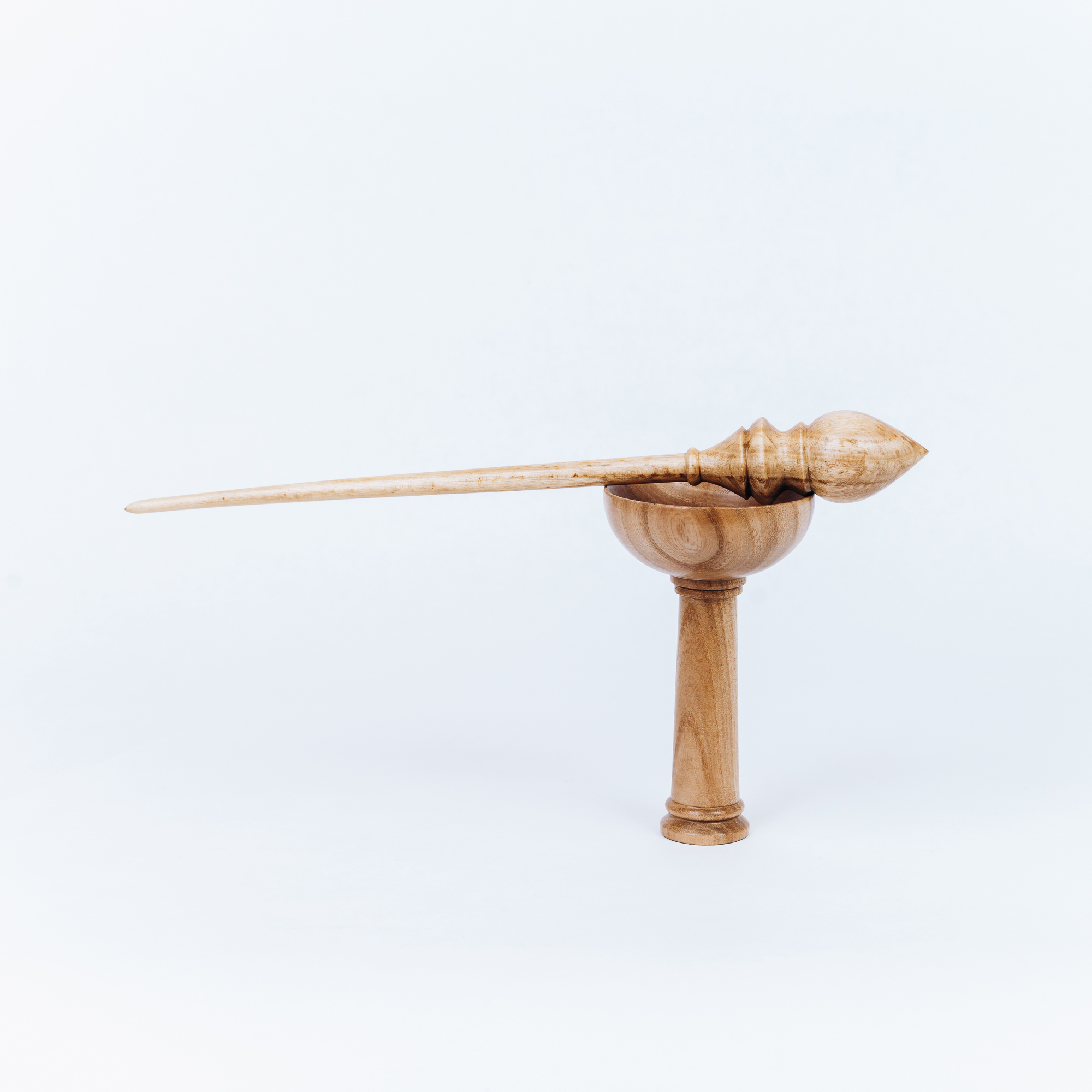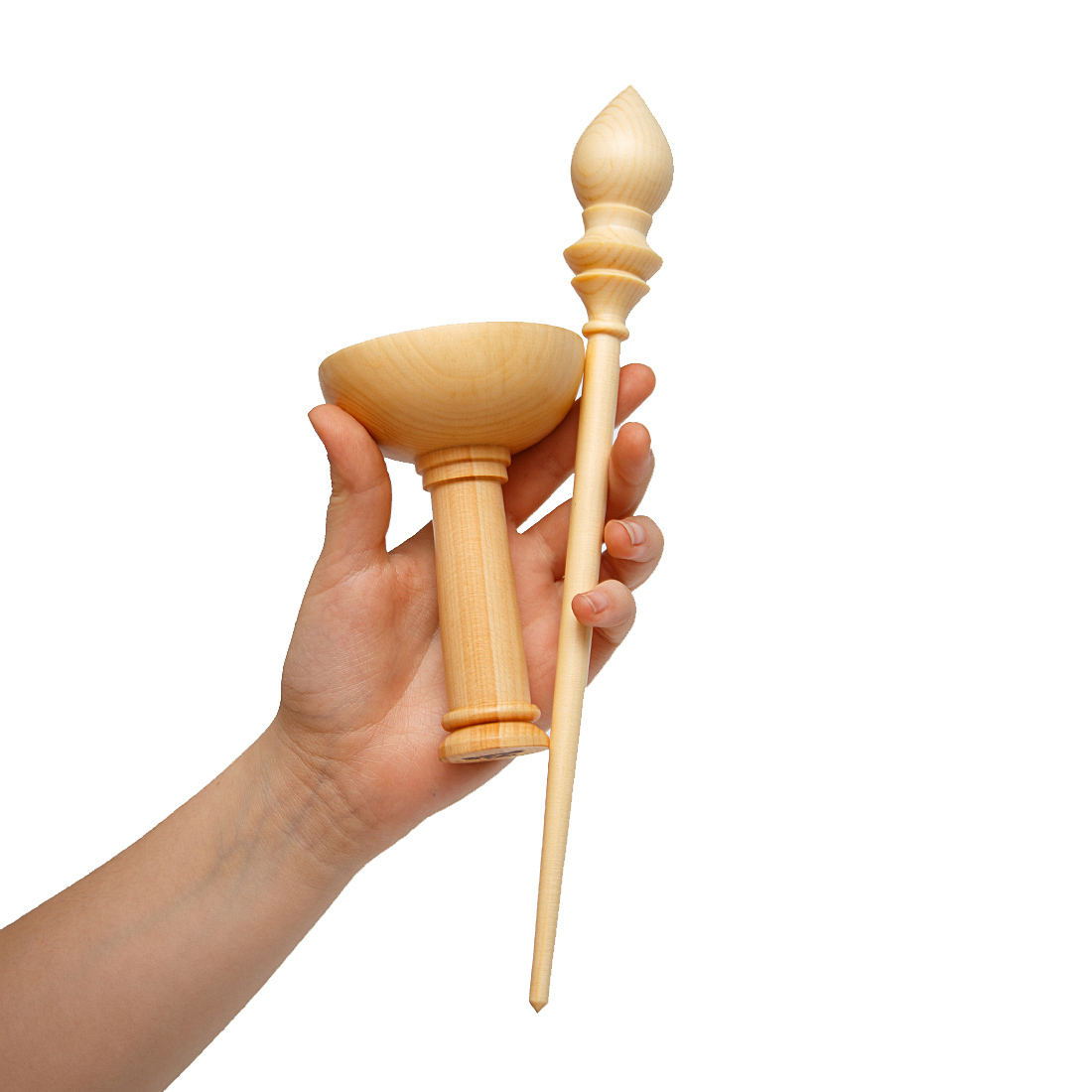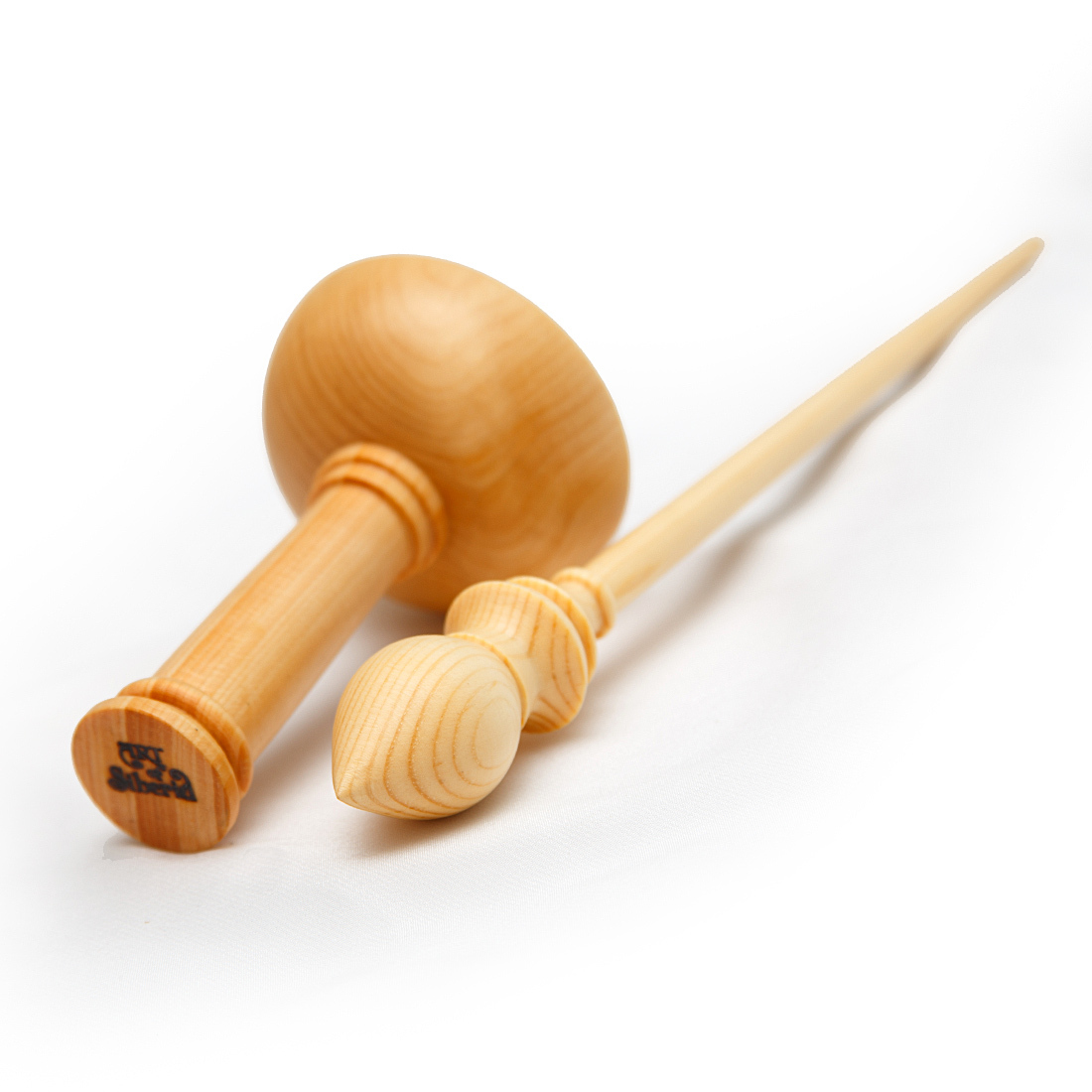 Деревянное веретено для прядения с основанием для ног из древесины вяза.