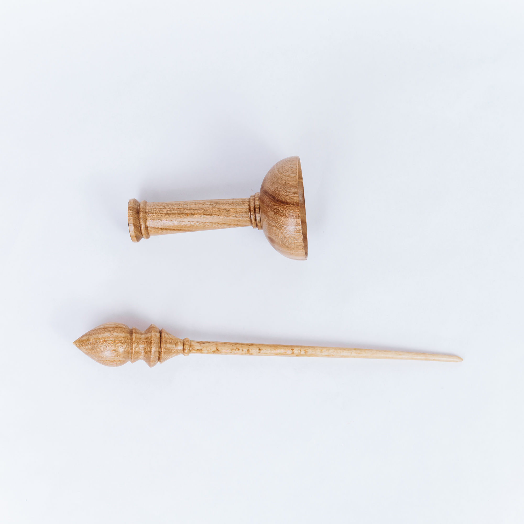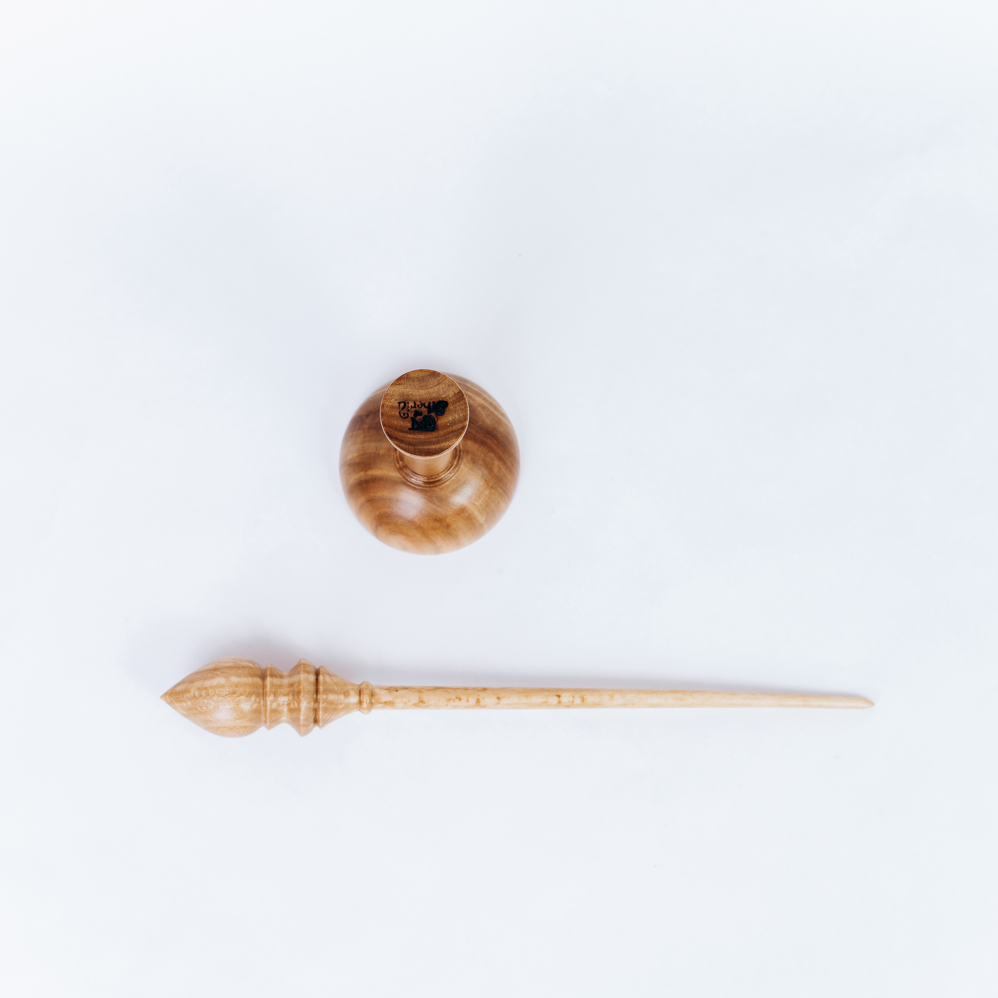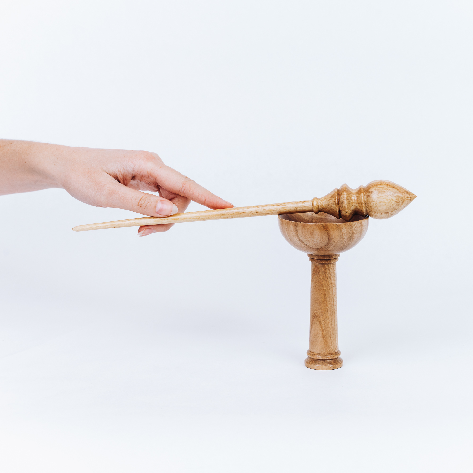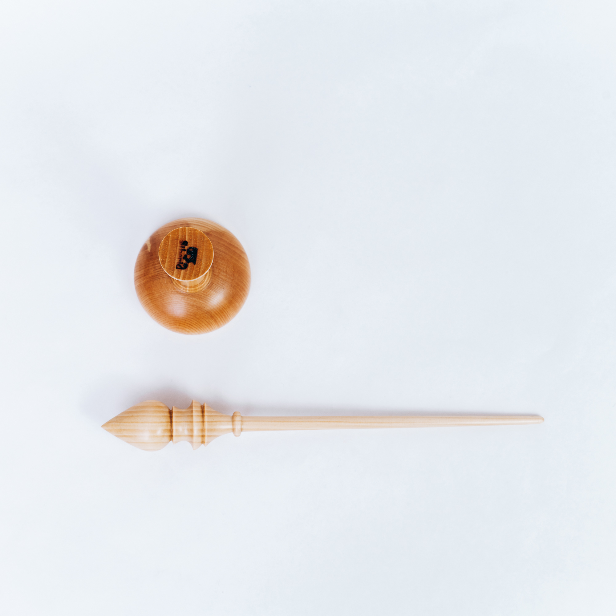 Деревянное веретено для прядения с основанием для ног из древесины вяза.