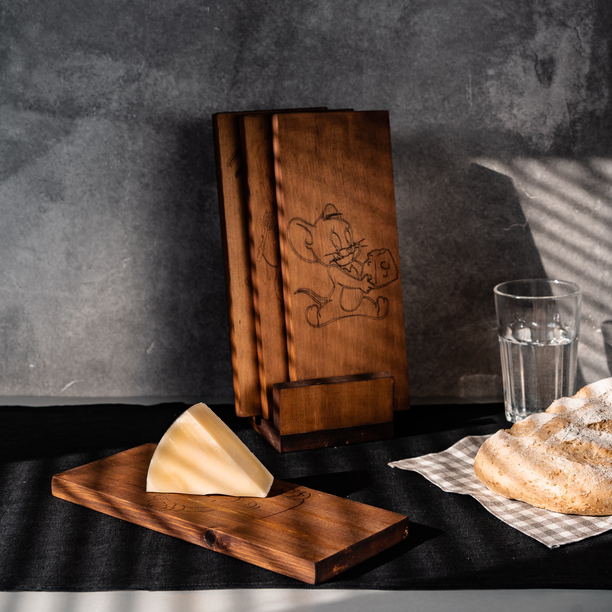 Разделочные доски 4 шт. на подставке из сибирского кедра.