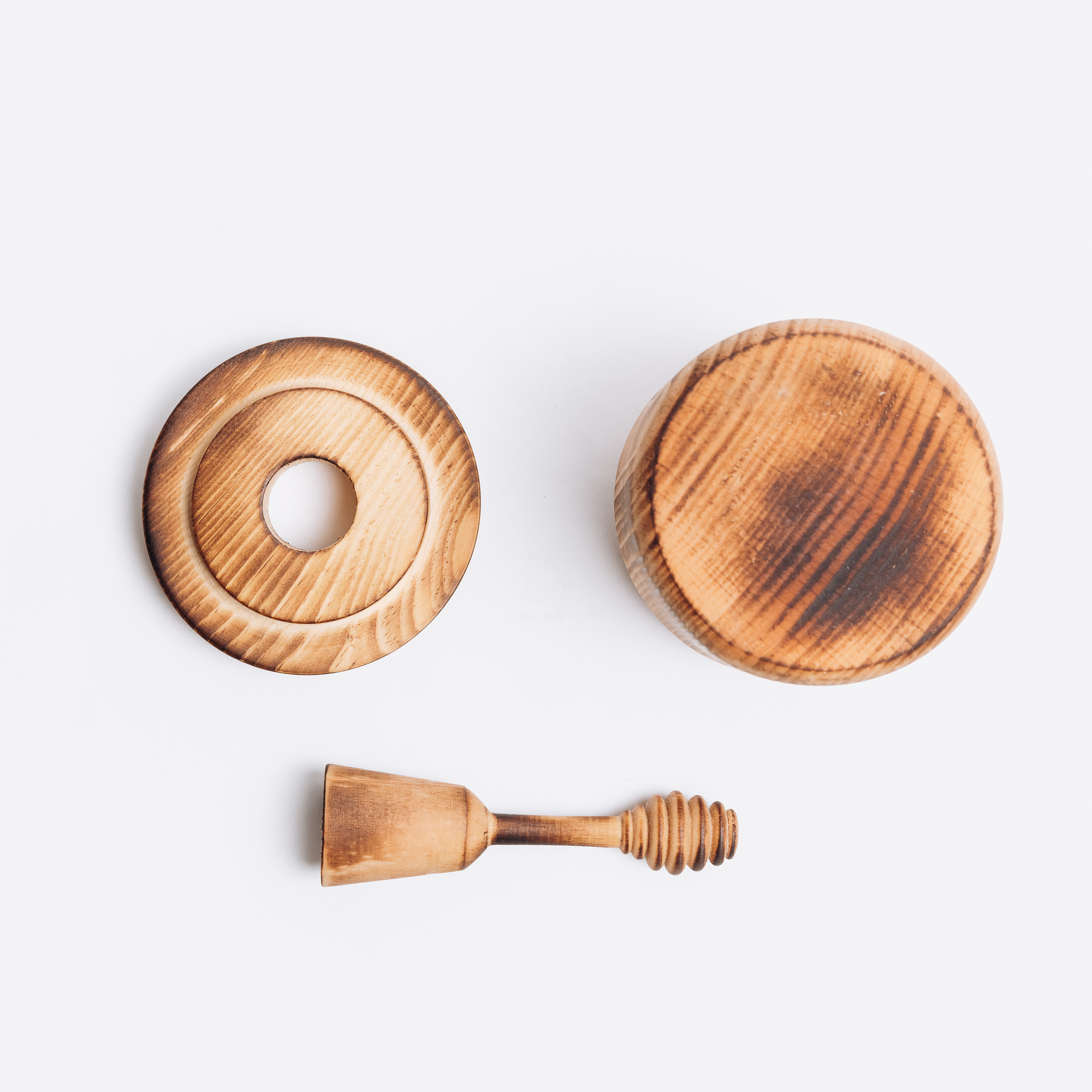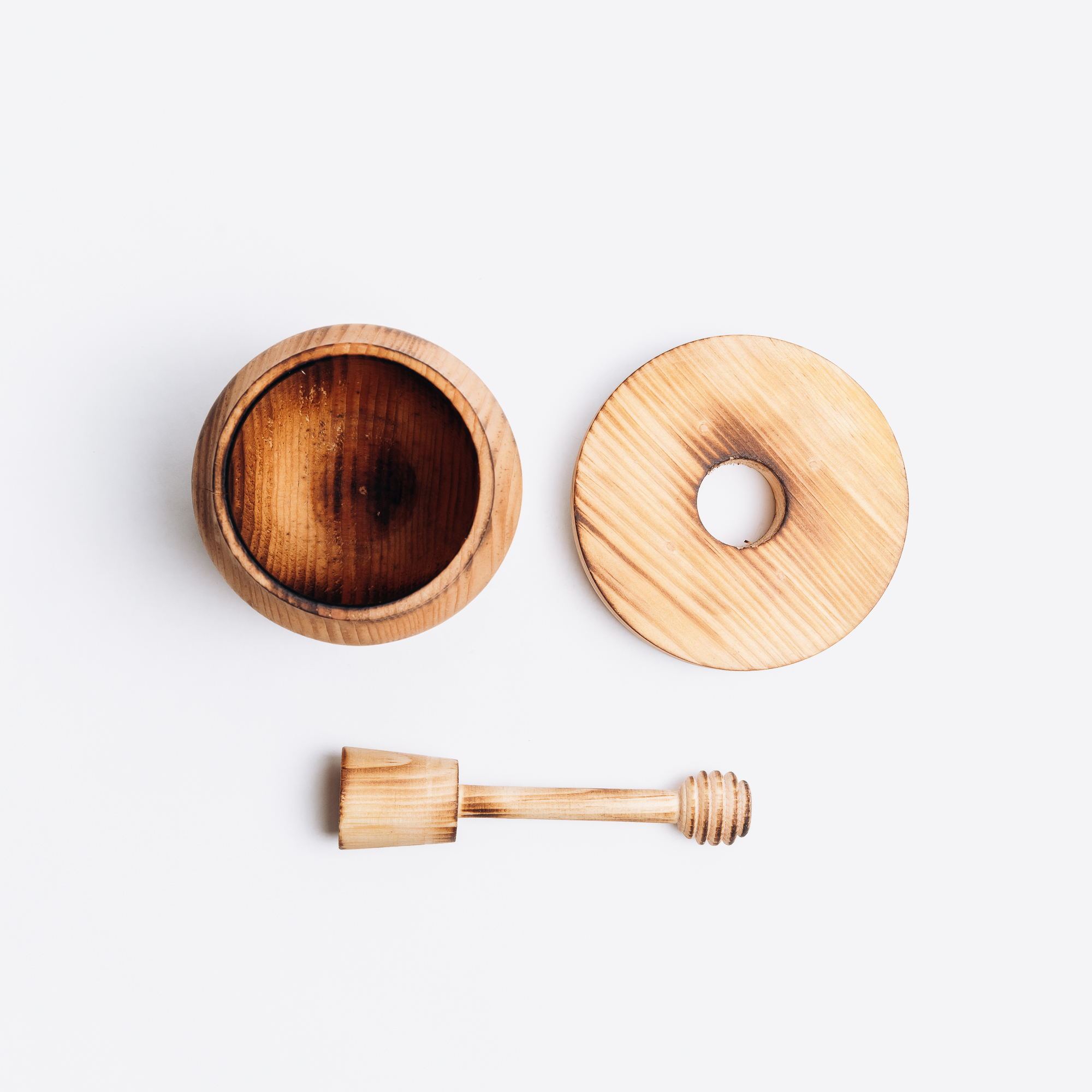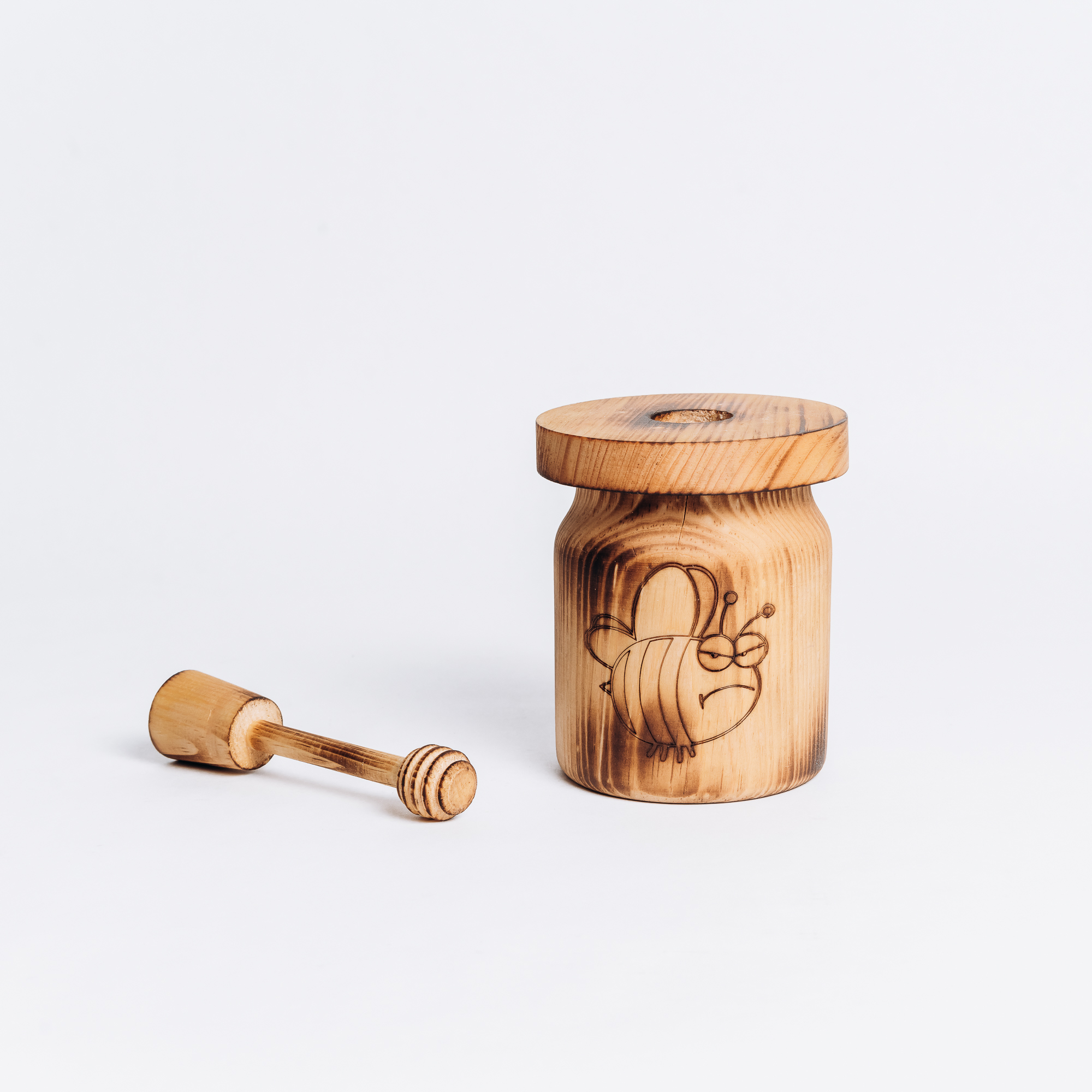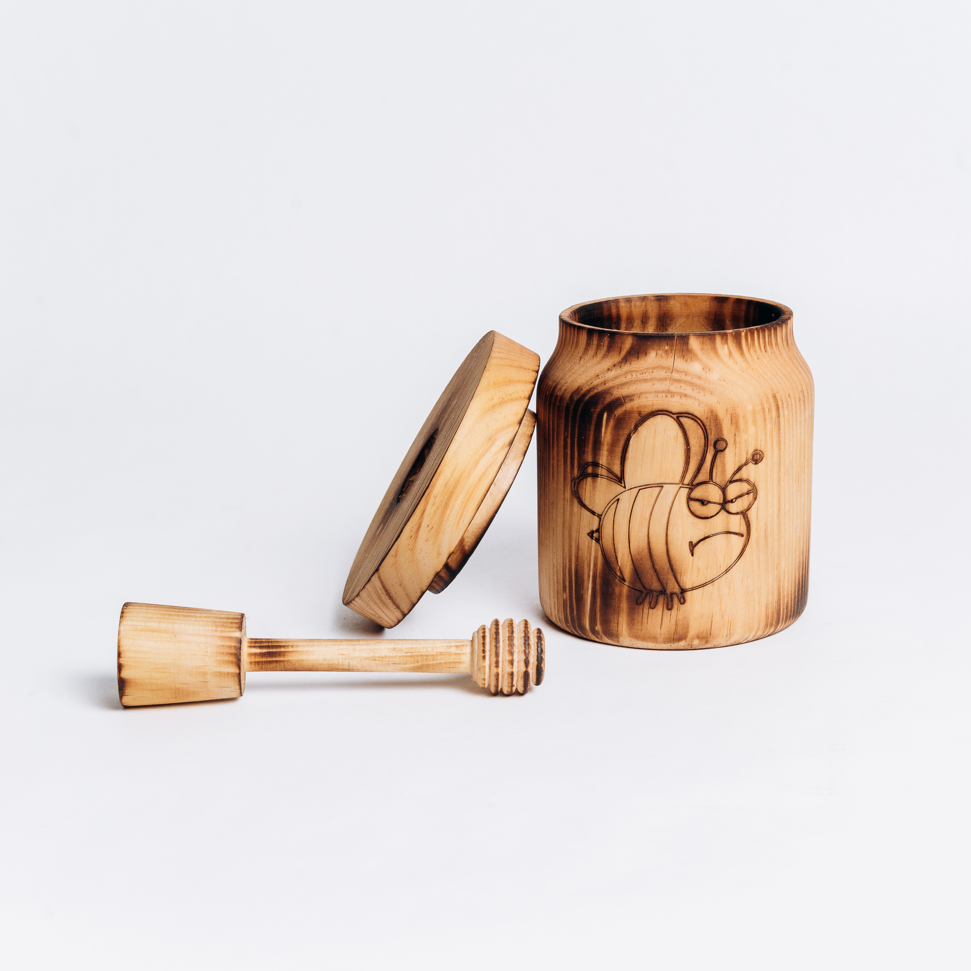 Деревянная чашка (бочонок) для мёда с крышкой и ложечкой для меда из древесины кедра.