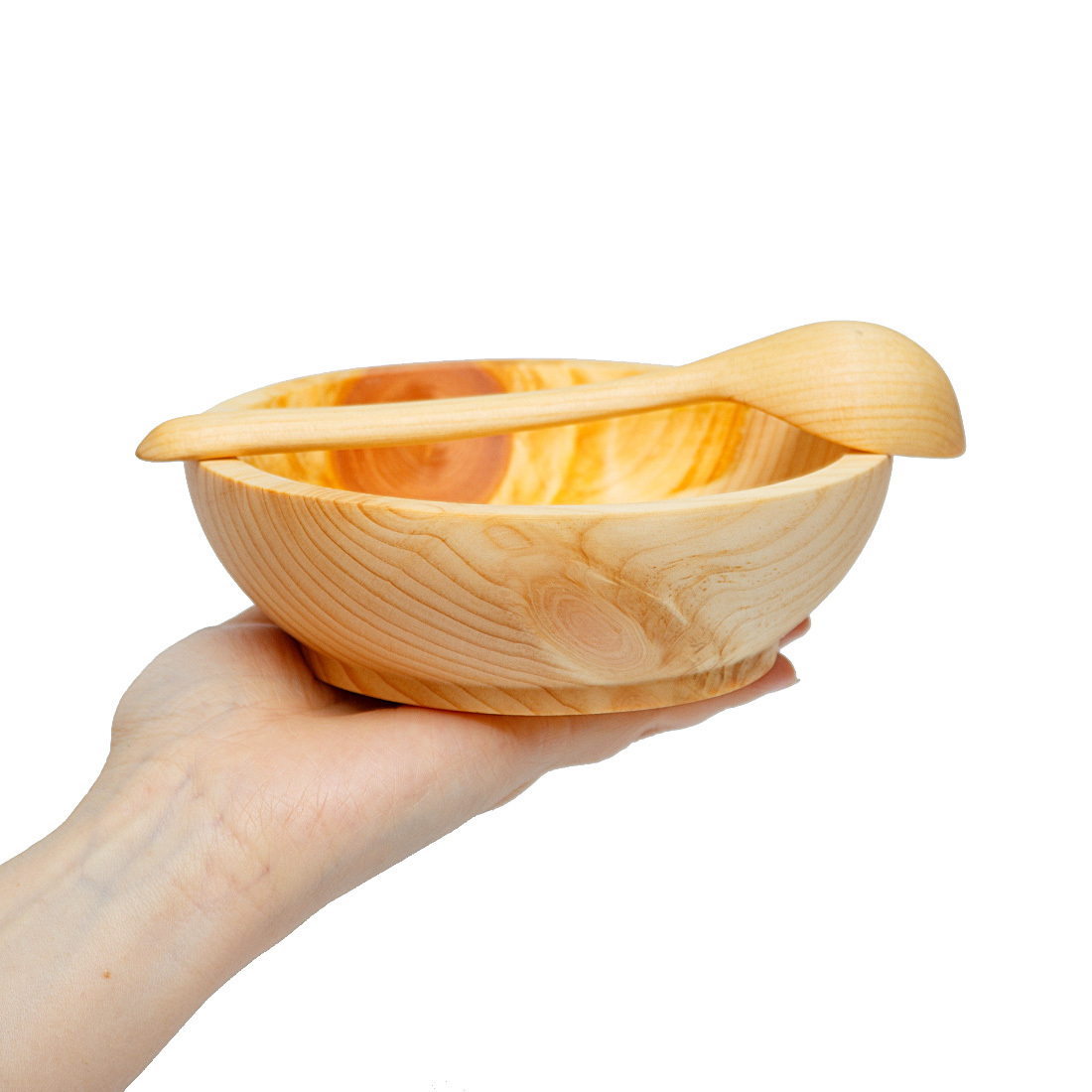 Тарелка и ложка из натурального дерева сибирского кедра, 1шт.