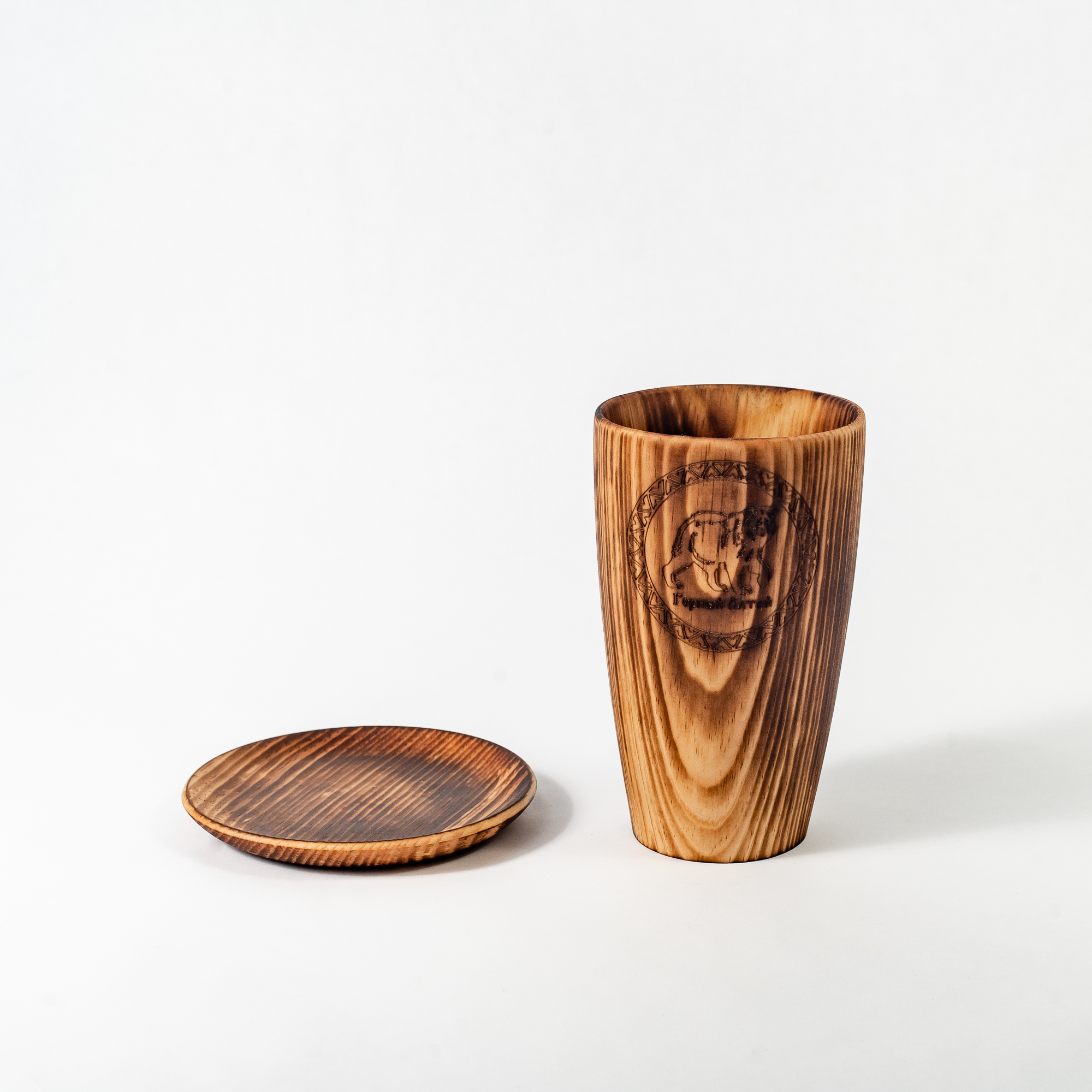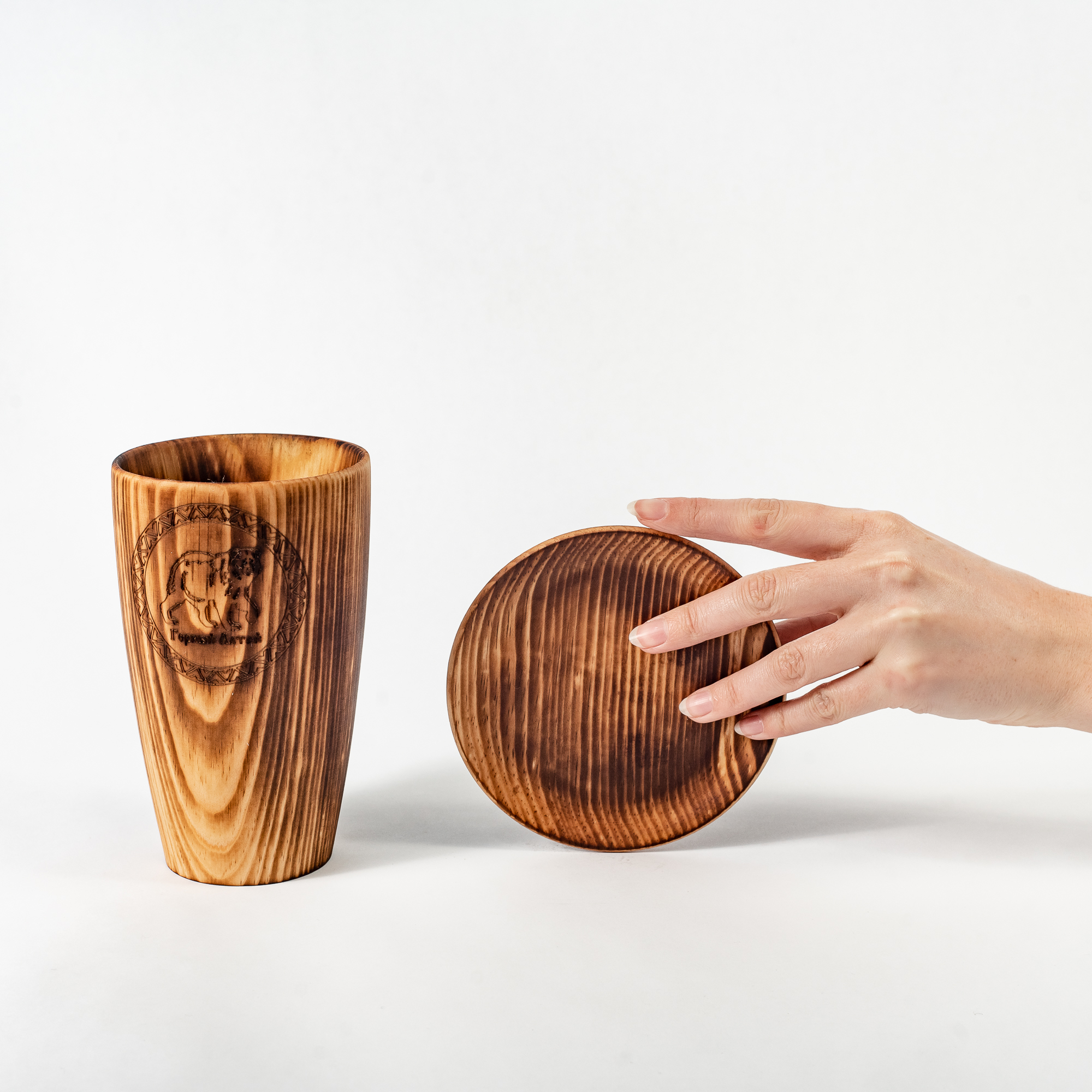 Деревянный пивной набор из сибирского кедра с блюдцем - незаменимый атрибут каждого ценителя напитка!