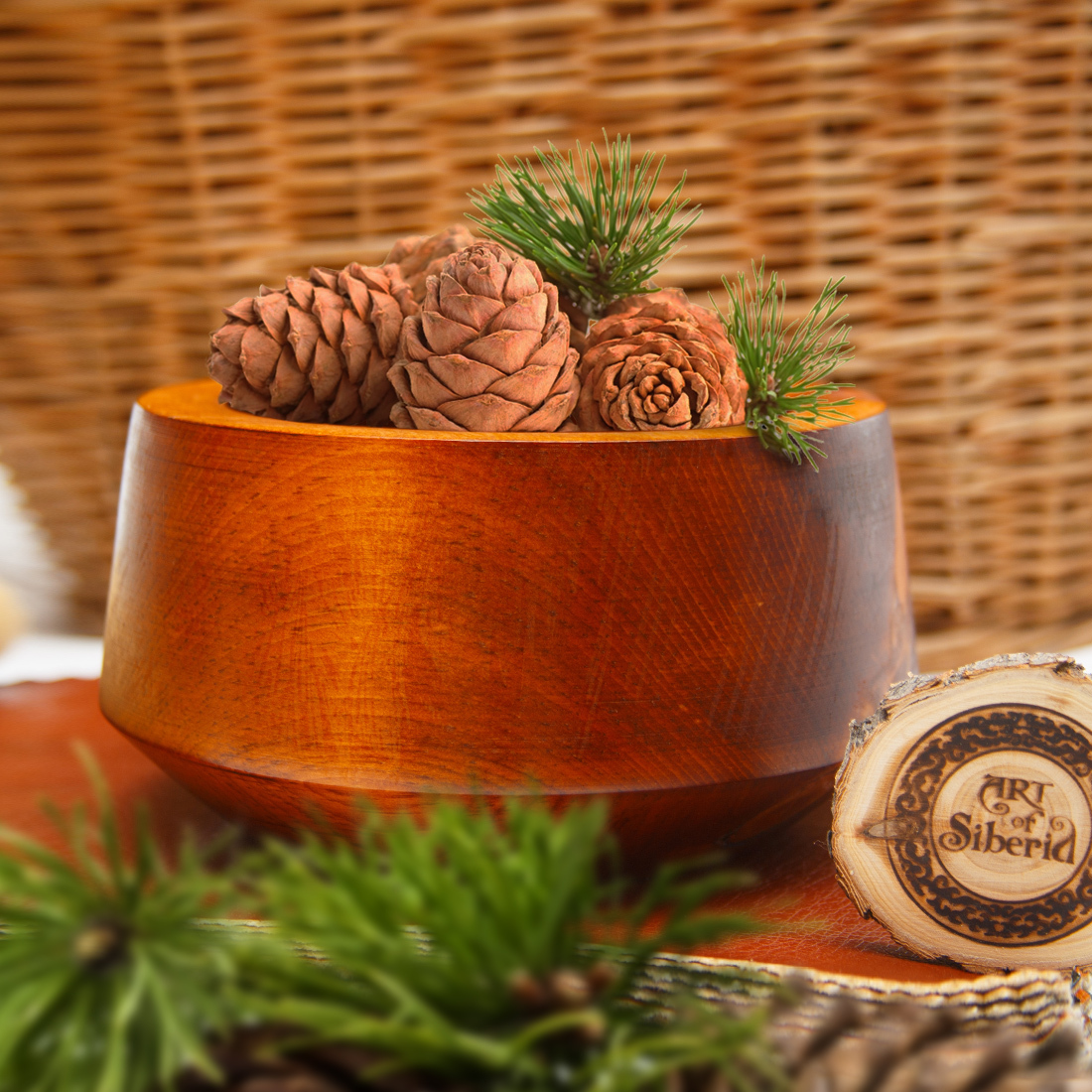 Салатник из натурального дерева сибирского кедра, 1 шт. Покрыта раскаленным пчелиным воском и маслом. Пригодна для пищевых продуктов.