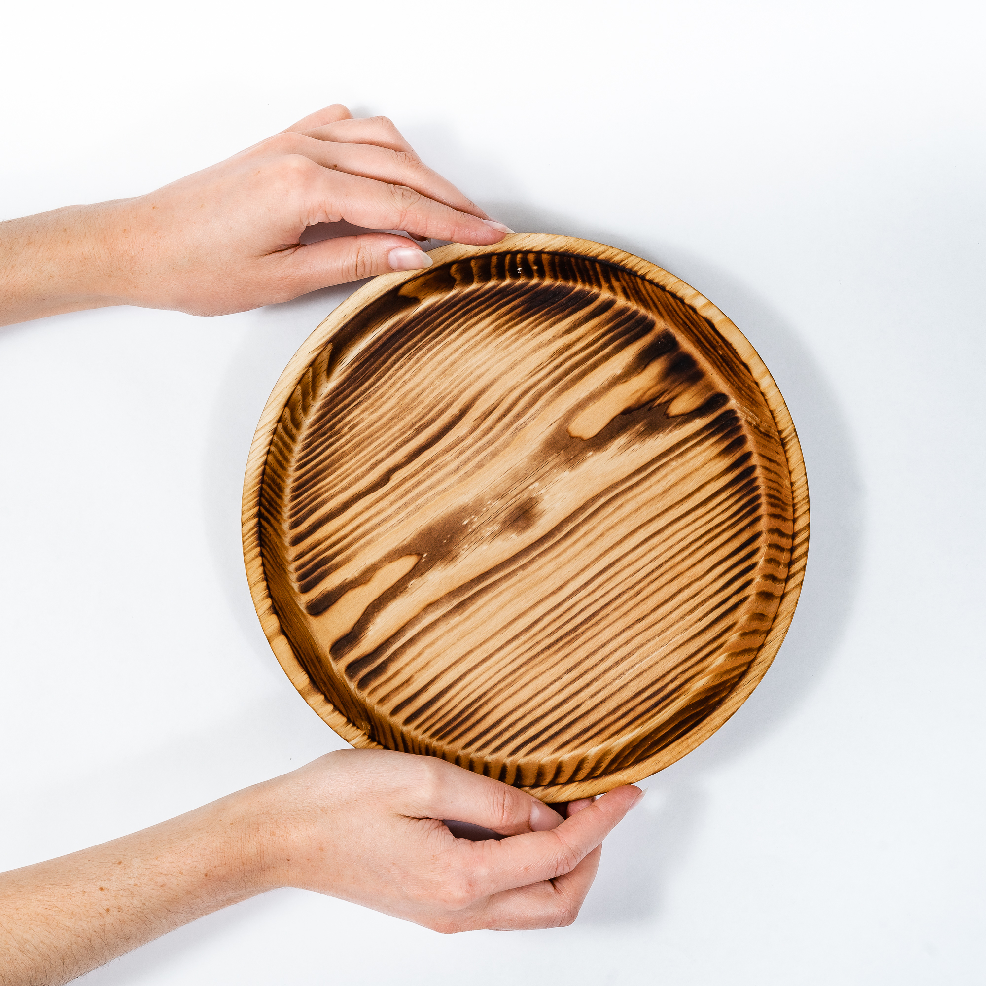 Круглый поднос для подачи блюд и сервировки стола из натурального дерева сибирский кедр.