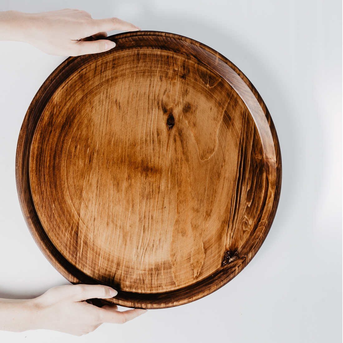 Круглый поднос для подачи блюд и сервировки стола из натурального Сибирского Кедра!