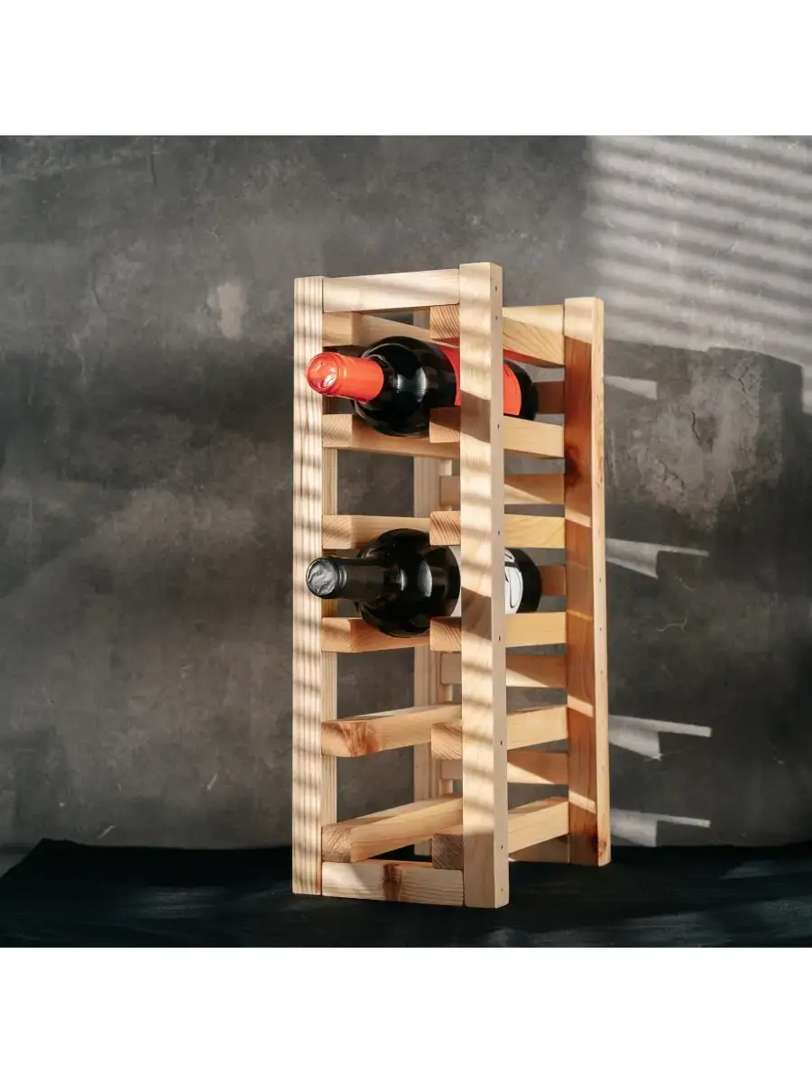 **Подставка для винных бутылок из древесины кедра!** Наши полки изготовлены из уникальной древесины эндемика "Сосны сибирской", которая так же носит более привычное название "Кедр". 100% натуральный массив! Покрыт супер экологичным составом из растительного масла и пчелиного воска.**Размер:** 45х16х22,5 см Вес 1,7кг.