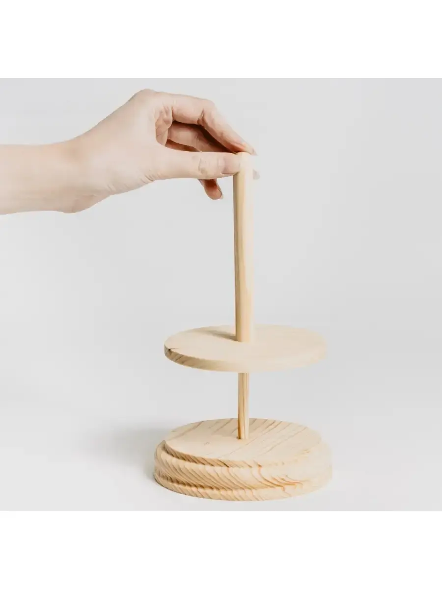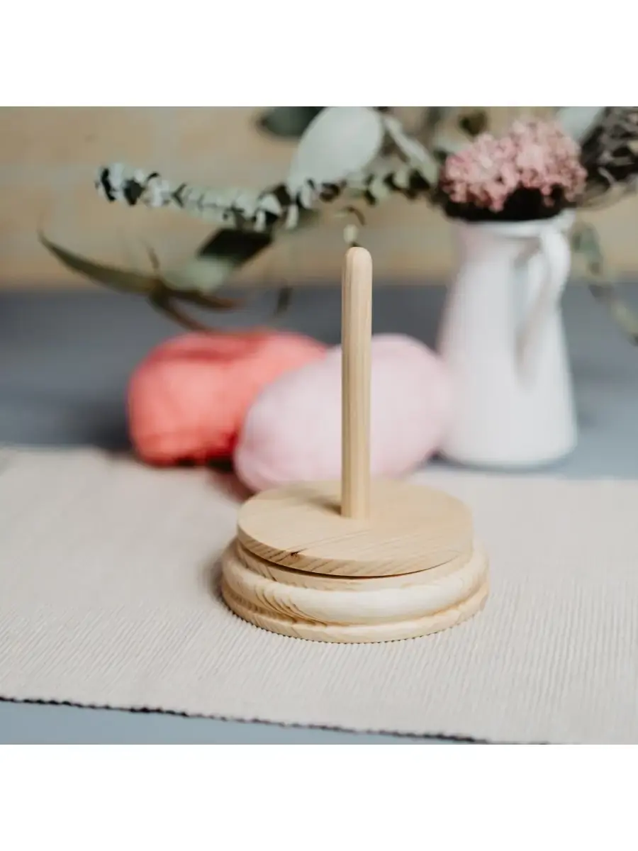 Деревянный спиннер для пряжи и клубков. Легкий и удобный помощник для вязания! Изготовлен из натурального Сибирского Кедра! Просто разместите моток на штырь: благодаря вращающейся основе моток будет равномерно раскручиваться, сохраняя натяжение нити и не допуская ее спутывания! Клубок больше не будет убегать от Вас! Компактный размер устройства позволяет его легко хранить, брать с собой в дорогу и использовать различных местах! Размер: диаметр основания 13,5 см, высота изделия 18,5 см, диаметр штыря 1,4 см, высота штыря 13,5 см.