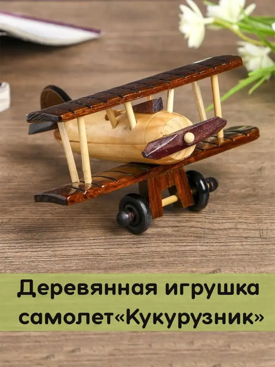 Деревянный самолет "Кукурузник" - это игрушка из дерева, которая помогает ребенку ближе познакомится с миром авиации. Играя самолетиком, ребёнок может придумать множество захватывающих и весёлых игр, познавая окружающий мир. Поверхность деревянной игрушки отличается гладкостью, хорошо обработана и не имеет острых углов и граней. Самолётик обеспечит прекрасное времяпрепровождение и замечательную атмосферу для развития ребенка. Абсолютно безопасен и экологичен, приятно держать в руках, ощущая тепло и текстуру натурального дерева. Изготовлен из натурального дерева. Размеры 160х155х85 мм. Вес 85 грамм