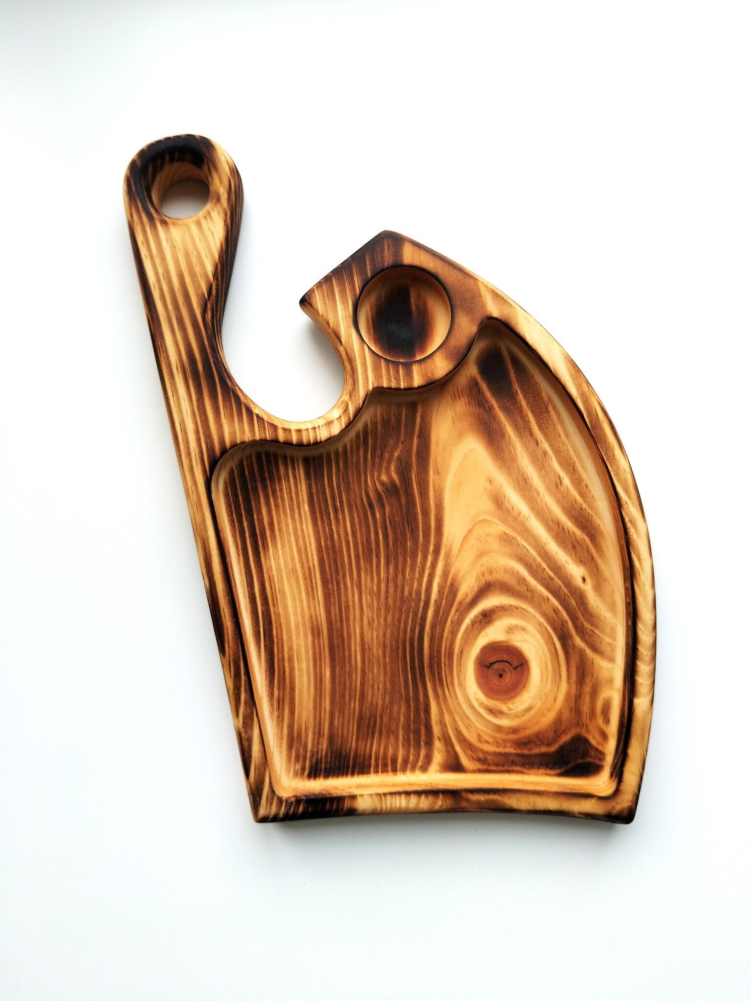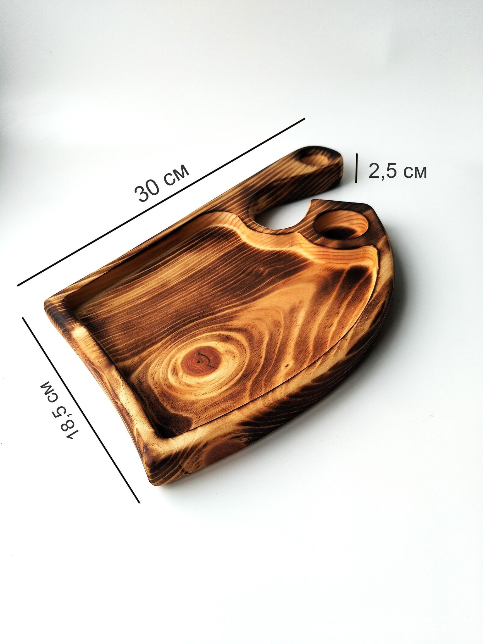 Добро пожаловать в мир изысканной сервировки стола с нашей деревянной доской для подачи от известного бренда Art of Siberia! Данную доску можно использовать с одной стороны для подачи блюд, с другой как разделочную доску. Эта тарелка из дерева сочетает в себе практичность и эстетическую привлекательность, делая процесс подачи брускетт, канапе, сыров или фруктов настоящим искусством. Эта брутальная сервировочная доска идеально подходит для подачи стейков, рыбы, шашлыка и разнообразных закусок.