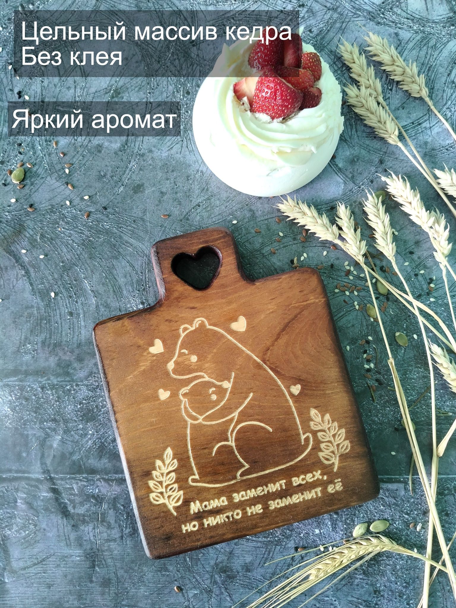 Разделочная сервировочная деревянная доска из древесины сибирского кедра. Мы предлагаем вам деревянные разделочные доски, изготовленные из цельного массива Сибирский кедр. Они обладают массой положительных качеств: ножи не тупятся, долговечные, прочные, устойчивы к повреждениям и перепадам температуры, подходят для разделывания больших кусков мяса, а самое главное, а самое главное, кедр обладает антибактериальными свойствами, и бактерии, попадая в волокна доски, не размножаются, а погибают. Ну и, конечно же, частички разделочной доски, попадая в организм человека не причинят вреда. Кроме того, сегодня большой популярностью пользуются сервировочные доски из дерева, на которых не режут, а подают блюда. Чаще всего это хлеб, пироги, пиццы, разные сыры, куски мяса с зеленью и овощами. Разделочную доску можно использовать в качестве подарка. Можно преподнести женщине, маме, любимой девушке, бабушке, жене, подруге, учителю, коллеге, врачу, начальнице, сестре на любой праздник: день рождения, юбилей, новый год, 23 февраля, 8 марта, 1 сентября, 14 февраля, на свадьбу, рождество и новоселье.