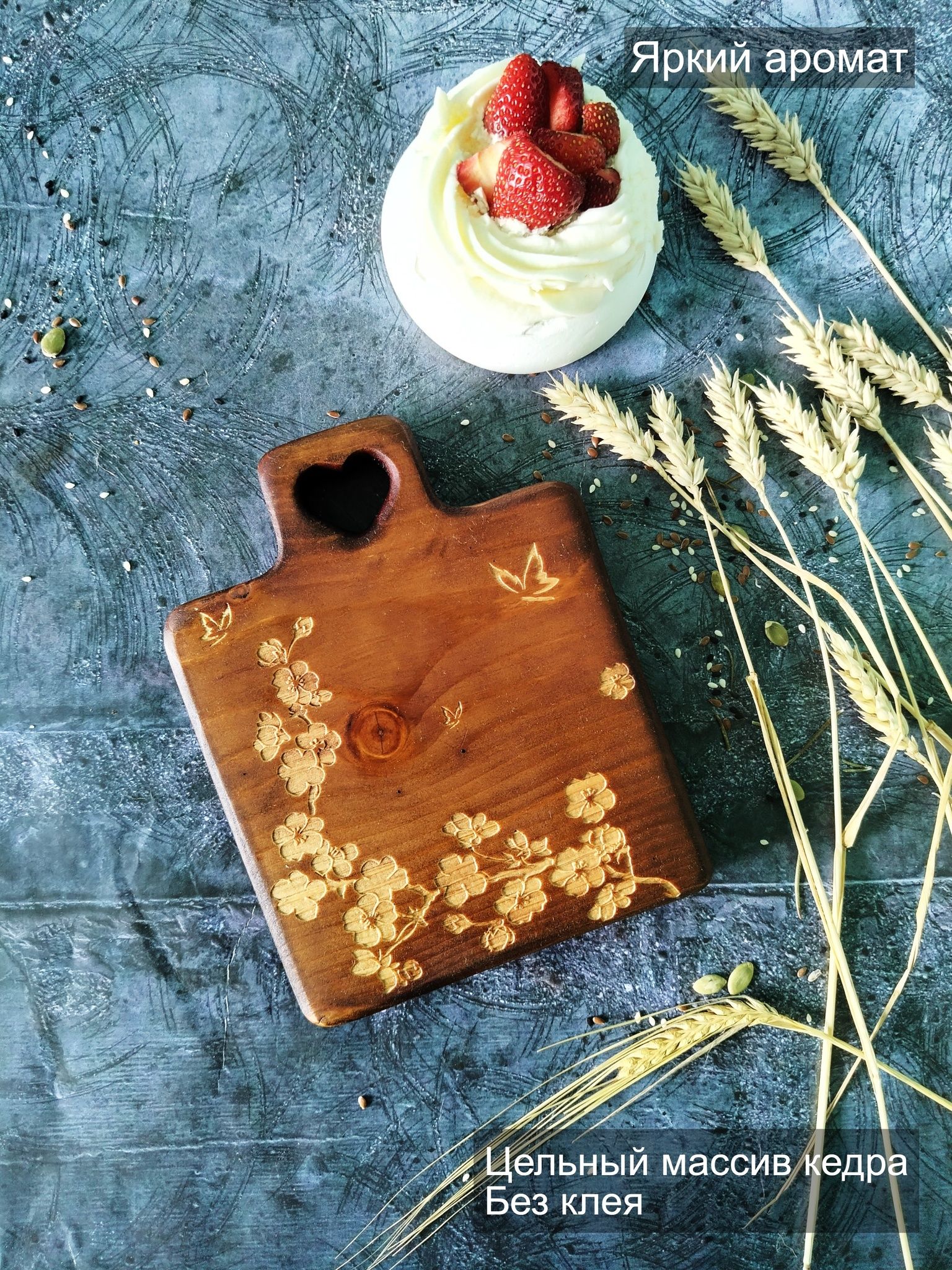 Разделочная сервировочная деревянная доска из древесины сибирского кедра. Мы предлагаем вам деревянные разделочные доски, изготовленные из цельного массива Сибирский кедр. Они обладают массой положительных качеств: ножи не тупятся, долговечные, прочные, устойчивы к повреждениям и перепадам температуры, подходят для разделывания больших кусков мяса, а самое главное, а самое главное, кедр обладает антибактериальными свойствами, и бактерии, попадая в волокна доски, не размножаются, а погибают. Ну и, конечно же, частички разделочной доски, попадая в организм человека не причинят вреда. Кроме того, сегодня большой популярностью пользуются сервировочные доски из дерева, на которых не режут, а подают блюда. Чаще всего это хлеб, пироги, пиццы, разные сыры, куски мяса с зеленью и овощами. Разделочную доску можно использовать в качестве подарка. Можно преподнести женщине, маме, любимой девушке, бабушке, жене, подруге, учителю, коллеге, врачу, начальнице, сестре на любой праздник: день рождения, юбилей, новый год, 23 февраля, 8 марта, 1 сентября, 14 февраля, на свадьбу, рождество и новоселье.