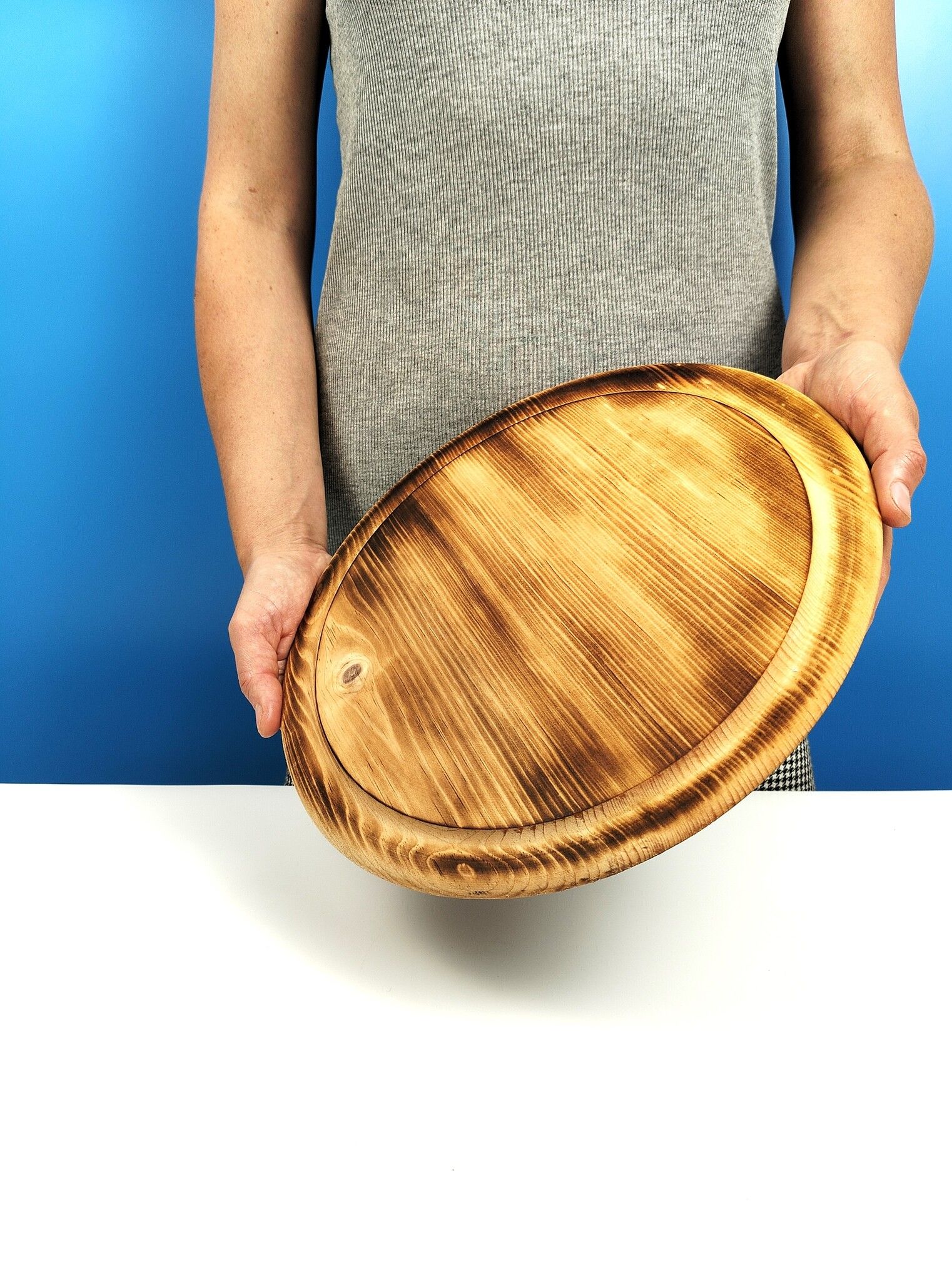 Сервировочная доска для пиццы и пирога будет стильно выглядить и в кафе, и дома. Круглый сервировочный поднос выполнен из натурального цельного кедра. Блюдо для пирогов и пиццы из натурального дерева делают его уютным и элегантным. Одна сторона может использоваться как сервировочное блюдо и прекрасно подойдет для подачи классической пиццы, домашней выпечки и осетинских пирогов, для сырных закусок, для торта как тортовница. Деревянная подставка для пиццы с разметкой из 8 сегментов позволяет нарезать кусочки идеально ровными. Вторая сторона имеет ровную, гладкую поверхность и может использоваться как доска для раскатки теста, для лепки изделий из теста. Деревянная доска или блюдо для нарезки - уникальный и практичный подарок на Новый год, новоселье, 14 февраля, День рождение, 8 марта для мамы, жены, сестры, бабушки, подруги.