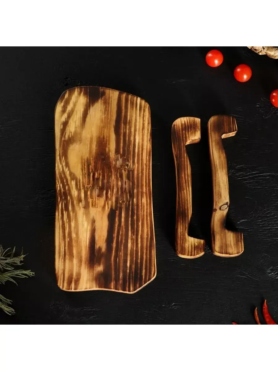 Деревянная разделочная доска из цельного спила древесины сибирского кедра на ножках. Можно использовать как разделочную доску, так и для подачи.Есть предметы, без которых не обойтись в домашнем хозяйстве. Разделочная – одна из них. Доска обработана натуральным маслом с пчелиным воском, которое защищает дерево от внешних воздействий. Экологичную разделочную доску можно использовать для: сырого мяса, рыбы, хлеба, овощей и фруктов. Доска обладает массой положительных качеств: ножи не тупятся, доски из кедра долговечные, прочные, устойчивы к повреждениям и перепадам температуры. Подходят для разделывания больших кусков мяса, а самое главное, кедр обладает антибактериальными свойствами, и бактерии, попадая в волокна доски, не размножаются, а погибают. Доска имеет специальное отверстие, которое, пригодится для того, чтобы повесить доску на стену. Доску можно использовать в роли менажницы для подачи и сервировки блюд, она отлично впишется в любой интерьер и будет дополнять его своей уникальностью и стилем. Станет отличным подарком для повара, любителя готовить, близкого человека или просто качественным универсальным подарком. Дорогие покупатели, просим Вас обратить внимание! Каждая деревянная доска из спила имеет уникальную форму и размер, которая может незначительно отличаться от фотографии. Возможно наличие сучков. Не замачивать. Не использовать в посудомоечной машине. После использования тщательно просушивать бумажными полотенцами. Цвет-"обжиг".