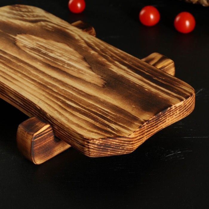Деревянная разделочная доска из цельного спила древесины сибирского кедра на ножках. Можно использовать как разделочную доску, так и для подачи.Есть предметы, без которых не обойтись в домашнем хозяйстве. Разделочная – одна из них. Доска обработана натуральным маслом с пчелиным воском, которое защищает дерево от внешних воздействий. Экологичную разделочную доску можно использовать для: сырого мяса, рыбы, хлеба, овощей и фруктов. Доска обладает массой положительных качеств: ножи не тупятся, доски из кедра долговечные, прочные, устойчивы к повреждениям и перепадам температуры. Подходят для разделывания больших кусков мяса, а самое главное, кедр обладает антибактериальными свойствами, и бактерии, попадая в волокна доски, не размножаются, а погибают. Доска имеет специальное отверстие, которое, пригодится для того, чтобы повесить доску на стену. Доску можно использовать в роли менажницы для подачи и сервировки блюд, она отлично впишется в любой интерьер и будет дополнять его своей уникальностью и стилем. Станет отличным подарком для повара, любителя готовить, близкого человека или просто качественным универсальным подарком. Дорогие покупатели, просим Вас обратить внимание! Каждая деревянная доска из спила имеет уникальную форму и размер, которая может незначительно отличаться от фотографии. Возможно наличие сучков. Не замачивать. Не использовать в посудомоечной машине. После использования тщательно просушивать бумажными полотенцами. Цвет-"обжиг".