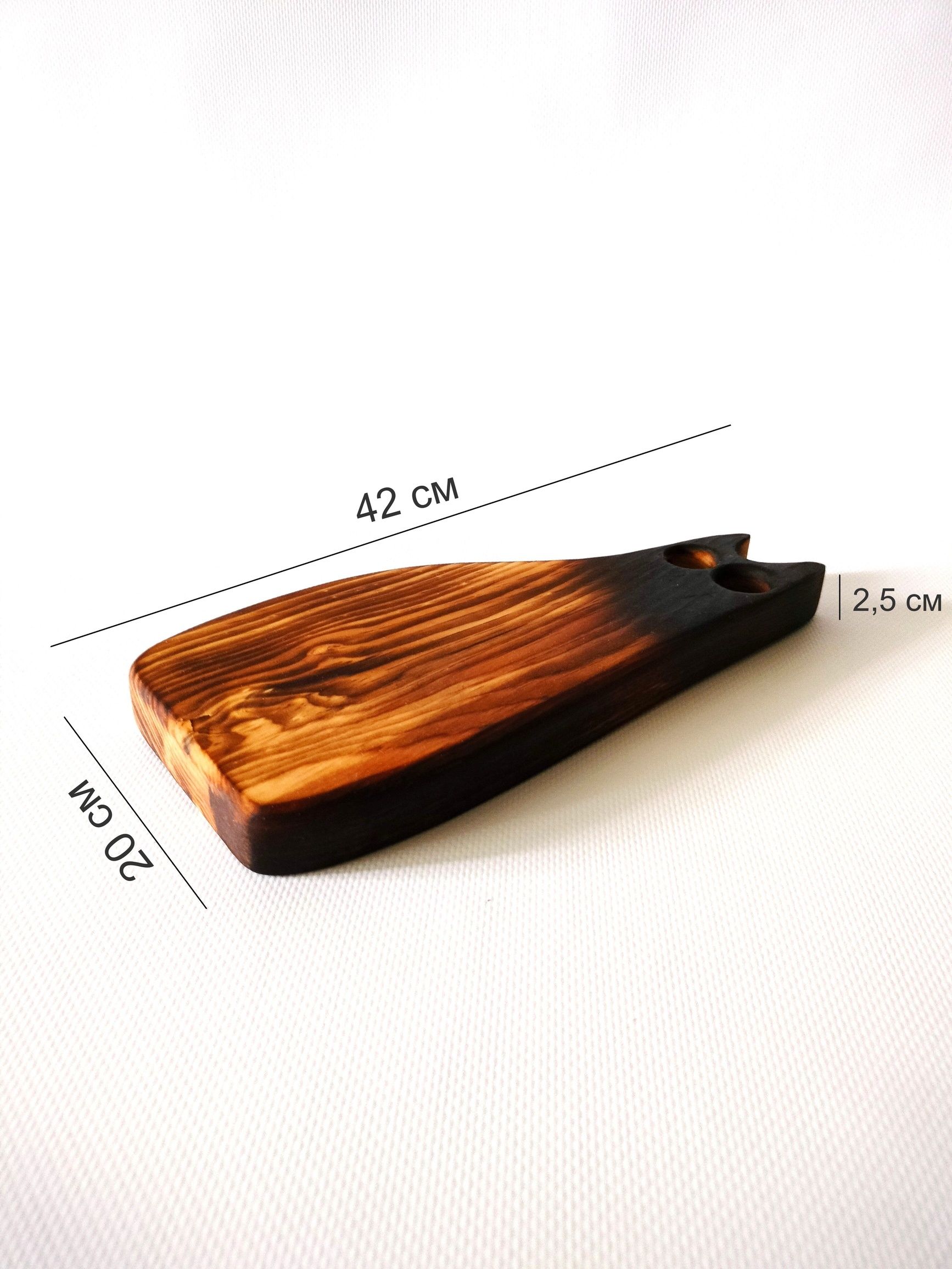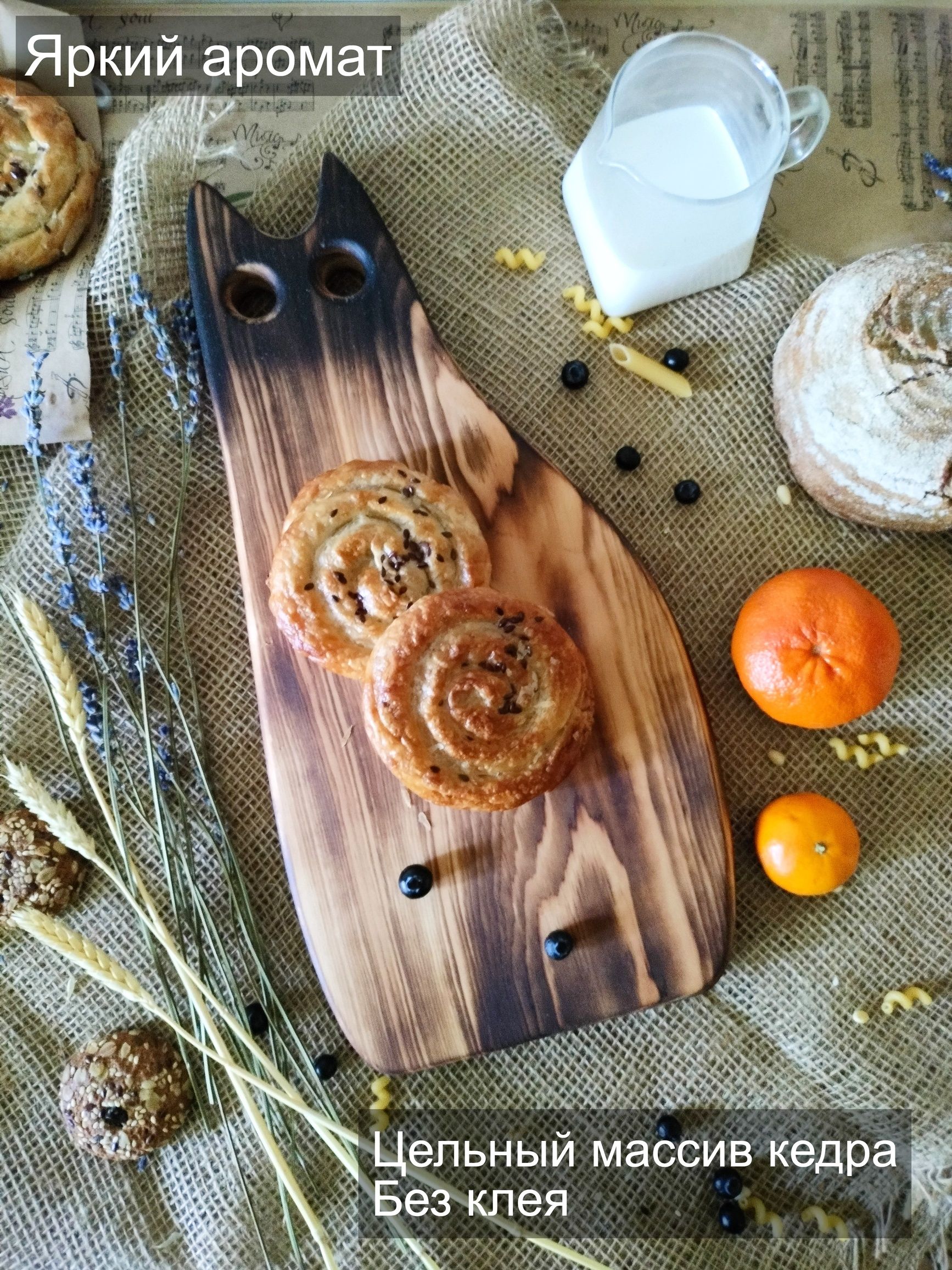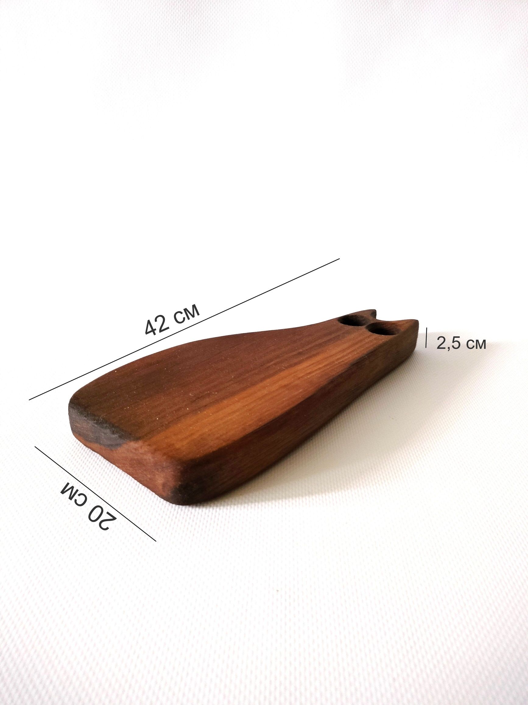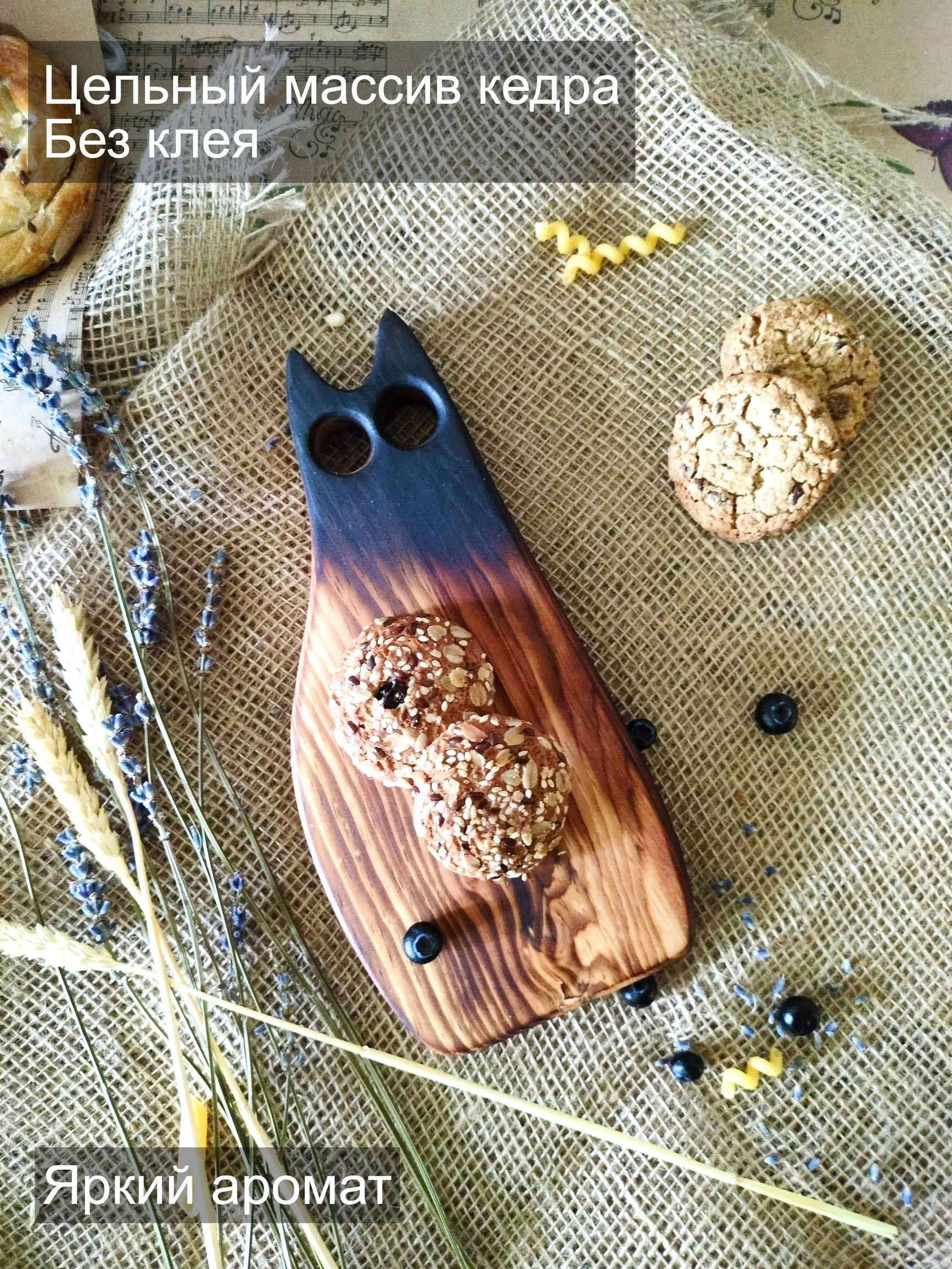 Деревянная разделочная доска из спила древесины сибирского кедра. Есть предметы, без которых не обойтись в домашнем хозяйстве. Разделочная – одна из них. Доска обработана натуральным маслом с пчелиным воском, которое защищает дерево от внешних воздействий. Экологичную разделочную доску можно использовать для: сырого мяса, рыбы, хлеба, овощей и фруктов. Доска обладает массой положительных качеств: ножи не тупятся, доски из кедра долговечные, прочные, устойчивы к повреждениям и перепадам температуры. Подходят для разделывания больших кусков мяса, а самое главное, кедр обладает антибактериальными свойствами, и бактерии, попадая в волокна доски, не размножаются, а погибают. Доска имеет специальное отверстие, которое, пригодится для того, чтобы повесить доску на стену. Доску можно использовать в роли менажницы для подачи и сервировки блюд, она отлично впишется в любой интерьер и будет дополнять его своей уникальностью и стилем. Станет отличным подарком для повара, любителя готовить, близкого человека или просто качественным универсальным подарком. Дорогие покупатели, просим Вас обратить внимание! Каждая деревянная доска из спила имеет уникальную форму, которая может незначительно отличаться от фотографии. Возможно наличие сучков. Не замачивать. Не использовать в посудомоечной машине. После использования тщательно просушивать бумажными полотенцами.