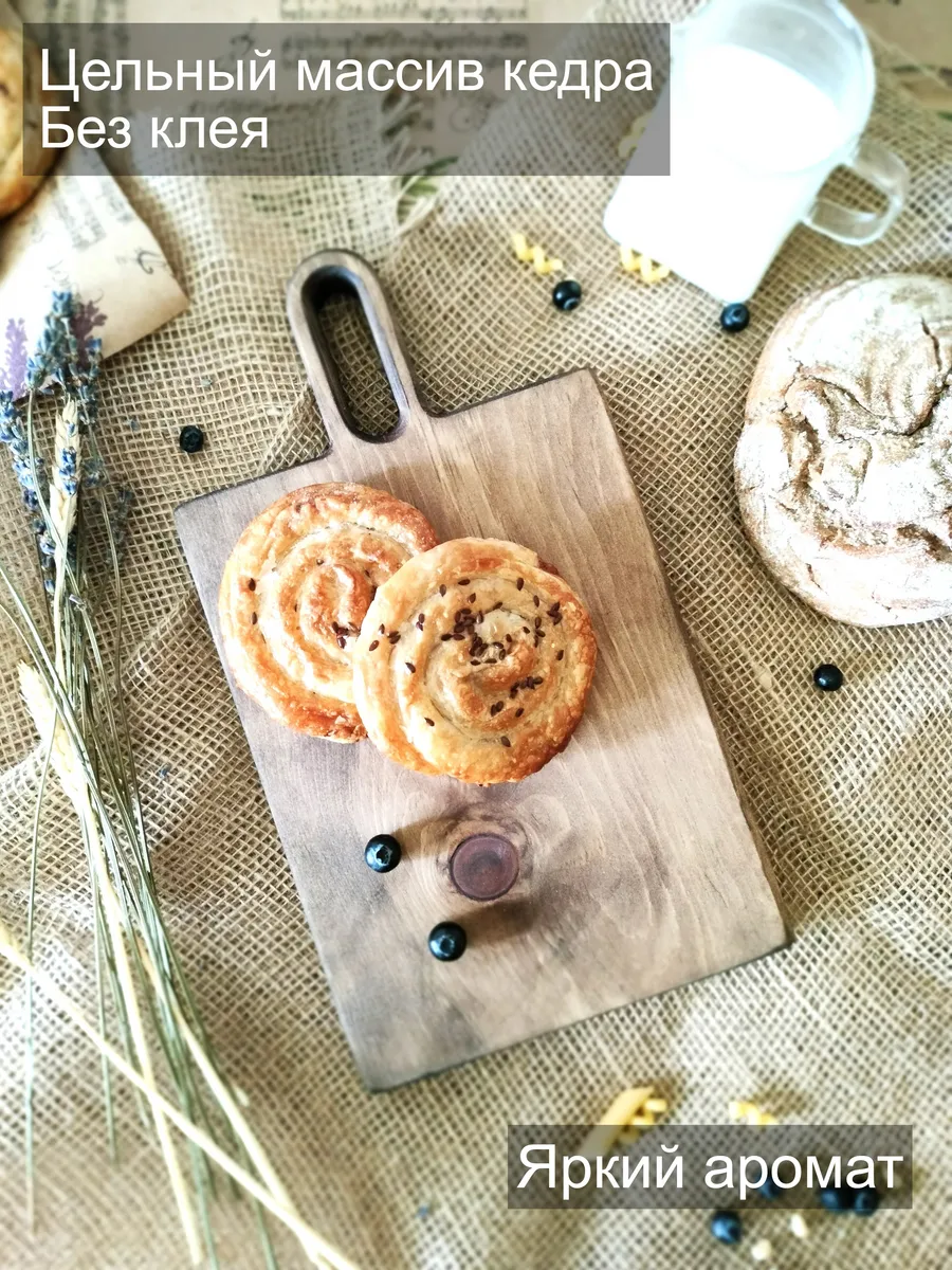 Деревянная разделочная доска из спила древесины сибирского кедра. Есть предметы, без которых не обойтись в домашнем хозяйстве. Разделочная одна из них. Доска обработана натуральным маслом с пчелиным воском, которое защищает дерево от внешних воздействий. Экологичную разделочную доску можно использовать для: сырого мяса, рыбы, хлеба, овощей и фруктов. Доска обладает массой положительных качеств: ножи не тупятся, доски из кедра долговечные, прочные, устойчивы к повреждениям и перепадам температуры. Подходят для разделывания больших кусков мяса, а самое главное, кедр обладает антибактериальными свойствами, и бактерии, попадая в волокна доски, не размножаются, а погибают. Доска имеет специальное отверстие, которое, пригодится для того, чтобы повесить доску на стену. Доску можно использовать в роли менажницы для подачи и сервировки блюд, она отлично впишется в любой интерьер и будет дополнять его своей уникальностью и стилем. Станет отличным подарком для повара, любителя готовить, близкого человека или просто качественным универсальным подарком. Дорогие покупатели, просим Вас обратить внимание! Каждая деревянная доска из спила имеет уникальную форму, которая может незначительно отличаться от фотографии. Возможно наличие сучков. Не замачивать. Не использовать в посудомоечной машине. После использования тщательно просушивать бумажными полотенцами.