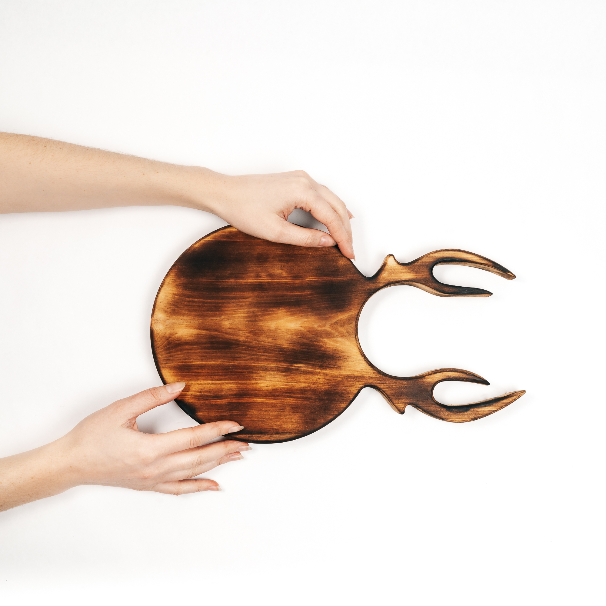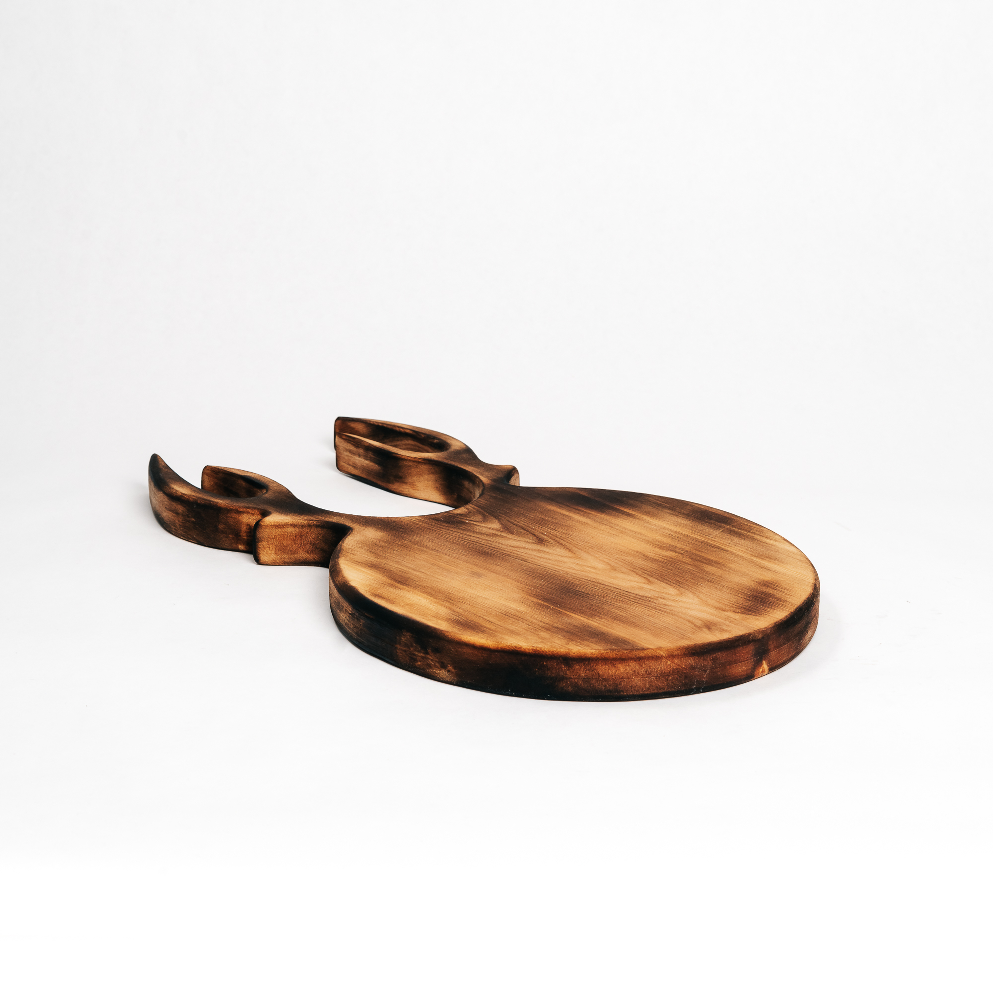 Деревянные доски имеют различную форму со специальным отверстием для крепления на стену. На фото доска разделочная из сибирского кедра.