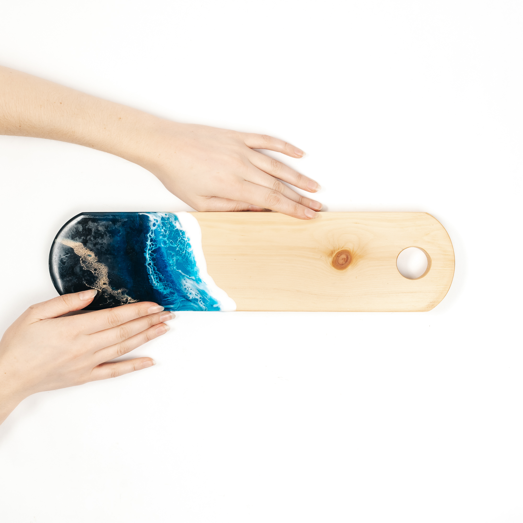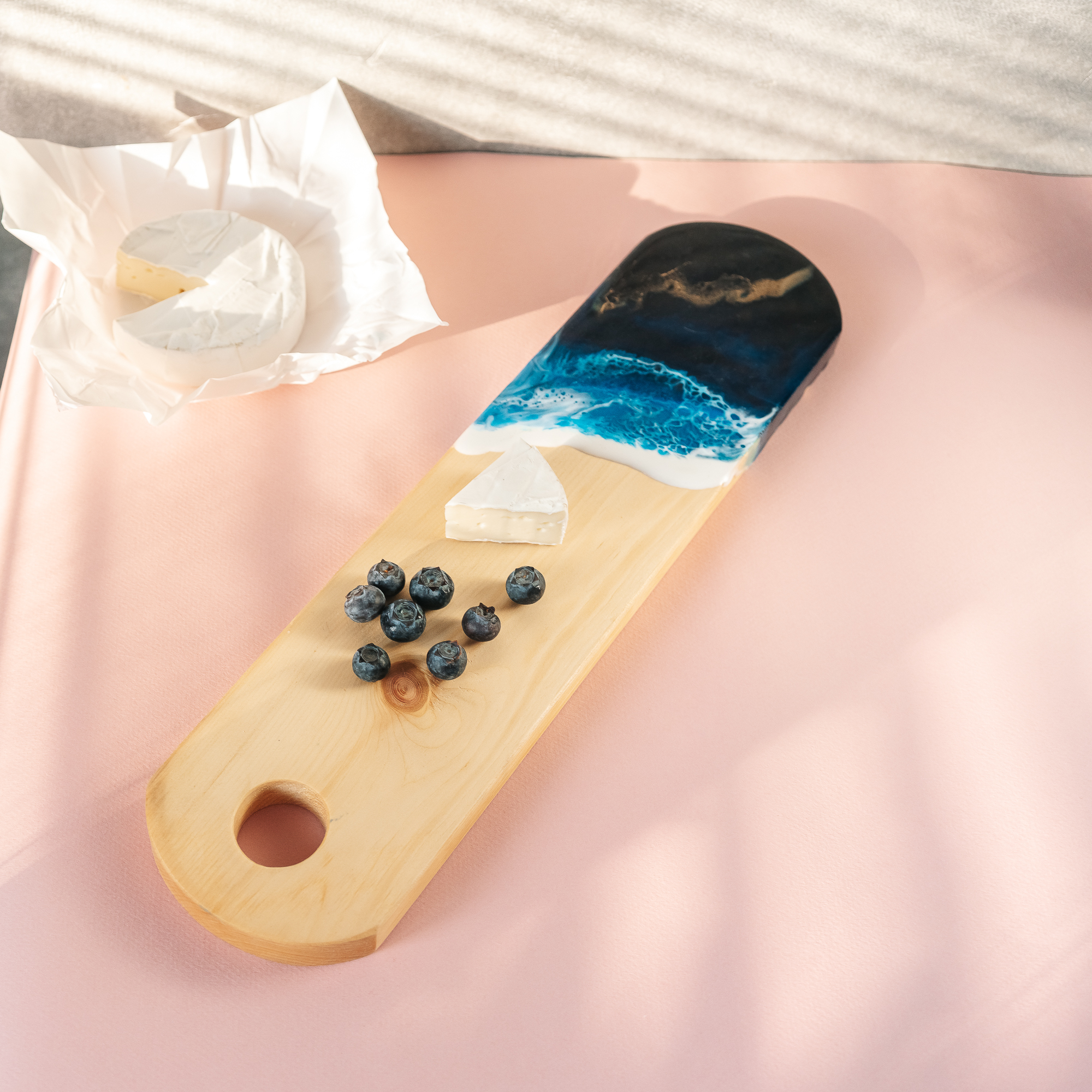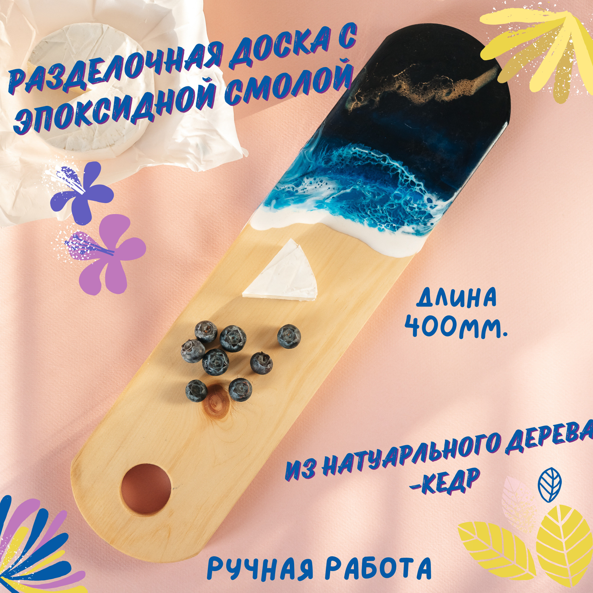 Деревянная разделочная доска из цельного куска древесины кедра с эпоксидной смолой.