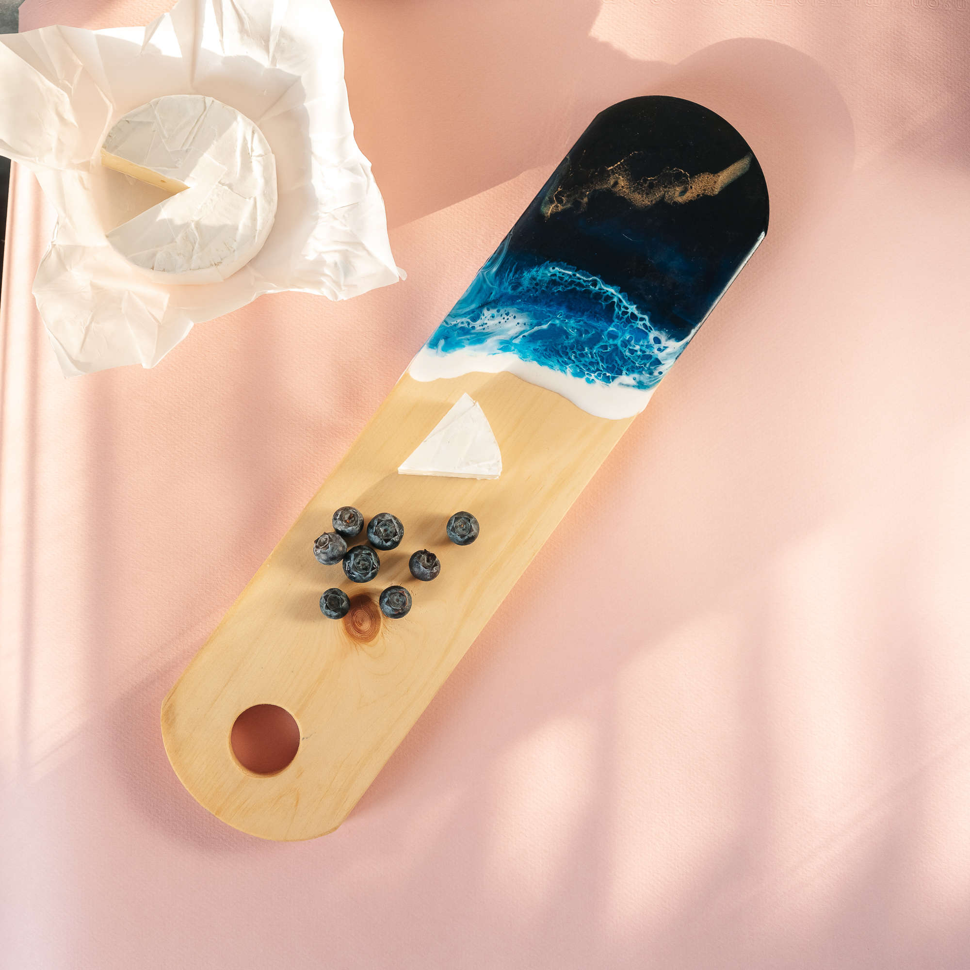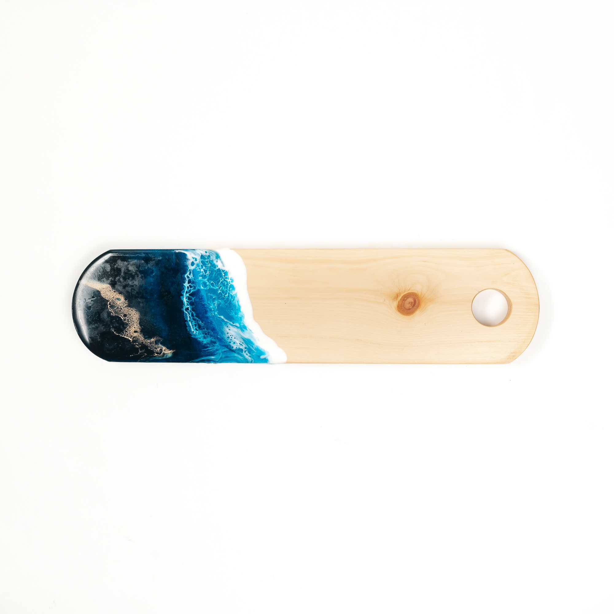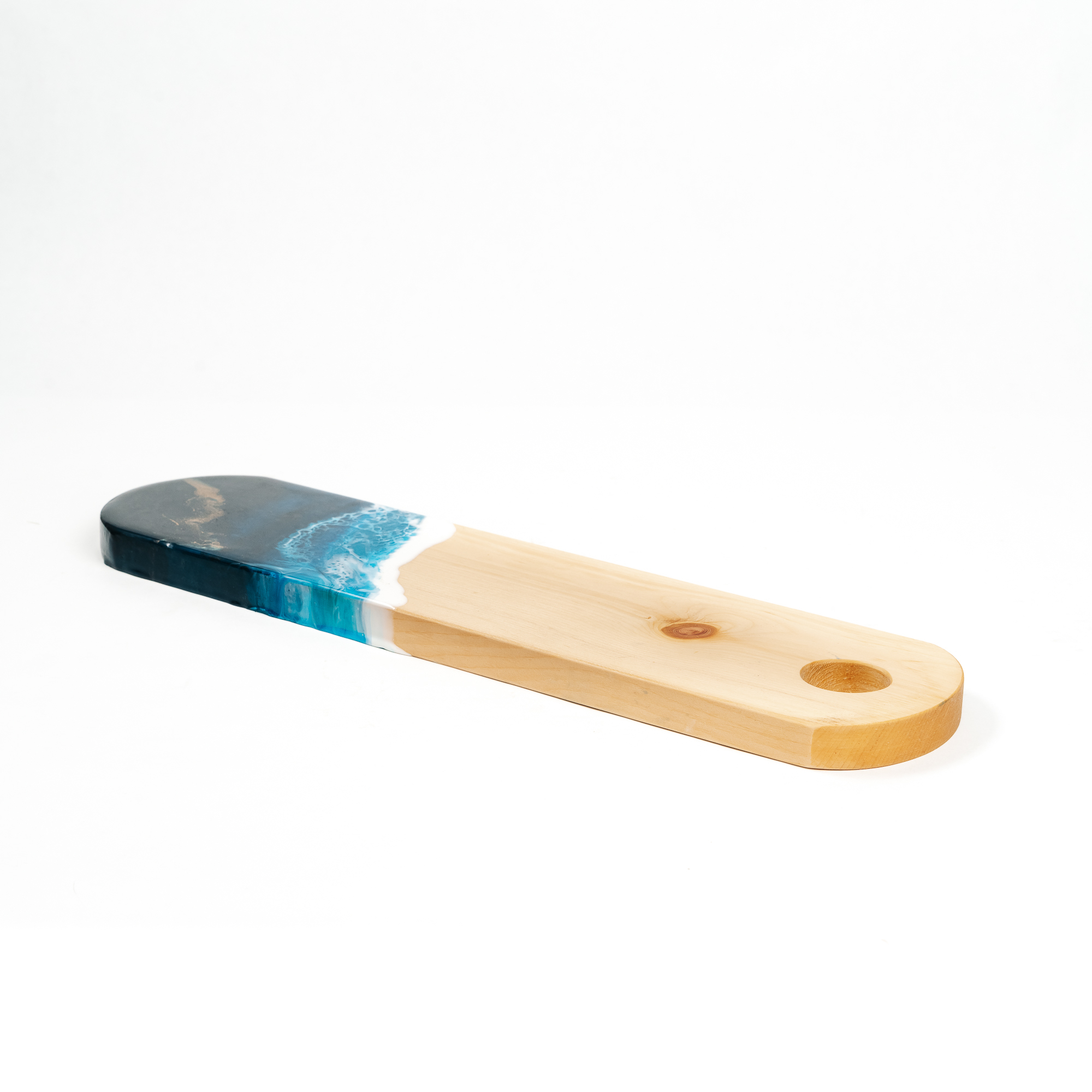 Деревянная разделочная доска из цельного куска древесины кедра с эпоксидной смолой.