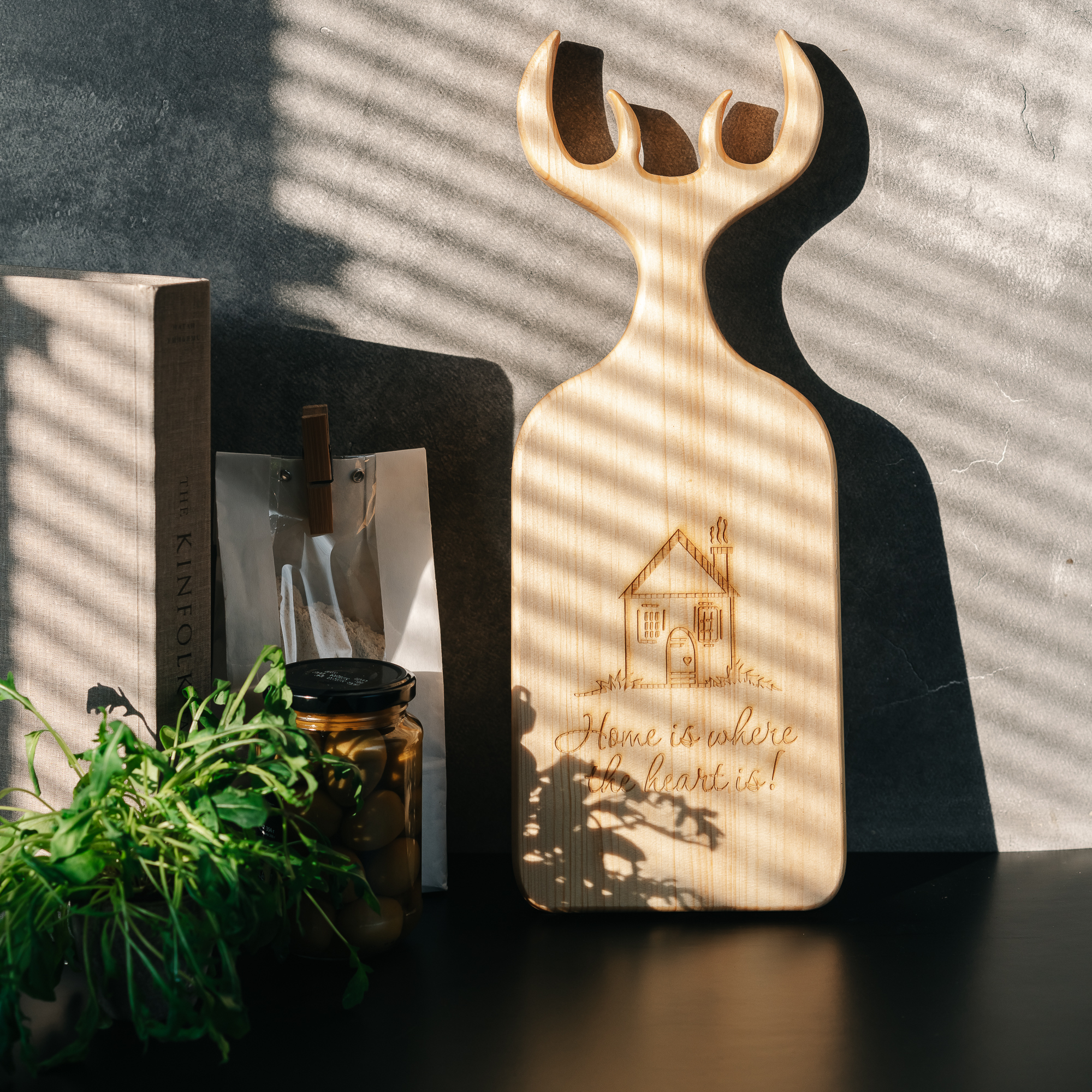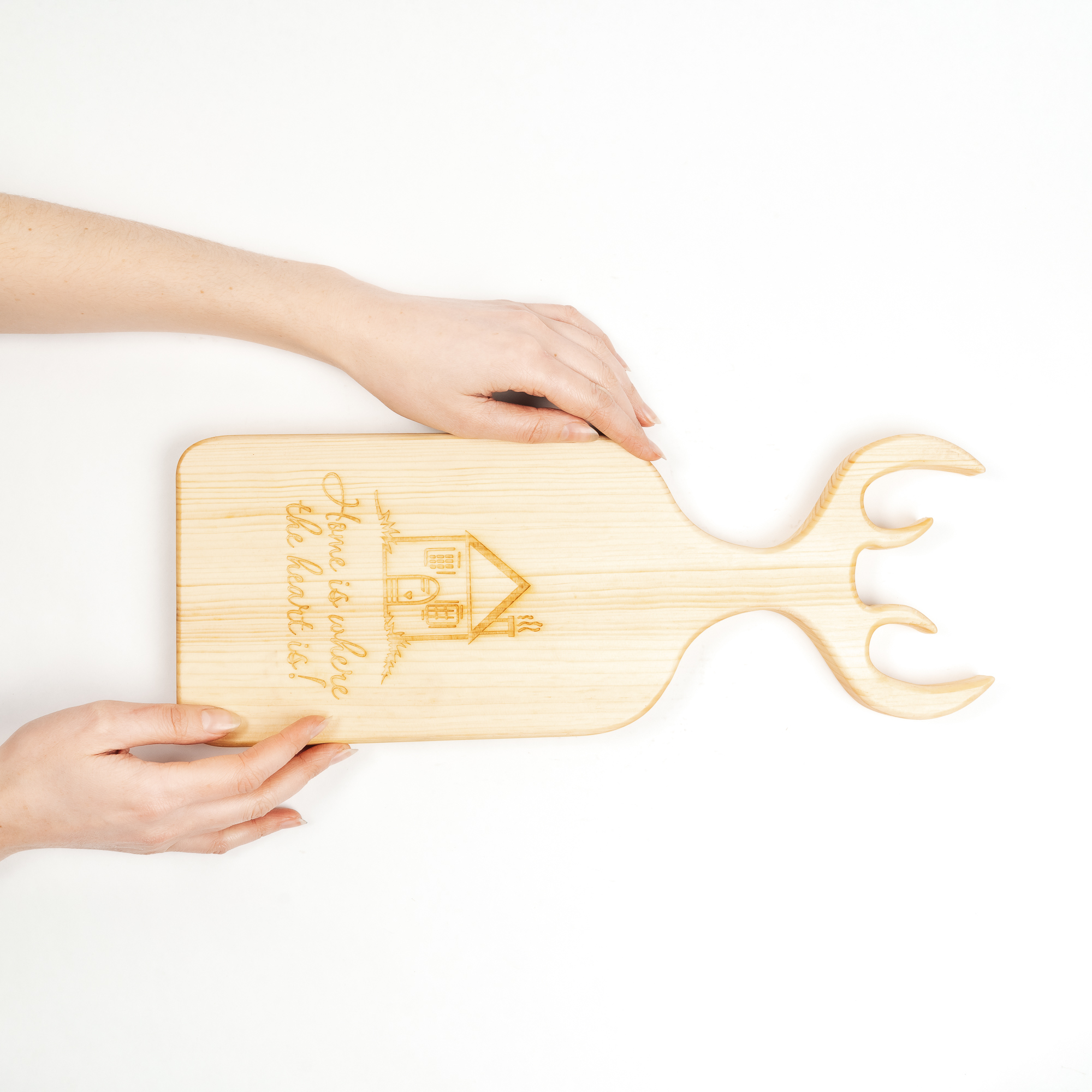 Доска разделочная из древесины сибирского кедра с гравировкой "Home is where the heart is".