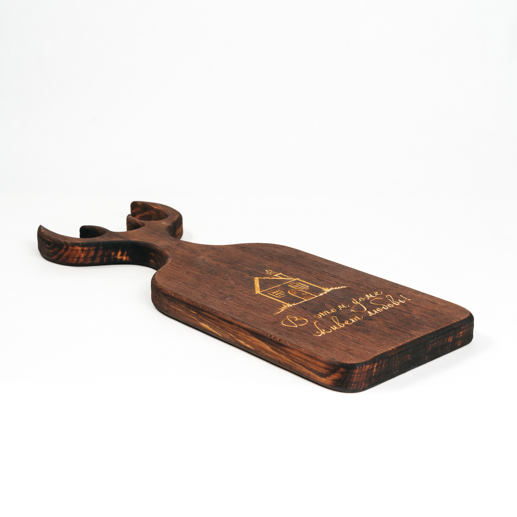 Доска разделочная из древесины сибирского кедра с гравировкой "В этом доме живет любовь". RD84