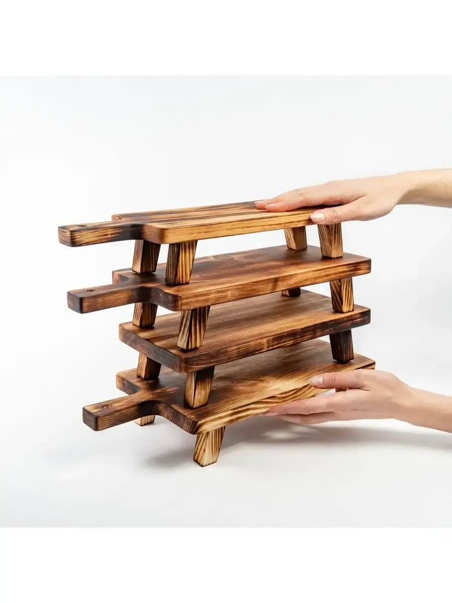 Набор сервировочных досок для подачи блюд и закусок из древесины кедра. у сервировочных досок много преимуществ. Подача блюд выглядит стильно и лаконична. Древесина является хорошим изолятором, поэтому она помогает сохранять пищу теплой. Они совершенно гигиеничны. Древесина является биоразлагаемым и возобновляемым материалом. Древесина кедра обладает антисептическими свойствами. Наша модель универсальна! Обработана специальным составом на основе растительного масла, кедровой смолы и пчелиного воска, благодаря чему дольше сохраняет свой первоначальный вид, не утратит гигиеничность и прослужит длительное время. Можно использовать для подачи стейка, шашлыка, сыра, суши, роллов или бургеров. А также подобные сервировочные доски можно использовать для десертов. Размер: 1. 380х105х65 мм. 2. 380х140х65 мм. 3. без ручки 300х140х65 мм. 4. 380х170х65 мм.