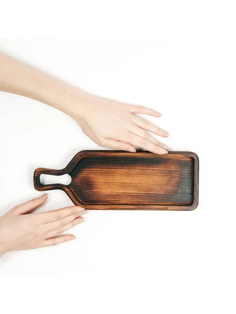 Доска для подачи блюд и закусок из древесины сибирского кедра "бутылка". Представляем Вам нашу новинку - сервировочная доска для подачи блюд и закусок! Доски можно использовать чтобы накрыть праздничный стол или оформить романтический ужин, да и в повседневной жизни они могут стать незаменимыми. Любая нарезка, будет выигрышно выглядеть, на деревянной доске! Обработана специальным составом на основе растительного масла, кедровой смолы и пчелиного воска, благодаря чему дольше сохраняет свой первоначальный вид, не утратит гигиеничность и прослужит длительное время. Можно использовать для подачи стейка, шашлыка, сыра, суши, роллов или бургеров. А также подобные сервировочные доски можно использовать для десертов. Побалуйте себя новинкой, оцените удобство и получите эстетическое наслаждение.