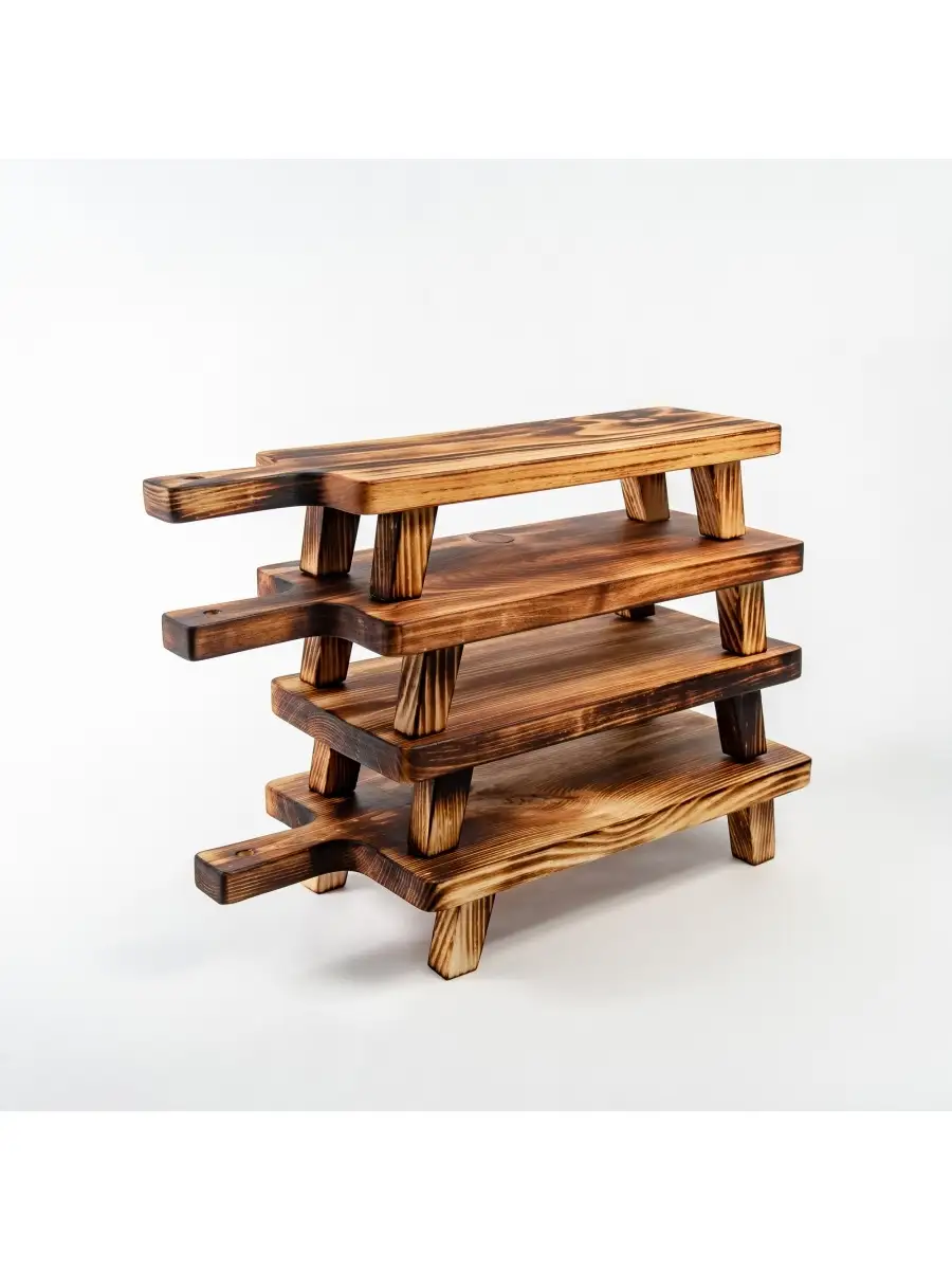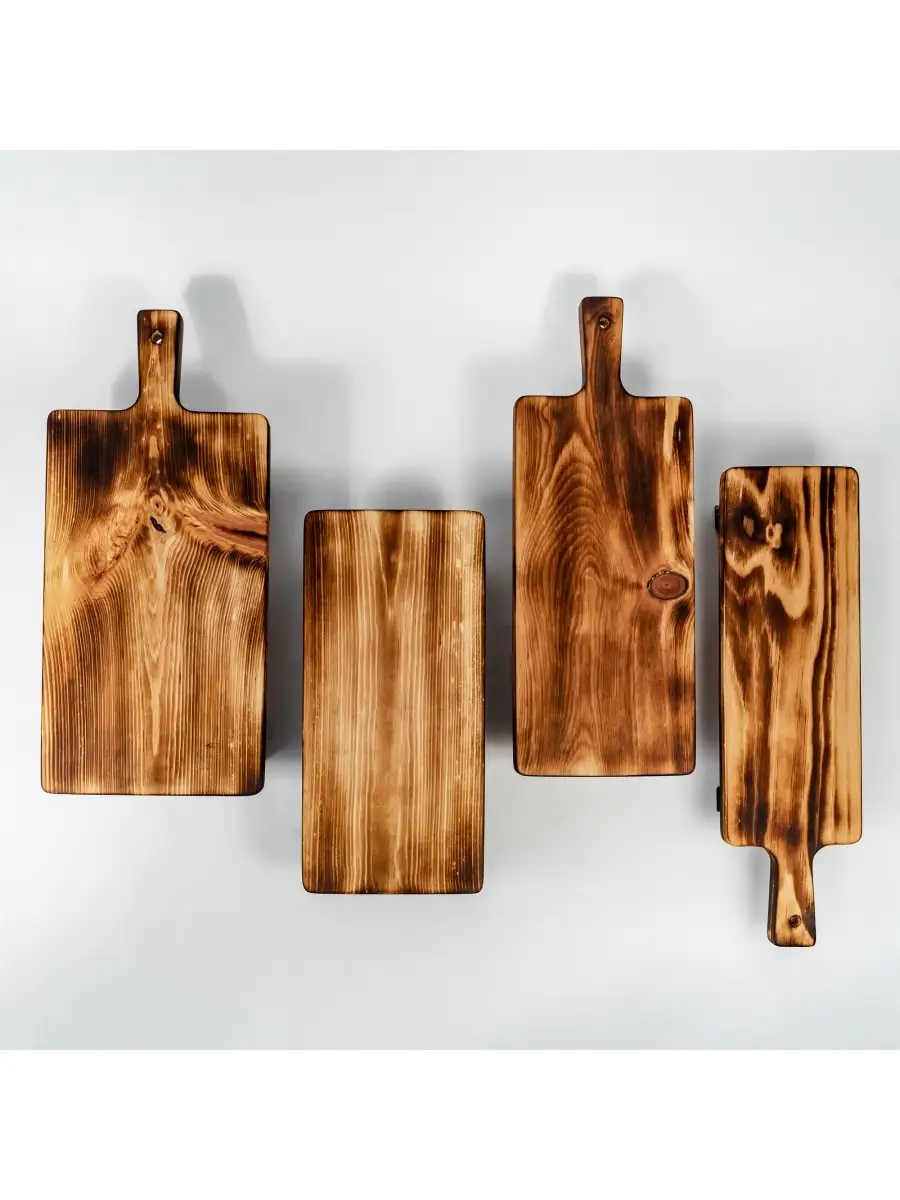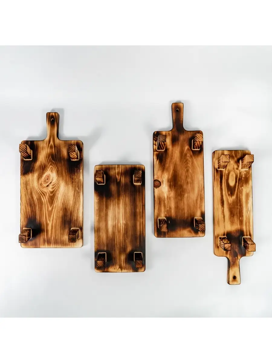 Набор сервировочных досок для подачи блюд и закусок из древесины кедра. у сервировочных досок много преимуществ. Подача блюд выглядит стильно и лаконична. Древесина является хорошим изолятором, поэтому она помогает сохранять пищу теплой. Они совершенно гигиеничны. Древесина является биоразлагаемым и возобновляемым материалом. Древесина кедра обладает антисептическими свойствами. Наша модель универсальна! Обработана специальным составом на основе растительного масла, кедровой смолы и пчелиного воска, благодаря чему дольше сохраняет свой первоначальный вид, не утратит гигиеничность и прослужит длительное время. Можно использовать для подачи стейка, шашлыка, сыра, суши, роллов или бургеров. А также подобные сервировочные доски можно использовать для десертов. Размер: 1. 380х105х65 мм. 2. 380х140х65 мм. 3. без ручки 300х140х65 мм. 4. 380х170х65 мм.