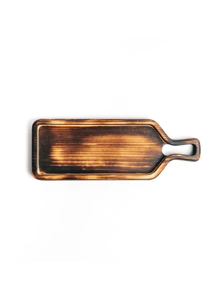 Доска для подачи блюд и закусок из древесины сибирского кедра "бутылка". Представляем Вам нашу новинку - сервировочная доска для подачи блюд и закусок! Доски можно использовать чтобы накрыть праздничный стол или оформить романтический ужин, да и в повседневной жизни они могут стать незаменимыми. Любая нарезка, будет выигрышно выглядеть, на деревянной доске! Обработана специальным составом на основе растительного масла, кедровой смолы и пчелиного воска, благодаря чему дольше сохраняет свой первоначальный вид, не утратит гигиеничность и прослужит длительное время. Можно использовать для подачи стейка, шашлыка, сыра, суши, роллов или бургеров. А также подобные сервировочные доски можно использовать для десертов. Побалуйте себя новинкой, оцените удобство и получите эстетическое наслаждение.