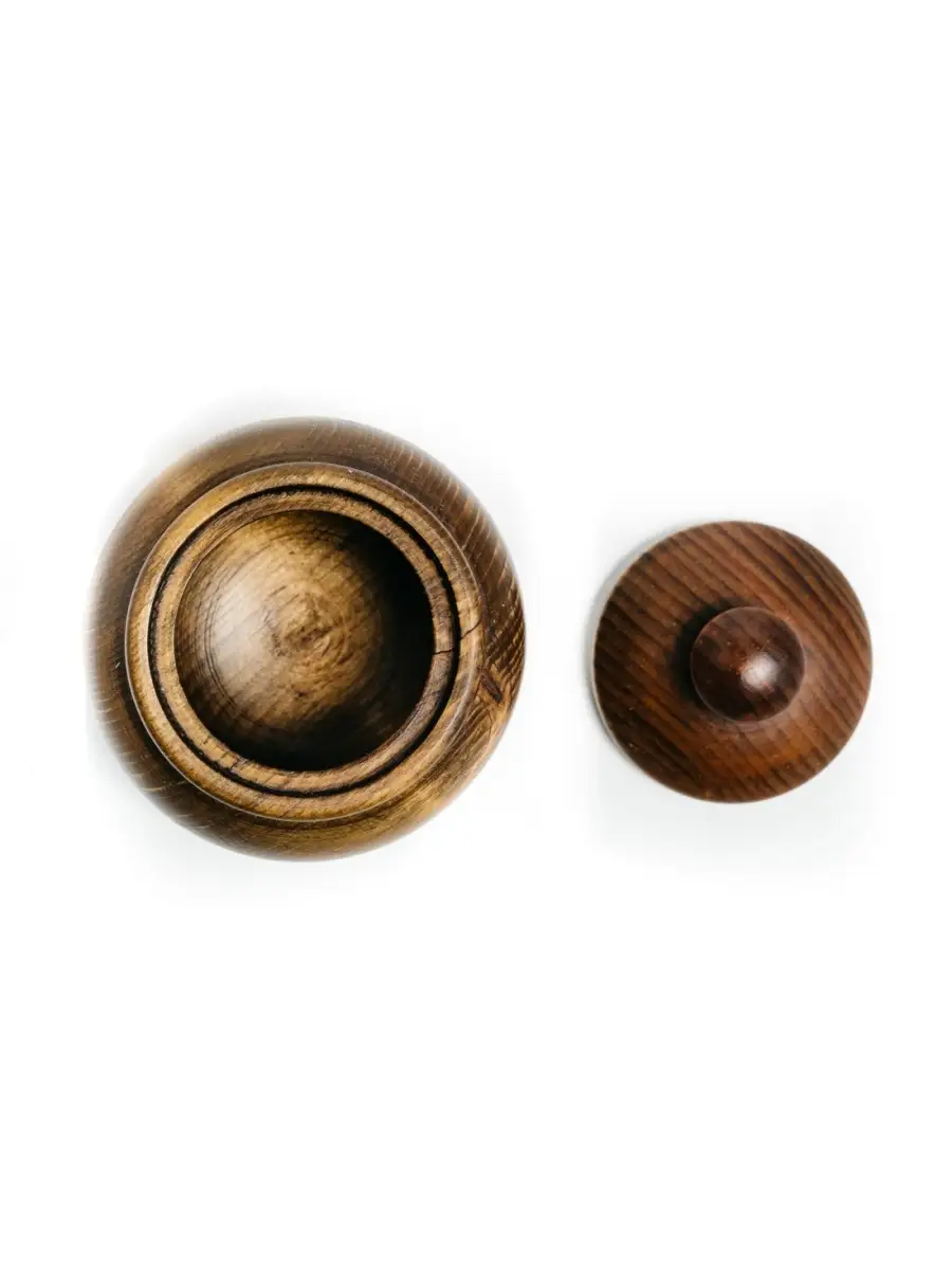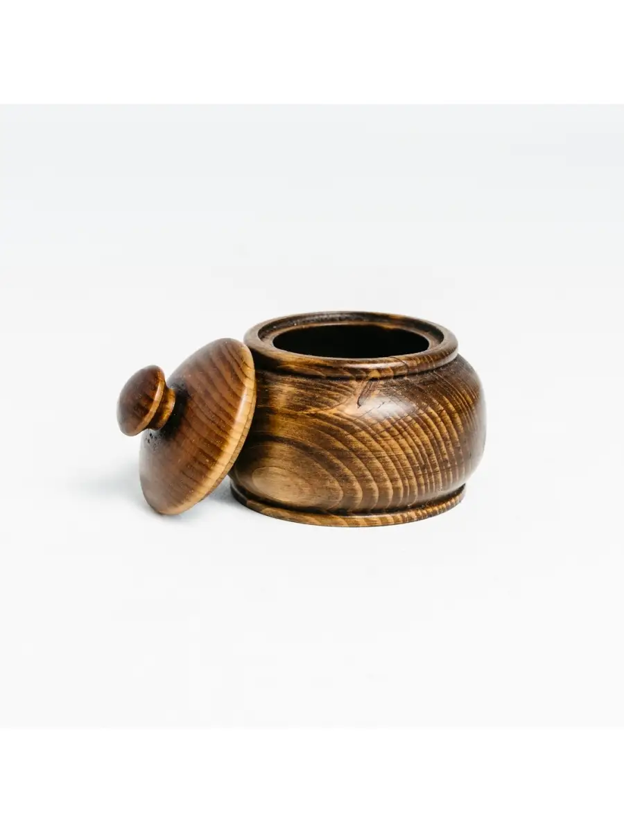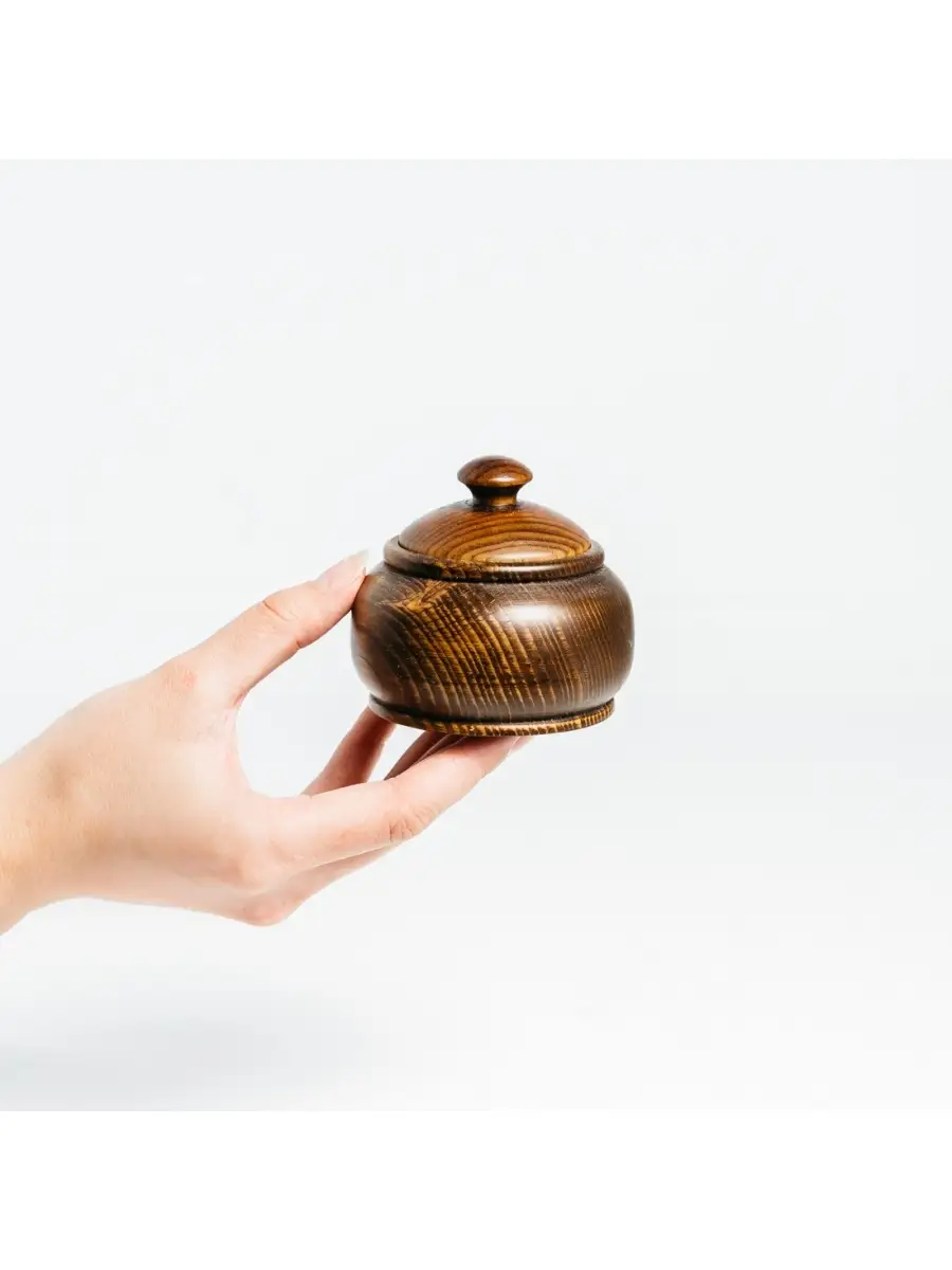 Кубышка (бочонок) для меда, соли, специй, пряностей из дерева сибирский кедр. Кубышка подходит как для пищевых продуктов, так и для украшений или хозяйственных нужд. Идеально подходит для меда, варенья, конфет, орехов. Хороша для хранения трав. Изготовлена из экологически чистого дерева - Сибирский Кедр. Безопасна для детей. Внутренняя часть покрыта натуральным маслом. **Размер:** Высота 7 см, диаметр 7,7 см, диаметр крышки 5,5 см.