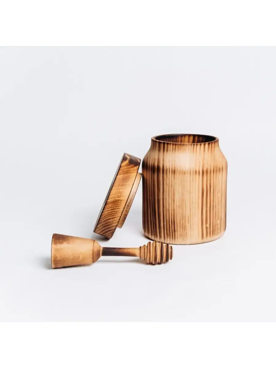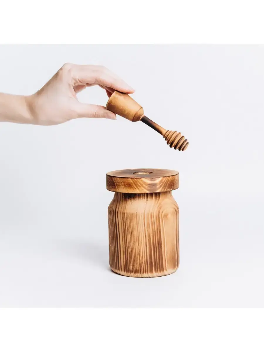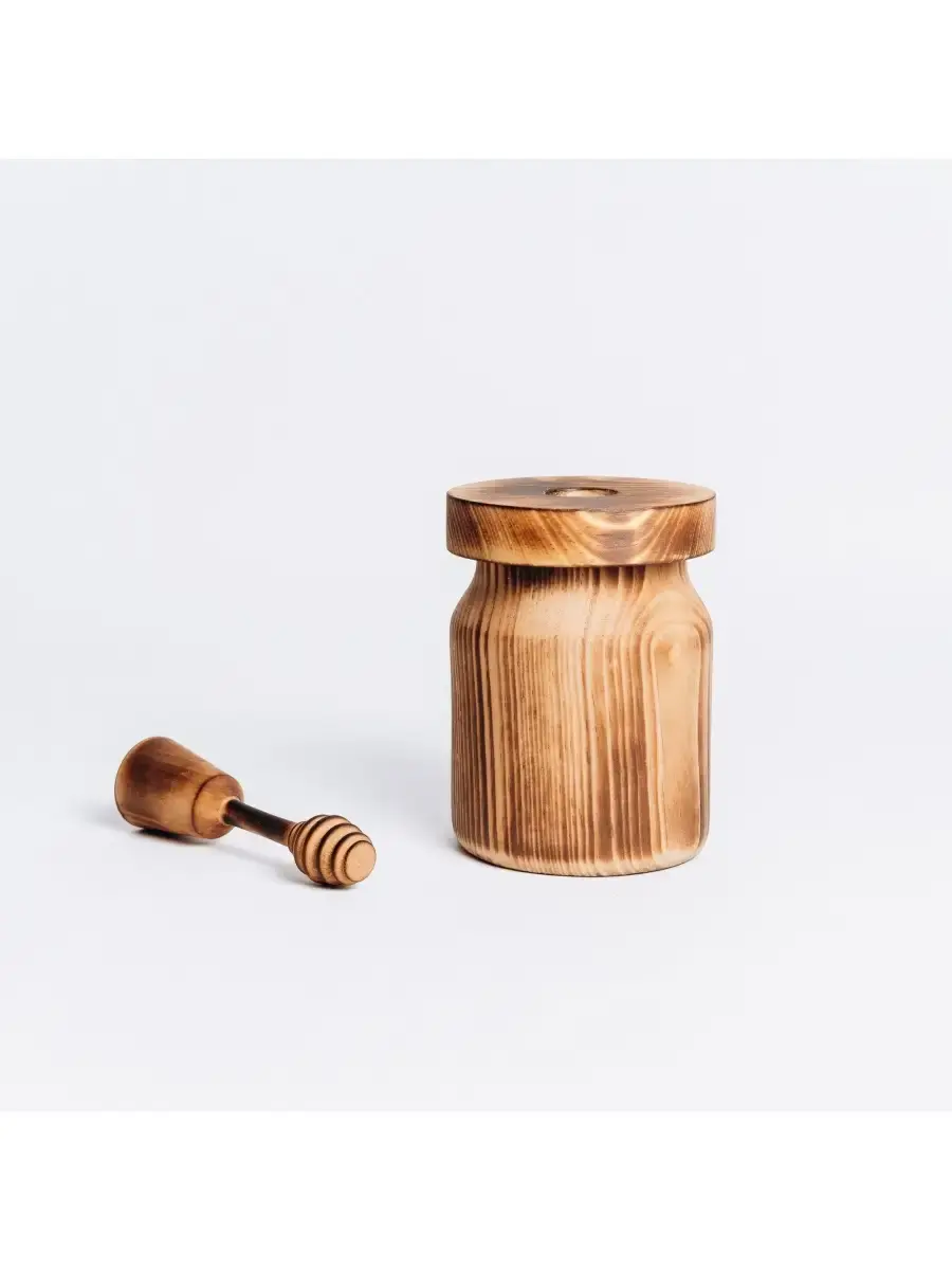 Деревянная чашка (бочонок) для мёда с крышкой и ложечкой для меда из древесины кедра. Маленькая кубышка в виде бочонка из массива натурального сибирского Кедра. Для соли, специй, меда или других пищевых продуктов. Снаружи и внутри пропитана горячим растительным маслом с пчелиным воском. Лучше всего для хранения меда подходит посуда, изготовленная из древесины. Дерево придает меду ненавязчивые, очень приятные вкусовые оттенки, гармонично сочетающиеся с его в ароматом. Высокая плотность древесины, хорошо защищает мед от внешних воздействий. Также идеально подходит для варенья, конфет, орехов, сахара. Хороша для хранения трав.