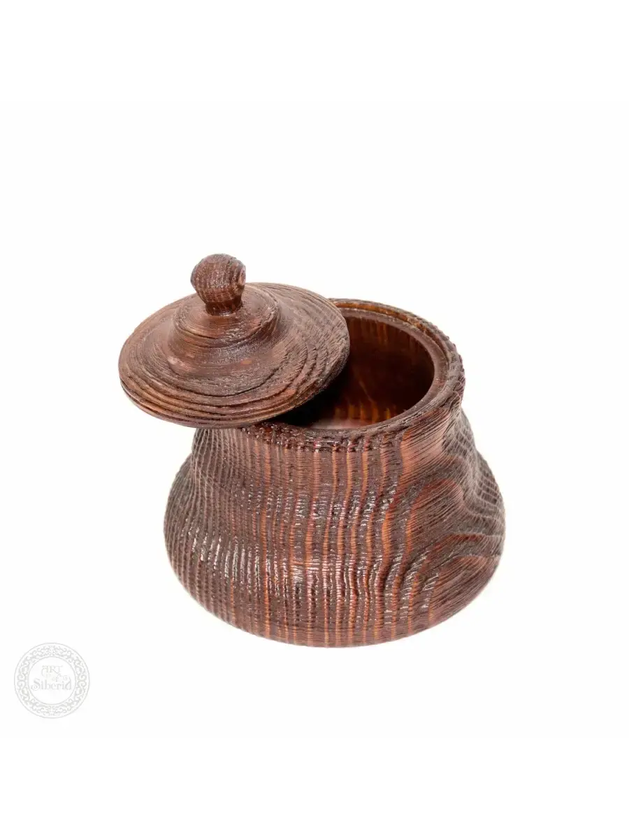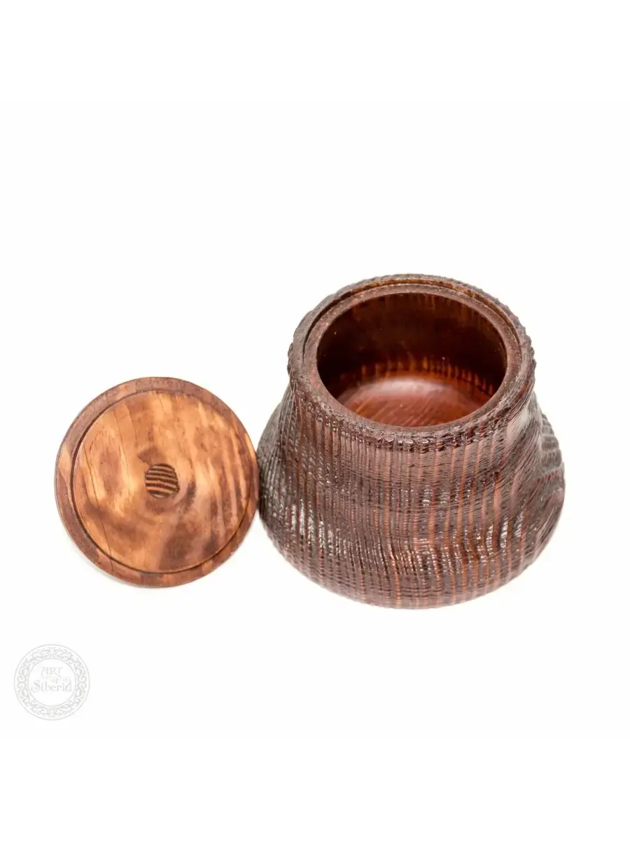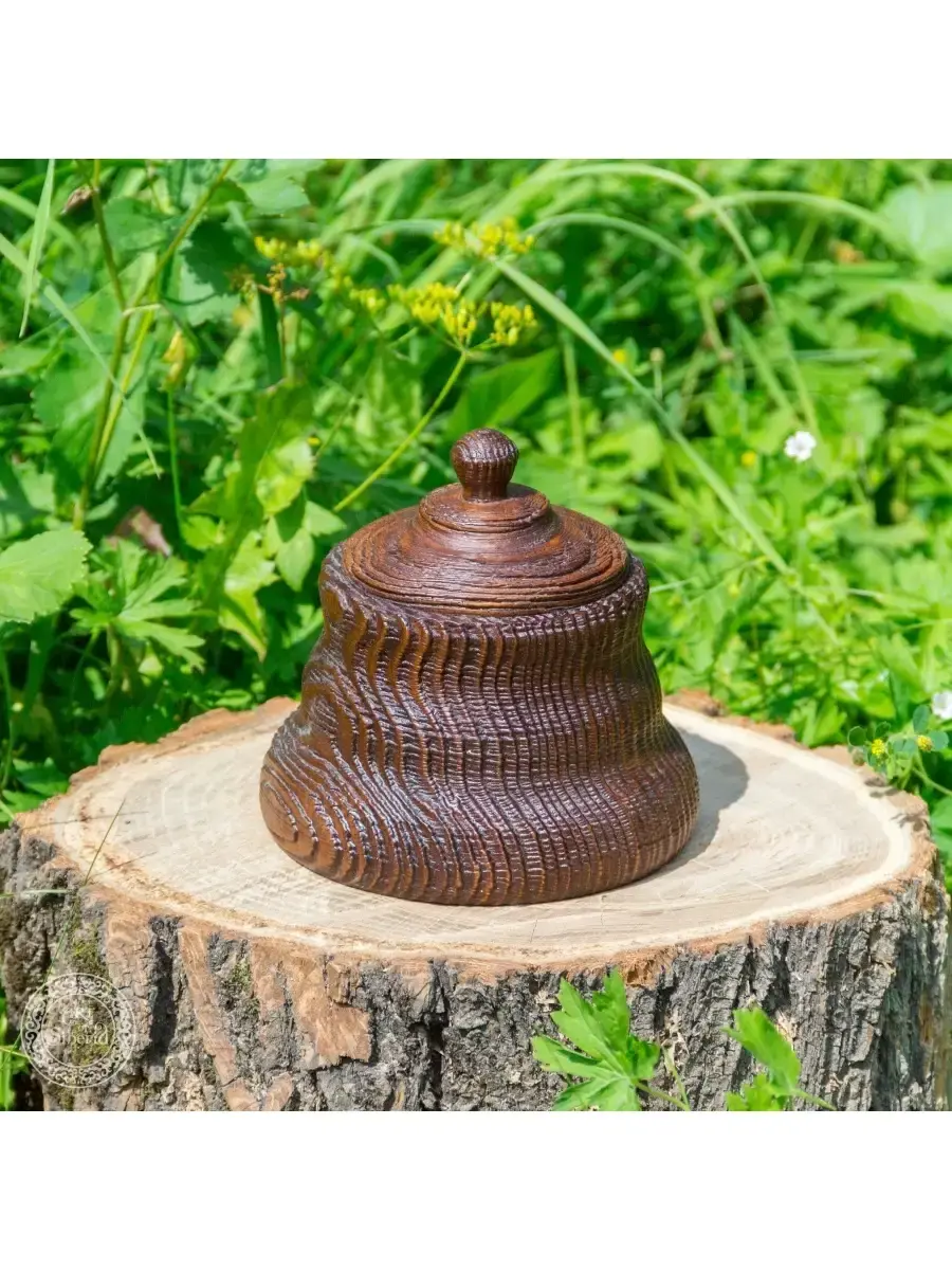 Кубышка подходит как для пищевых продуктов, так и для украшений или хозяйственных нужд. Обработана специальным способом для проявления текстуры. Идеально подходит для меда, варенья, конфет, орехов. Хороша для хранения трав. Изготовлена из экологически чистого дерева - Сибирская Сосна. Безопасна для детей. Внутренняя часть покрыта натуральным маслом. Сохранен запах дерева его целебные свойства и качества.